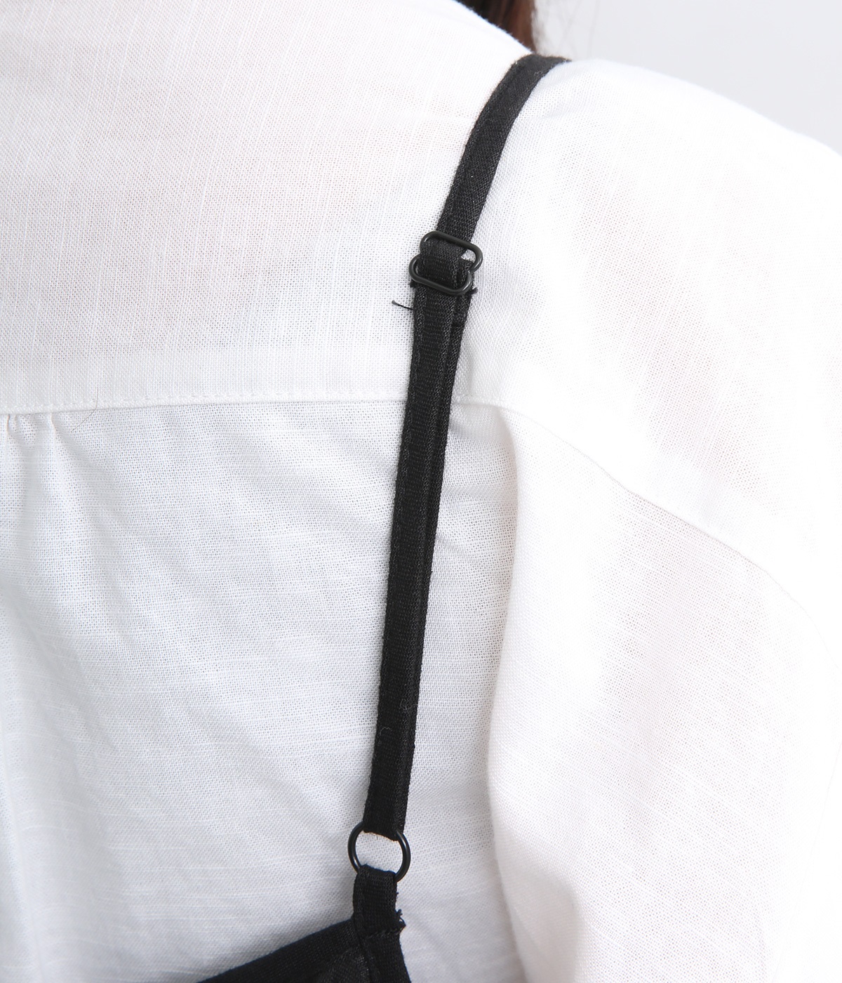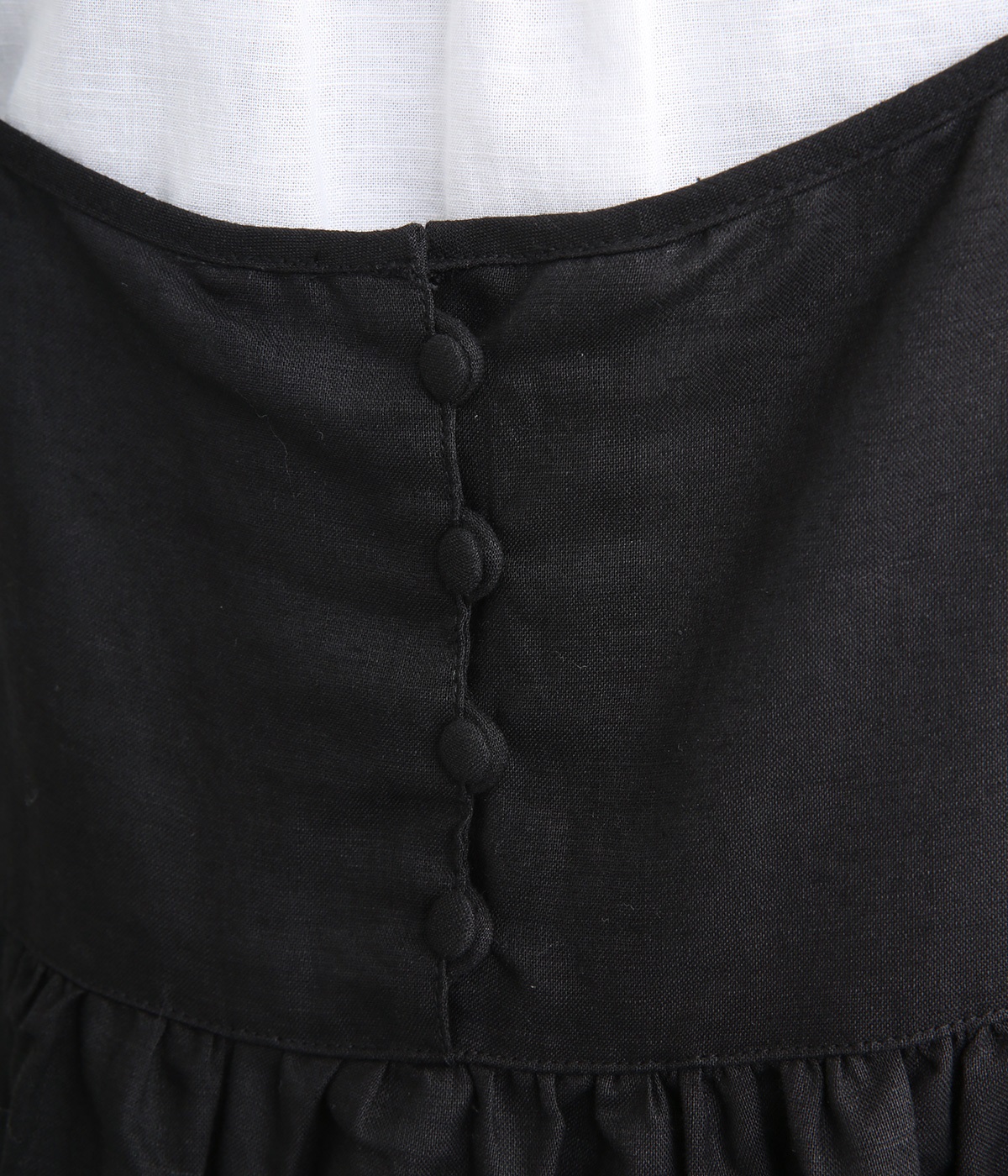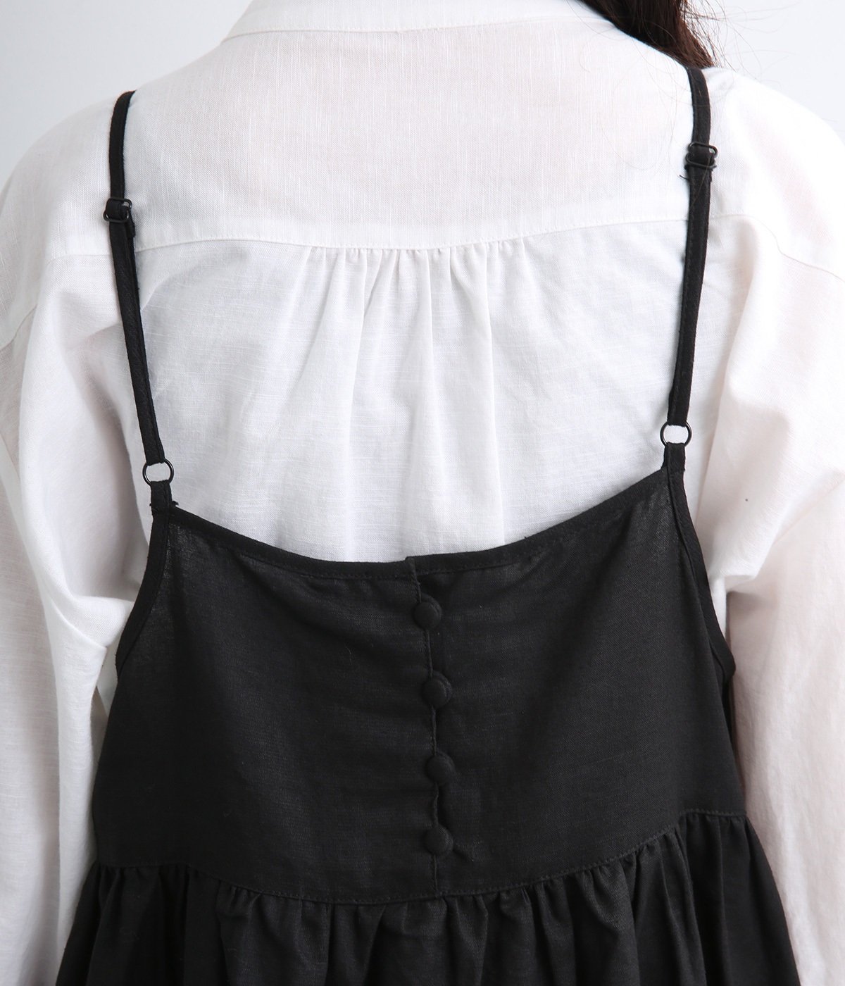 リネン裾ボーダーピンタック&胸・裾レースフリルギャザー2wayキャミワンピース(ブラック-ONESIZE)