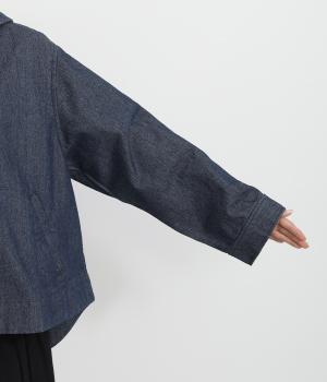 ほどよい厚みの8オンスデニム生地を使用しました。表情豊かな風合いが魅力です。軽やかさと丈夫さを両立し、季節を問わず快適に着られる生地感です。