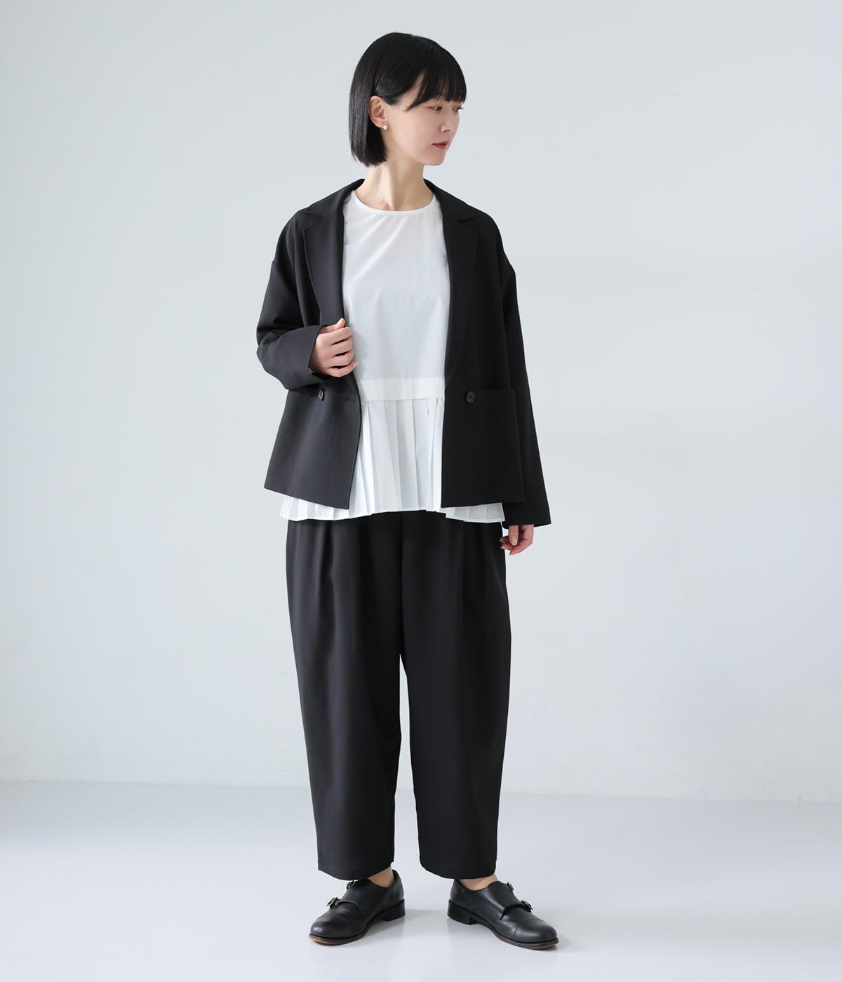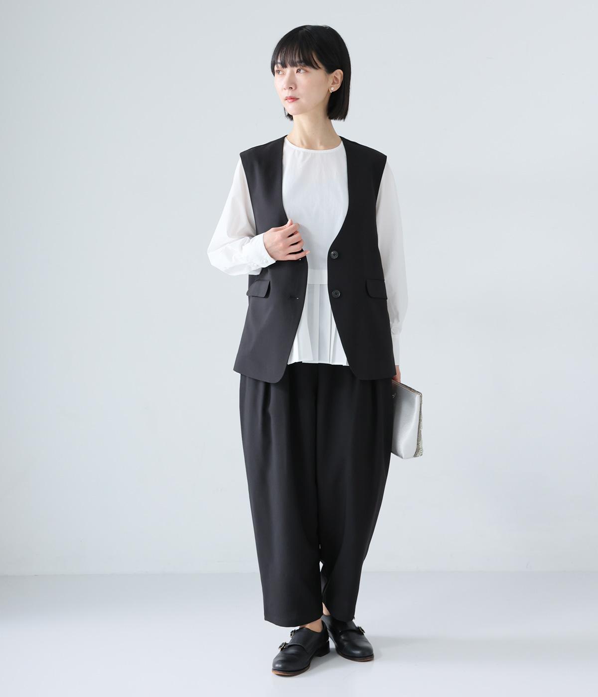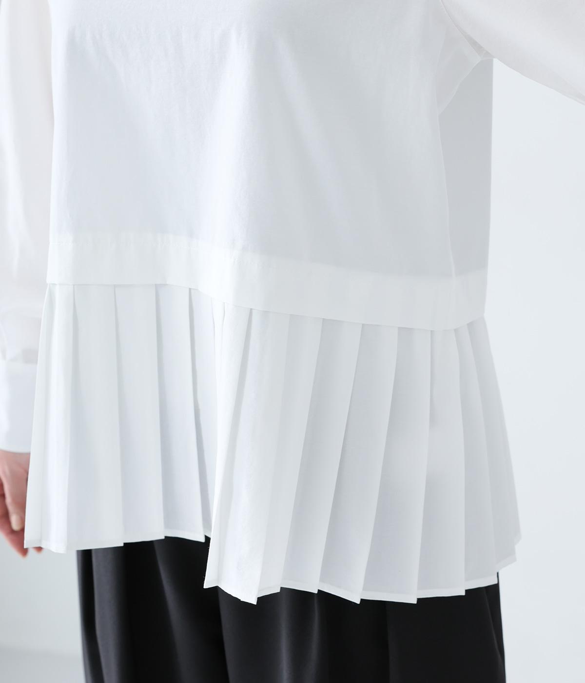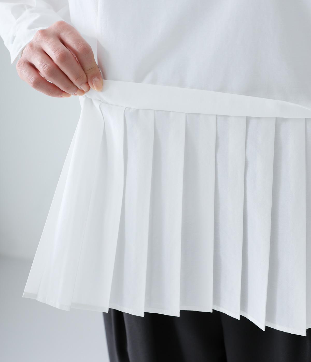 裾のプリーツが着こなしに立体感をうみ、気になるお腹まわりをカバーするプルオーバー。長めのカフスとボリューム袖が大人女性の魅力を引き立てます。大きく開くバックファスナーが着脱をアシスト。オンオフ問わず活躍し、おしゃれの幅が広がる一着です。