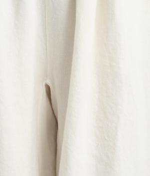 股にマチを付けたカラテパンツに見られる仕様を採用しました。動きやすくリラックス感がありながら、履いたシルエットがとてもきれいに仕上がりました。サイドは紐仕様にしてアクセントと調整機能をつけました。
