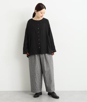 オフホワイトはほどよいハリ感のある麻ツイル生地を、千鳥チェックはやわらかなコットンリネン素材をそれぞれ使用しました。どちらもナチュラルな風合いが魅力の快適な着心地です。