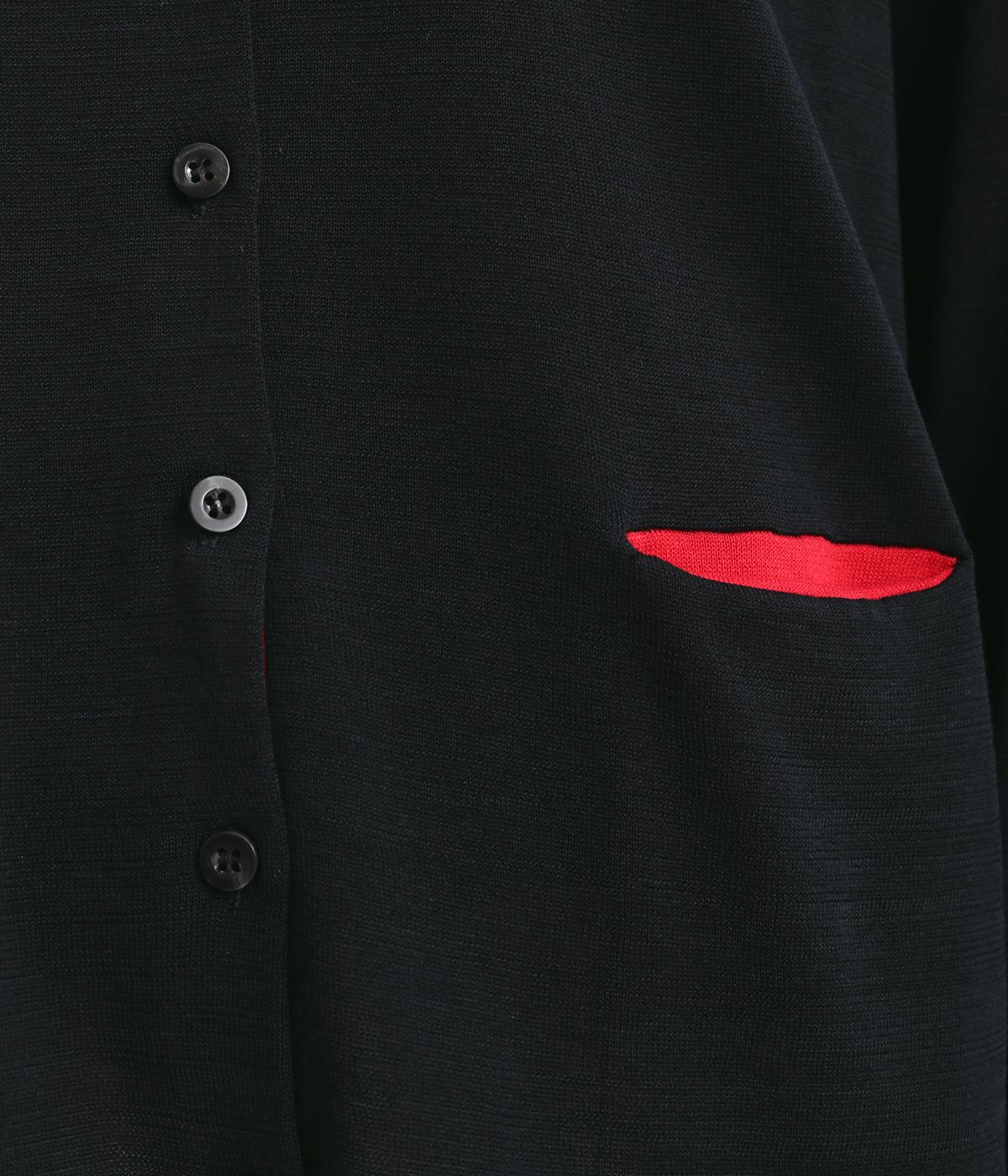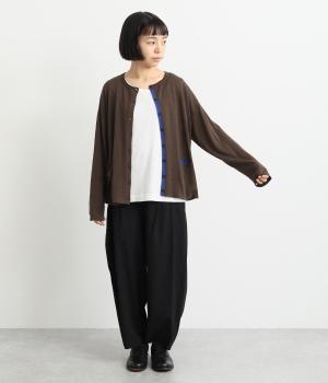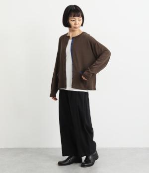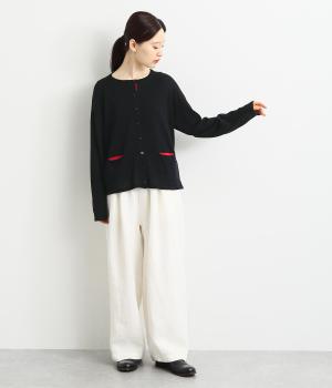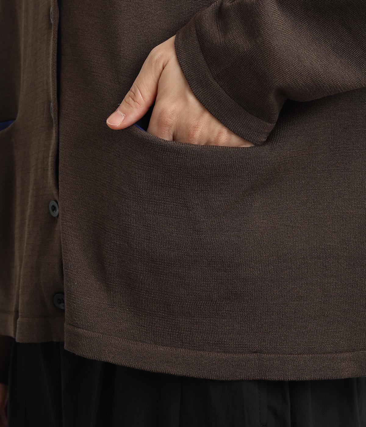 なめらかな肌ざわりのハイゲージニットに仕立てました。下前立てとポケットを配色にして、ポイントカラーでアクセントに。シンプルなコーディネートにそっと華やかさを与えてくれます。