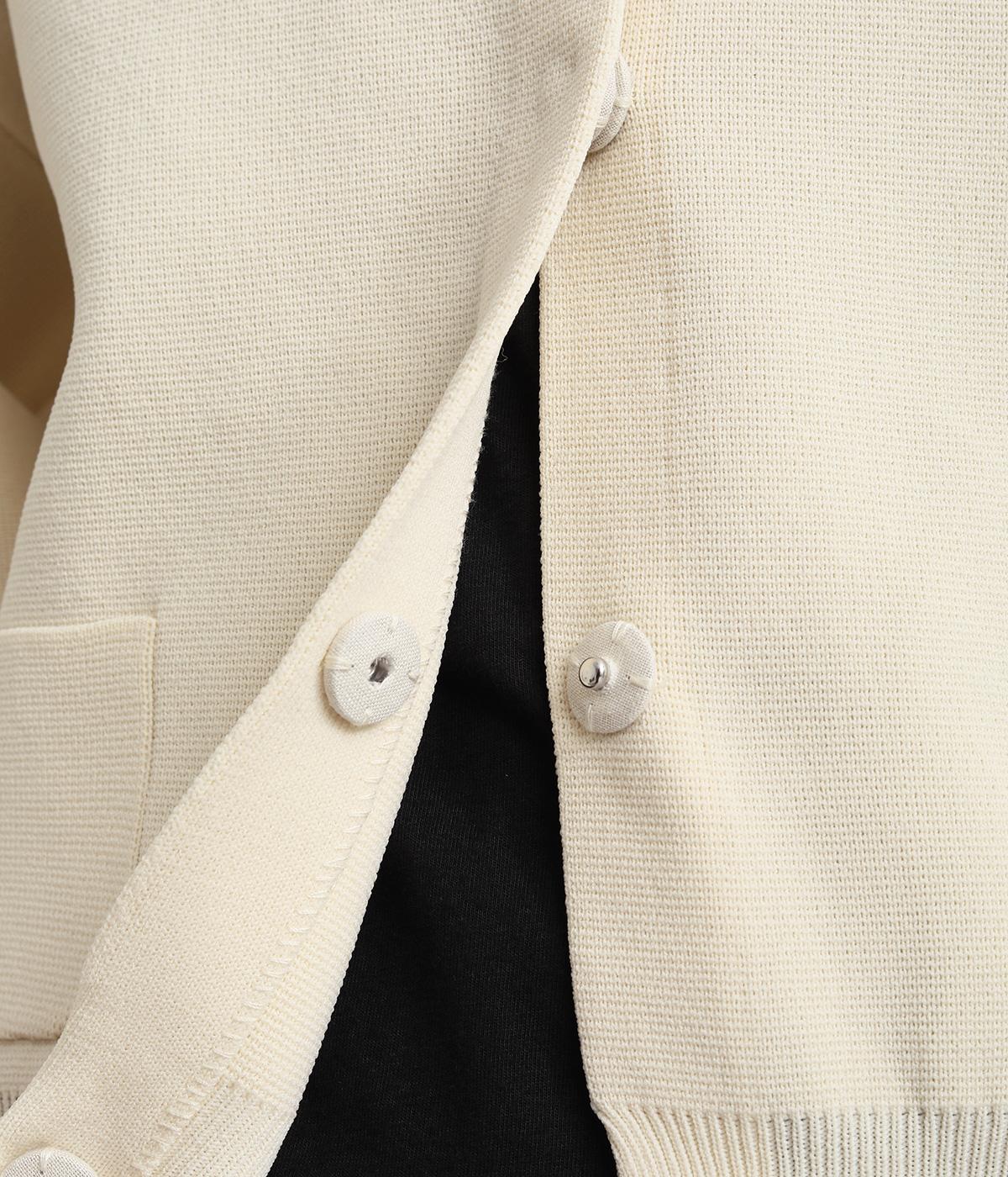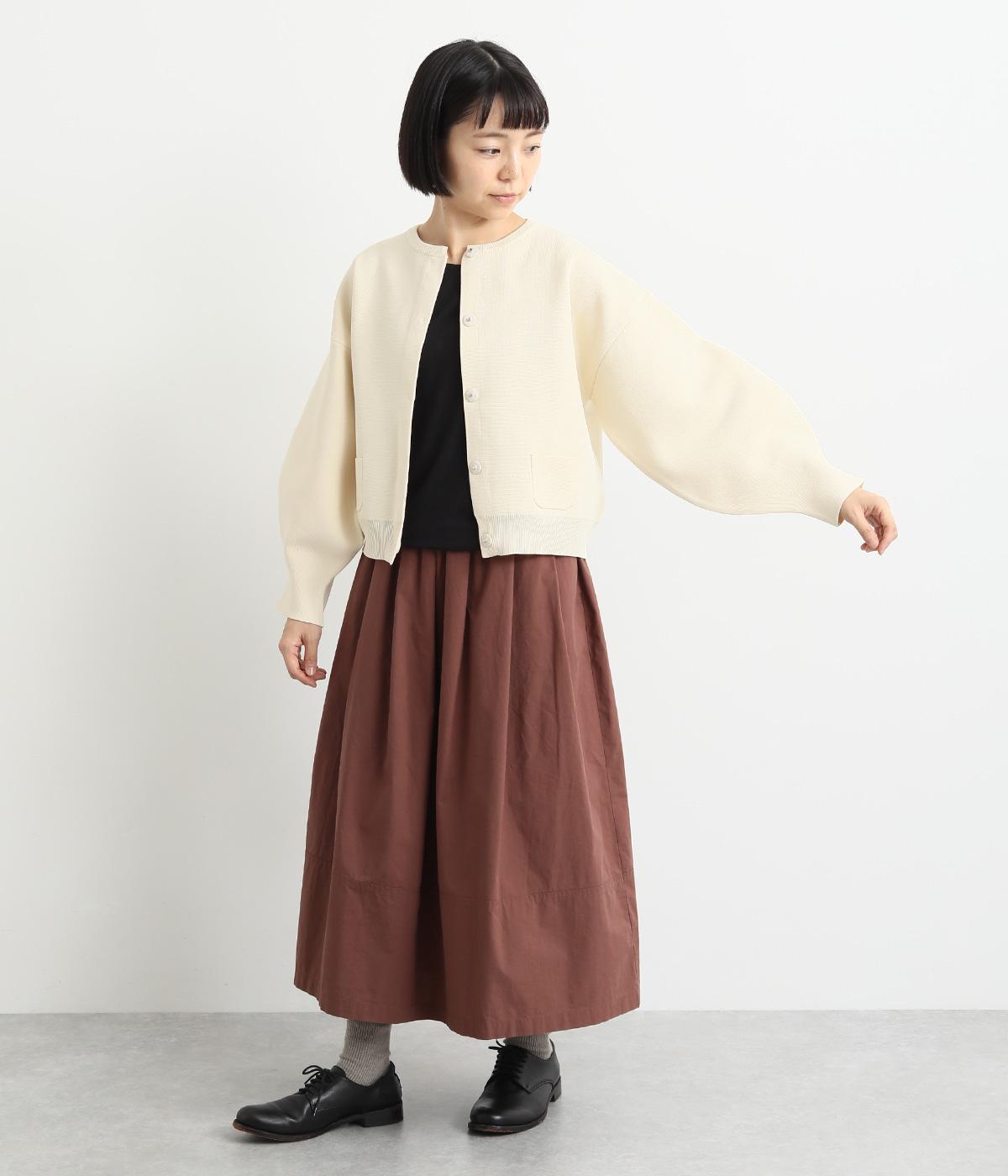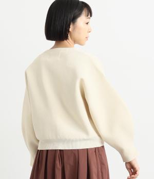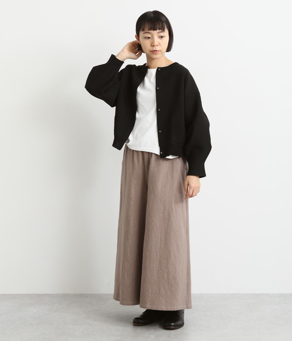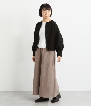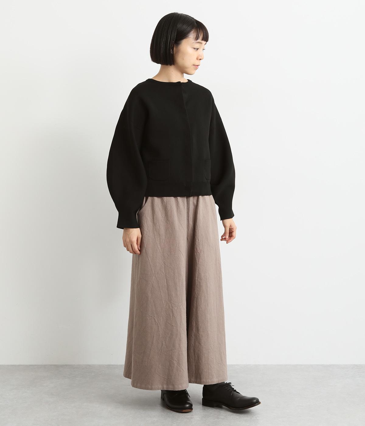 バルーン袖とリネンのくるみボタンをアクセントにしたカーディガンです。袖のふんわり感が女性らしい印象をプラスし、シンプルながらも個性が光ります。パンツにもスカートにも合わせやすい万能な一枚です。