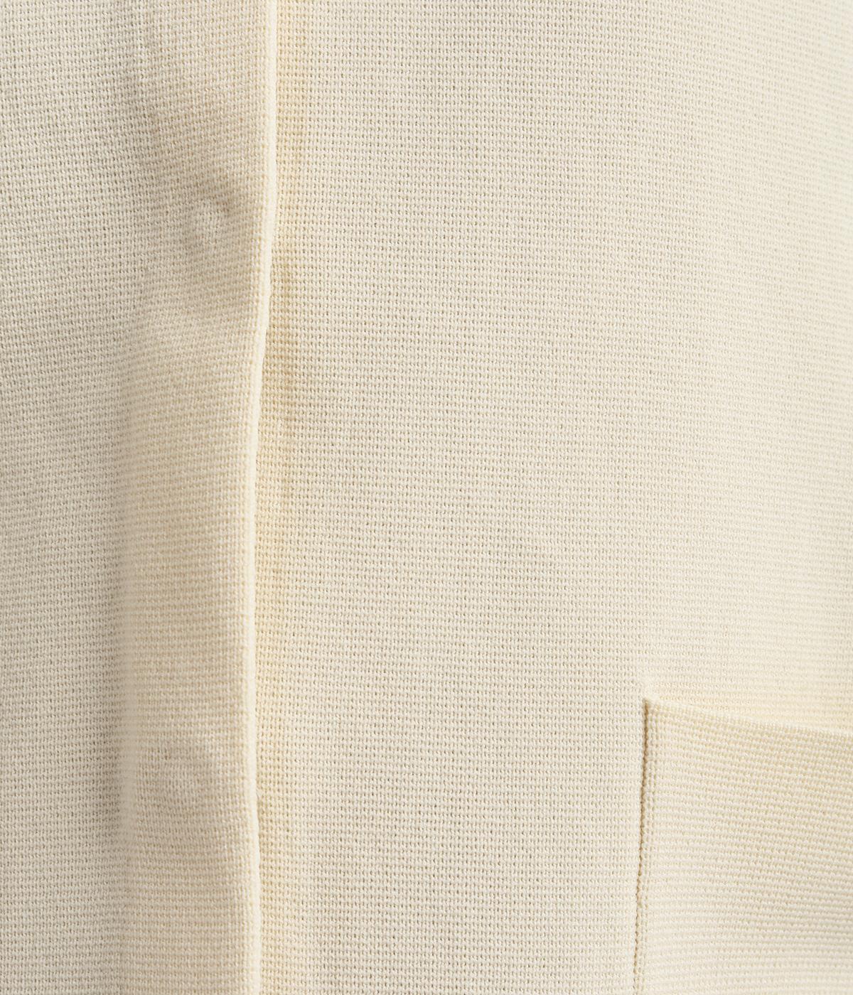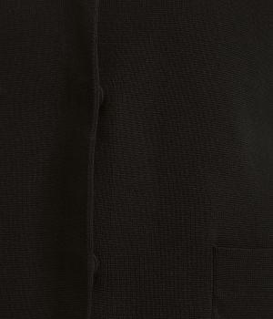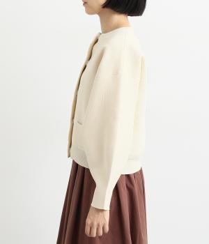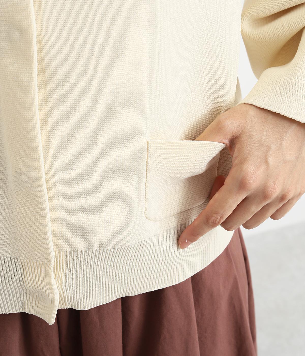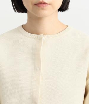 乾きやすく丈夫な強撚ポリエステルヤーンをミラノリブ編みしカーディガンを作りました。ハリがありさらっとしたドライタッチが特徴で心地よく肌になじみます。