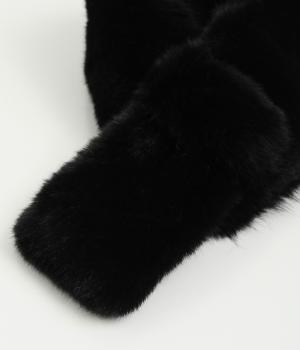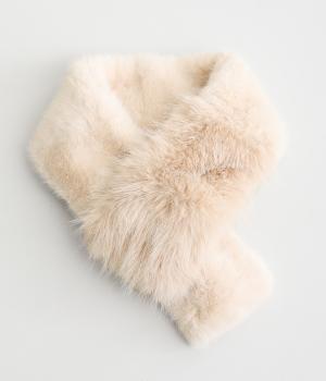ホールに通すだけで装着可能なイージー仕様が◎なティペット。長毛と短毛をさり気なく切り替えて、ワンカラーながらデザイン性をプラス。顔まわりに適度なボリュームをもたせてくれます。