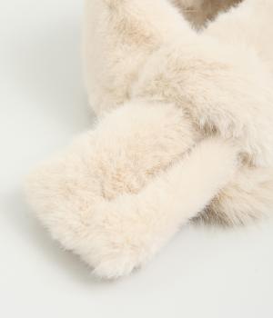 肌に触れる裏面まですべて、ふわっふわのエコファーを使用。表面感がリッチで、シンプルな装いに季節感をプラス。軽やかなポリエステル製でデイリー使いしやすい仕上がりです。