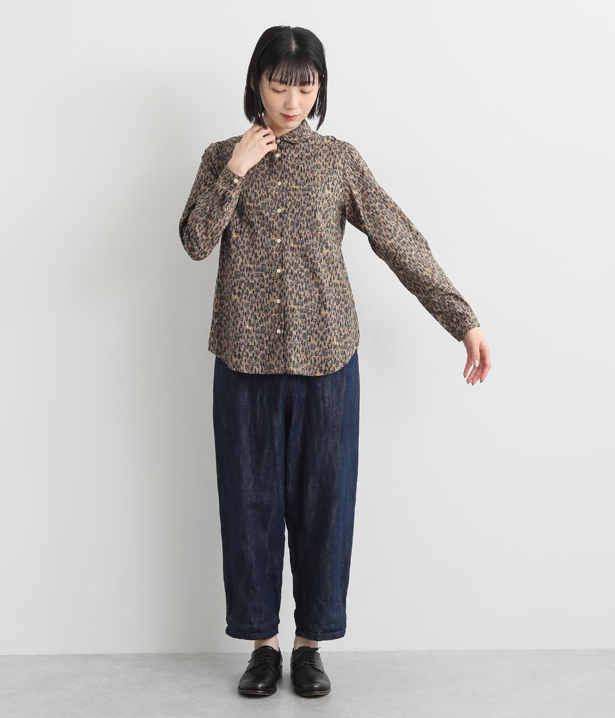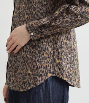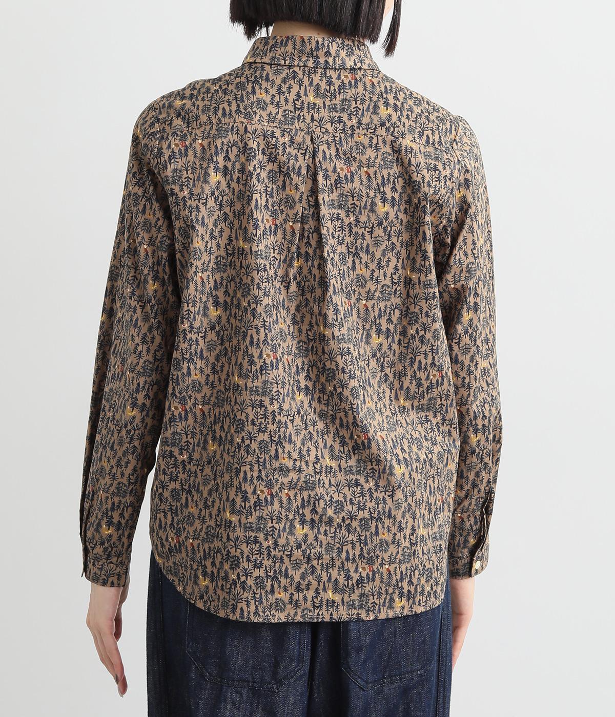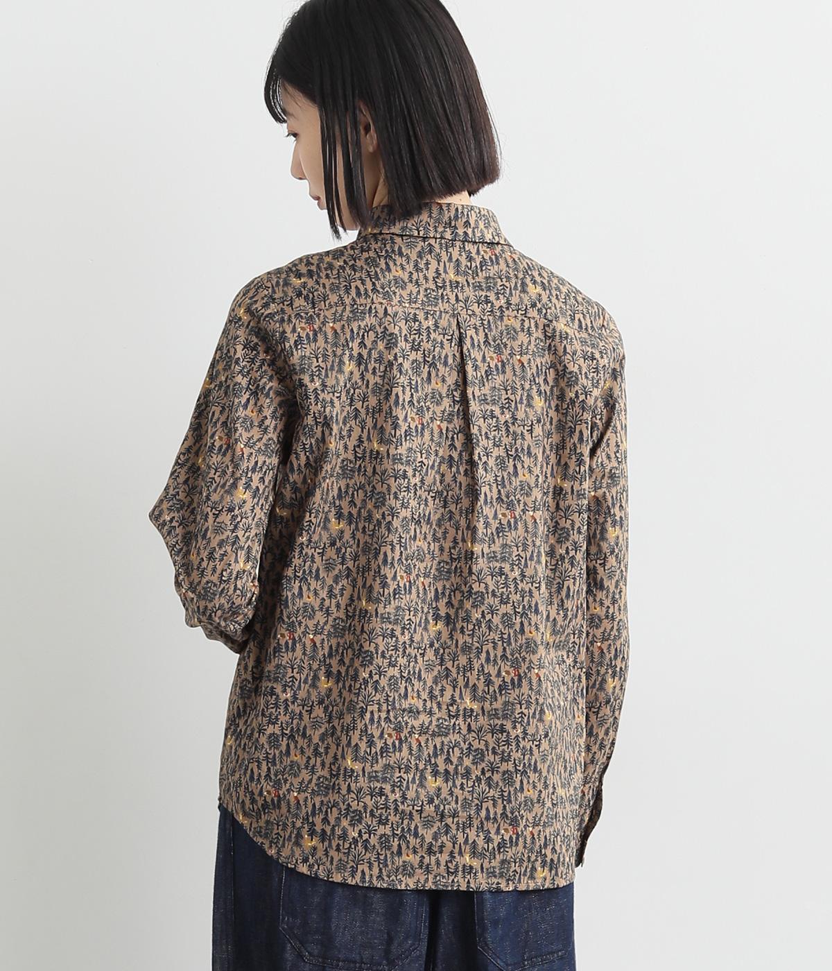 森の中に動物たちが隠れている、ほっこりと癒されるような愛らしい総柄シャツ。よく見ないと分からないほどとても細かなプリントで、子どもっぽくならないのが魅力です。柄を引き立てる、無駄を省いたベーシックなデザインが◎。さりげない丸襟も女性らしさをアップさせてくれます。