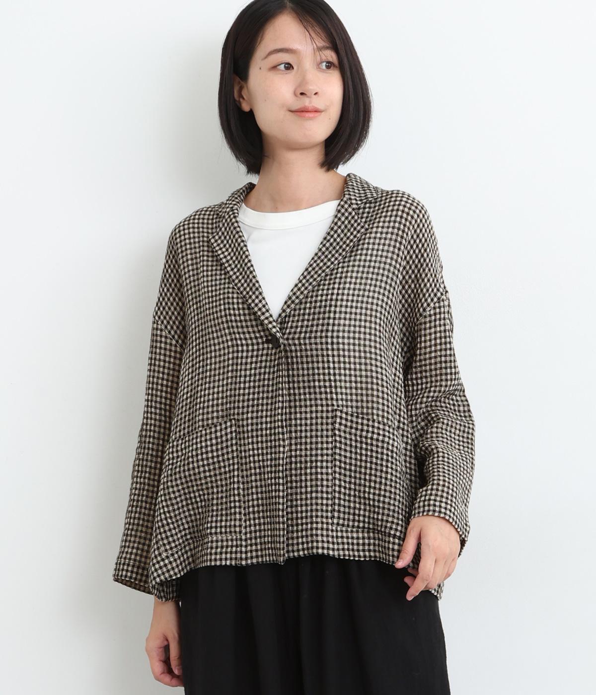 コットンウールサッカー ダブルボタンジャケットチャコール