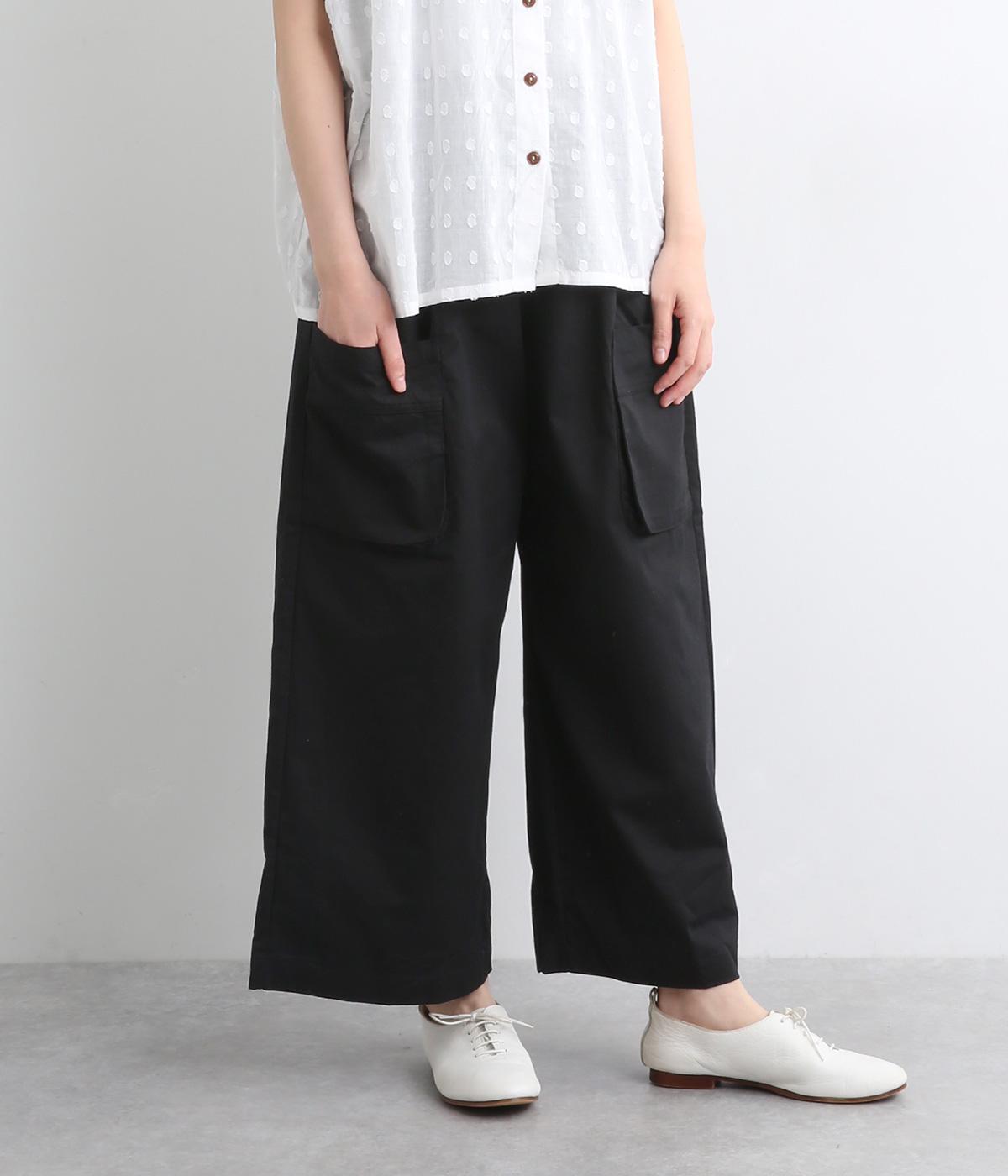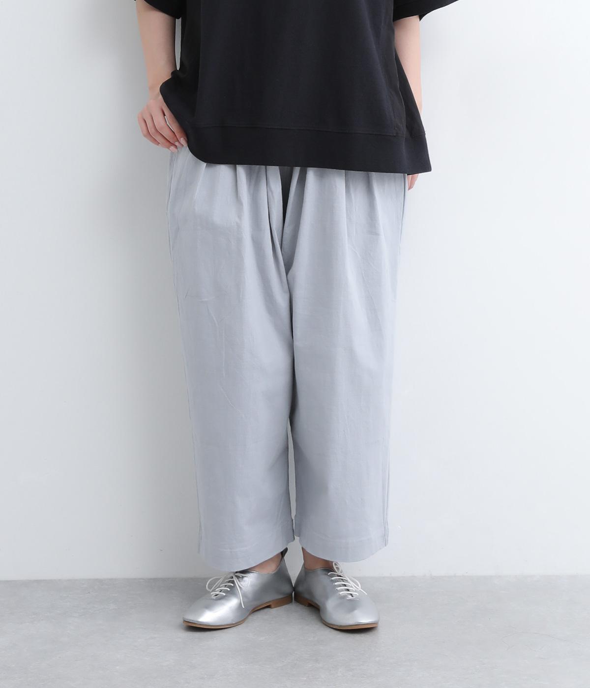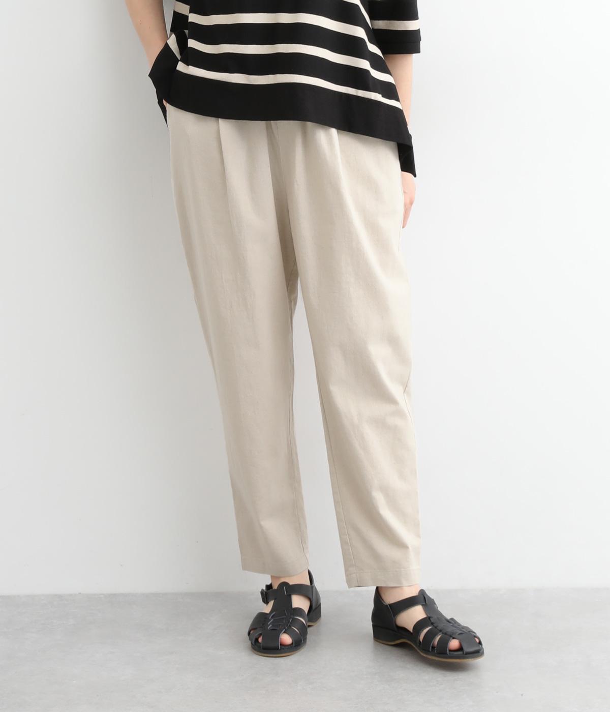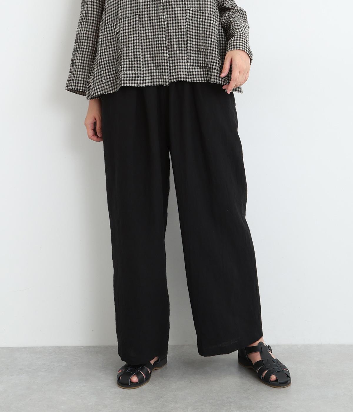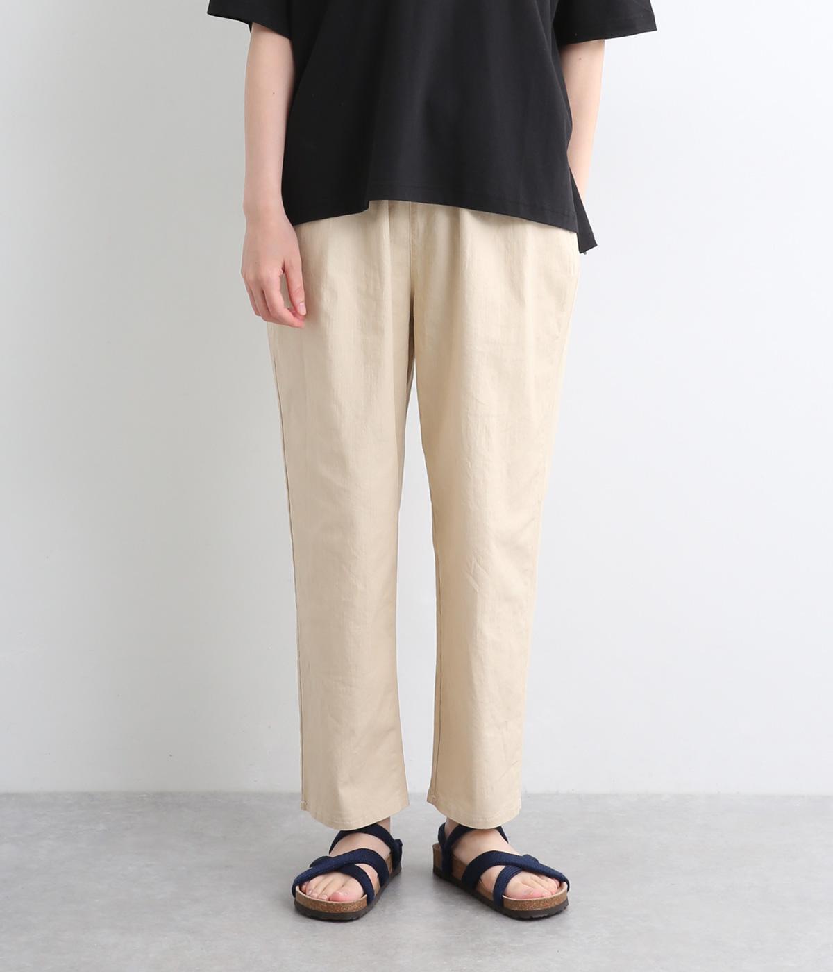 リネンコットンデニム裾ギャザーパンツインディゴ
