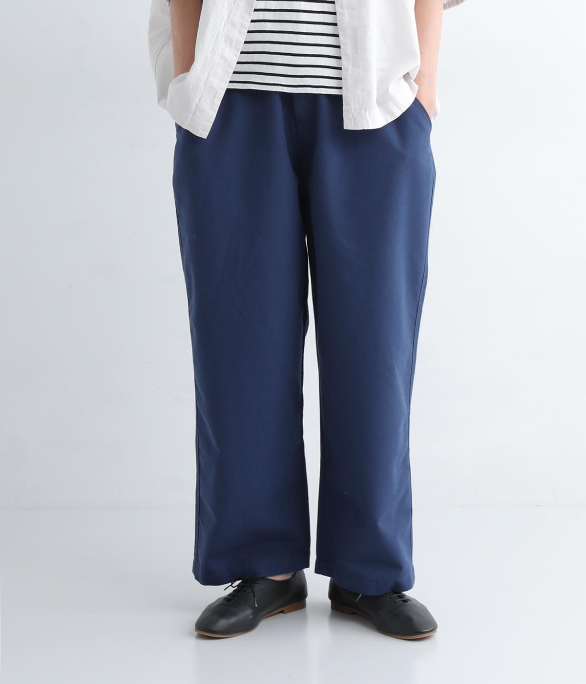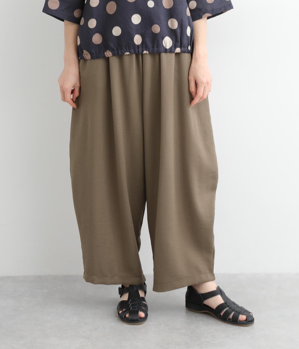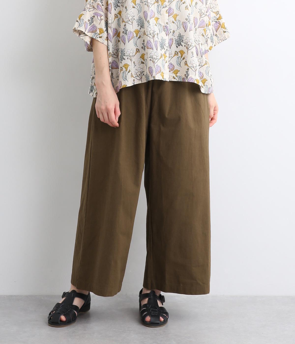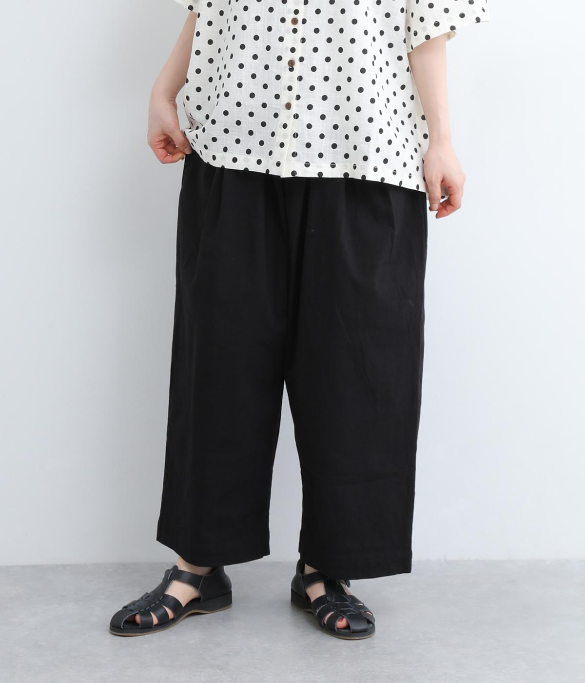 リネンコットンデニム裾ギャザーパンツインディゴ