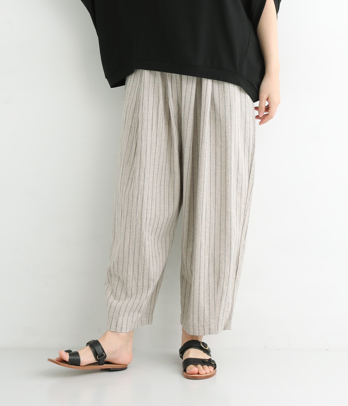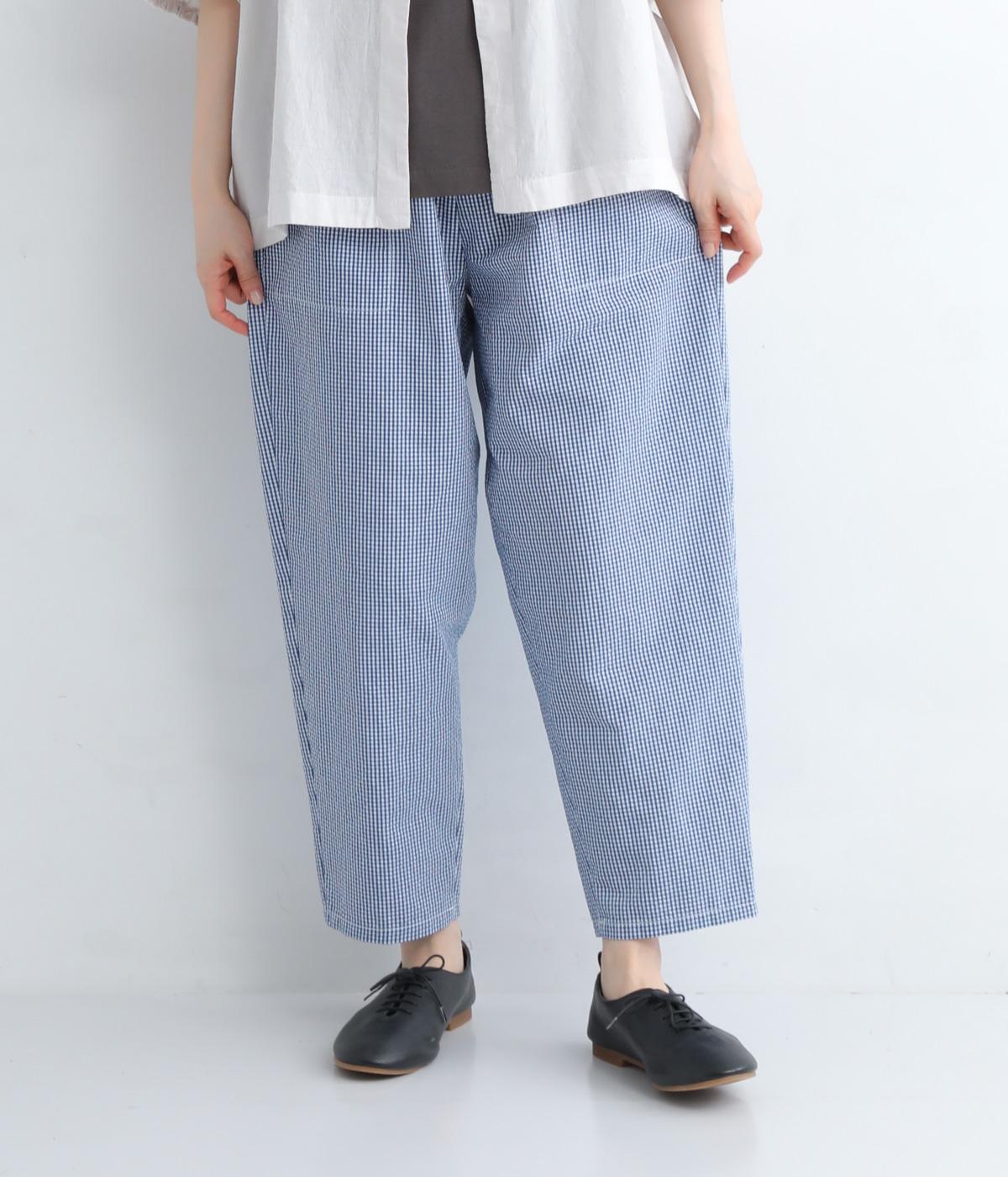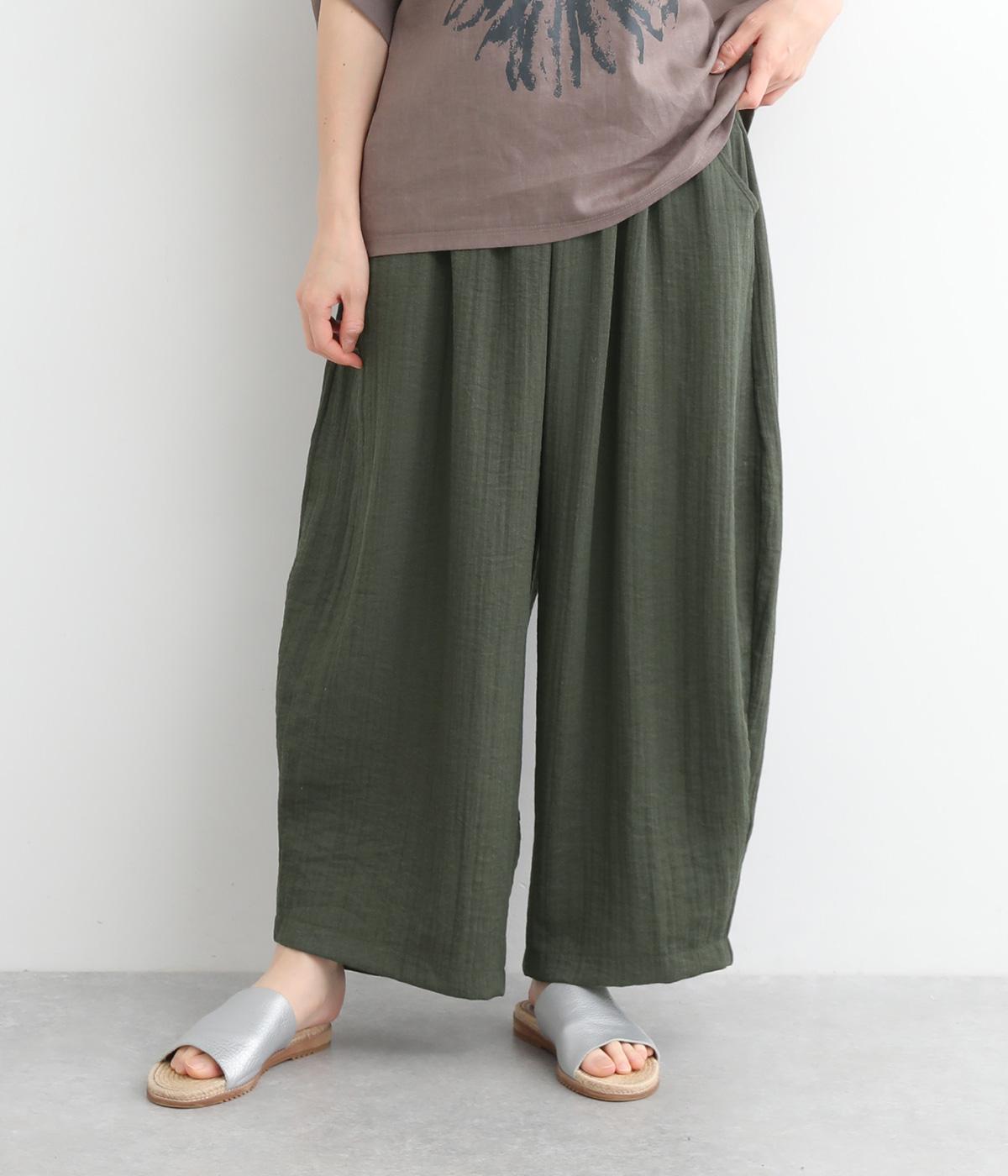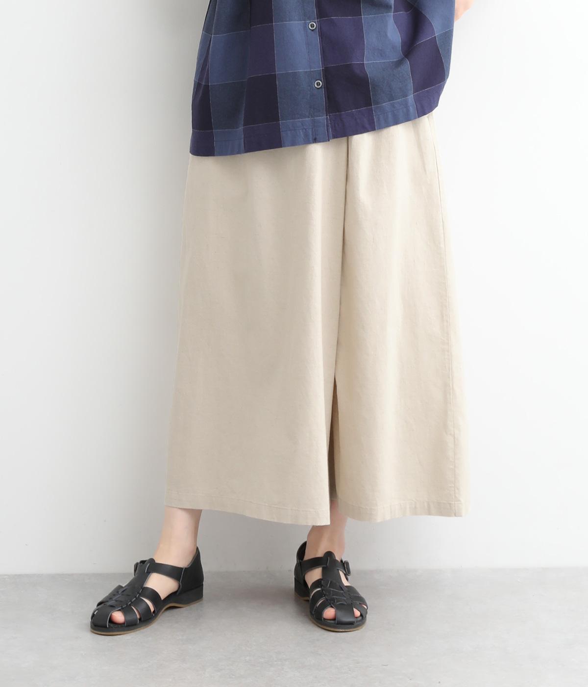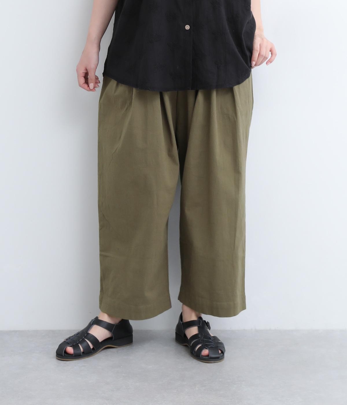 リネンコットンデニム裾ギャザーパンツインディゴ