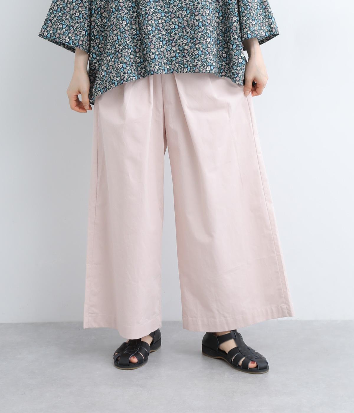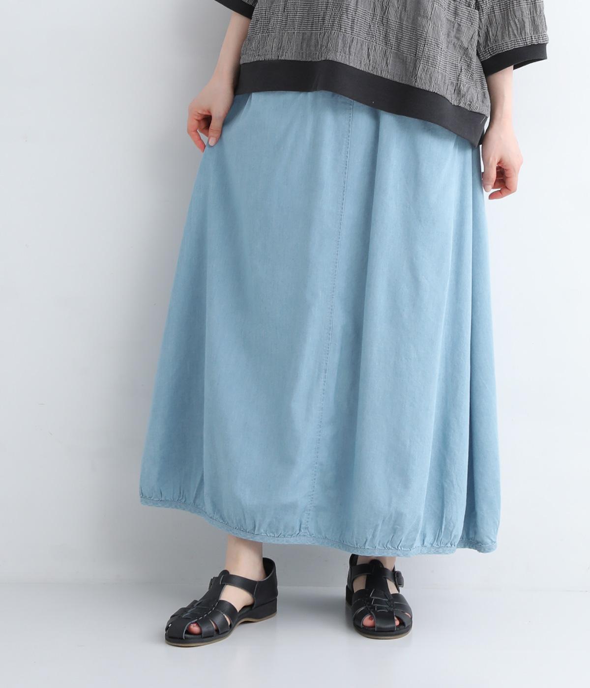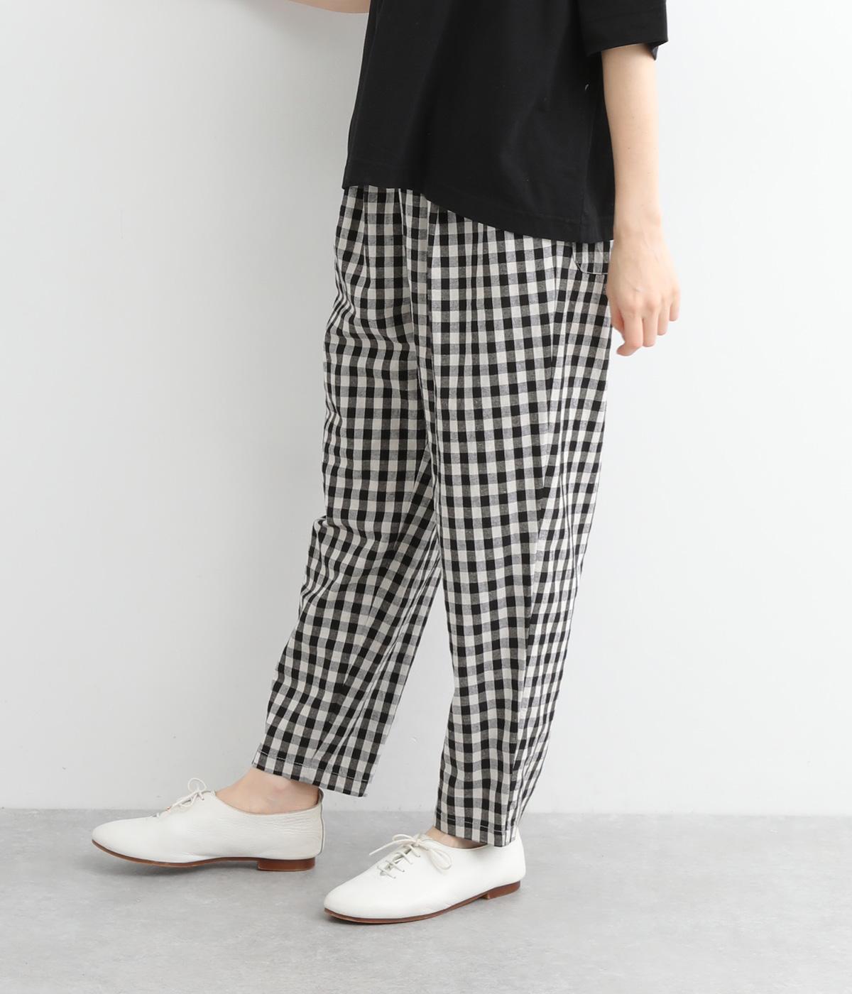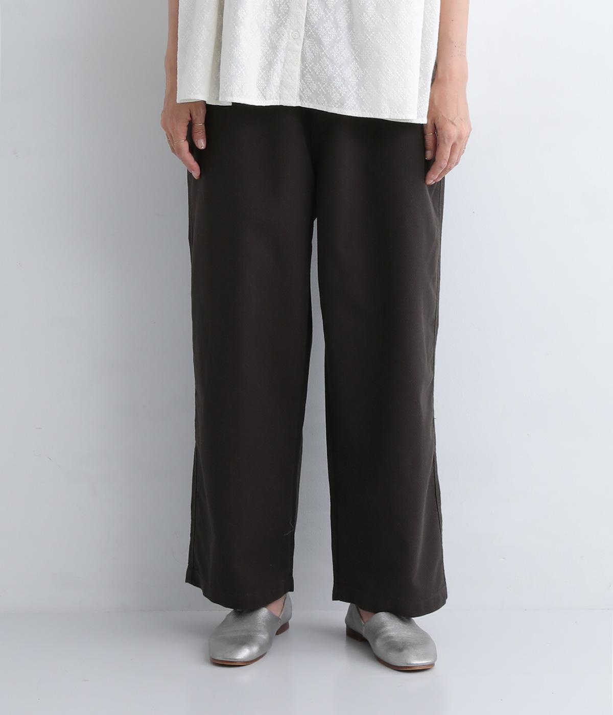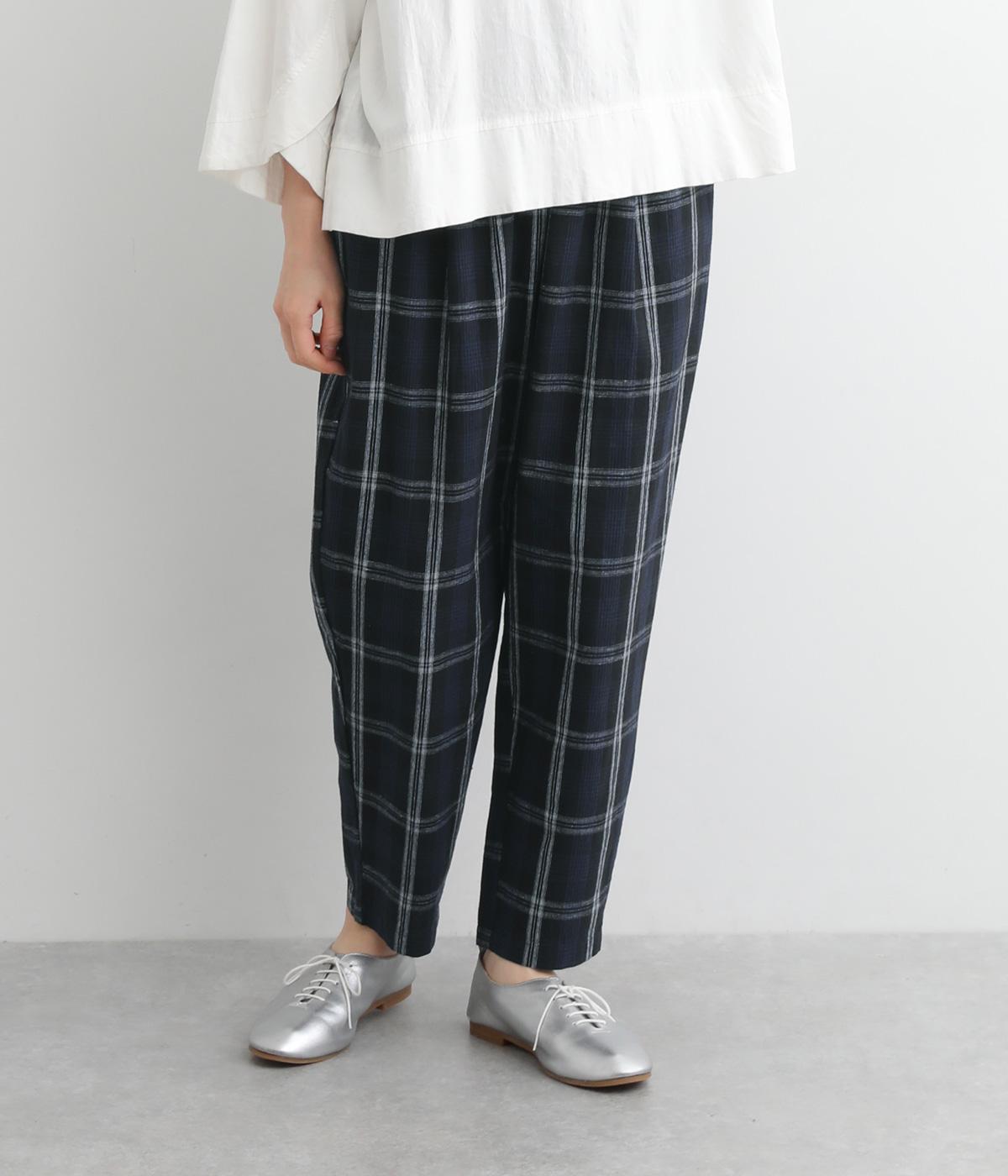 リネンコットンデニム裾ギャザーパンツインディゴ