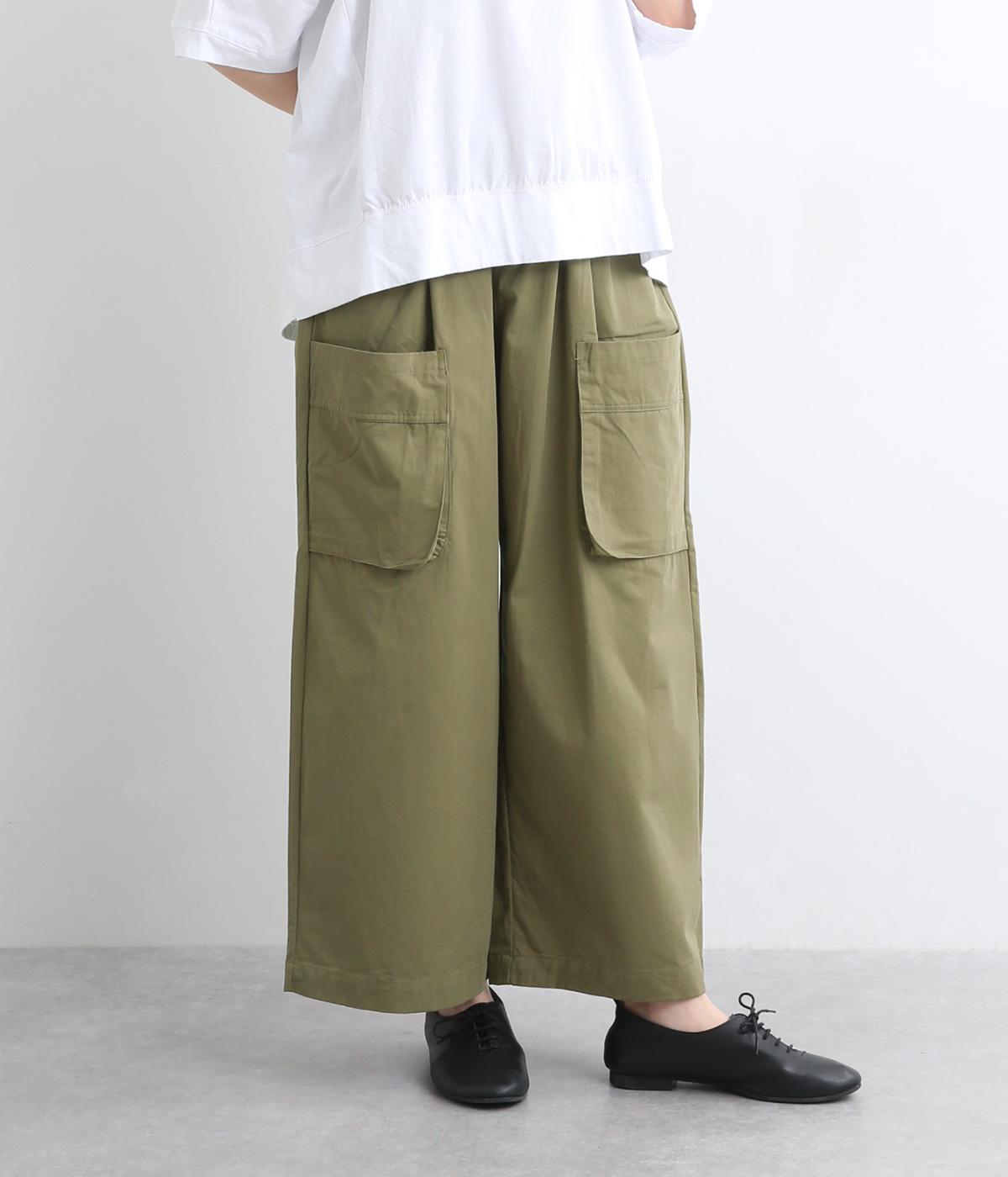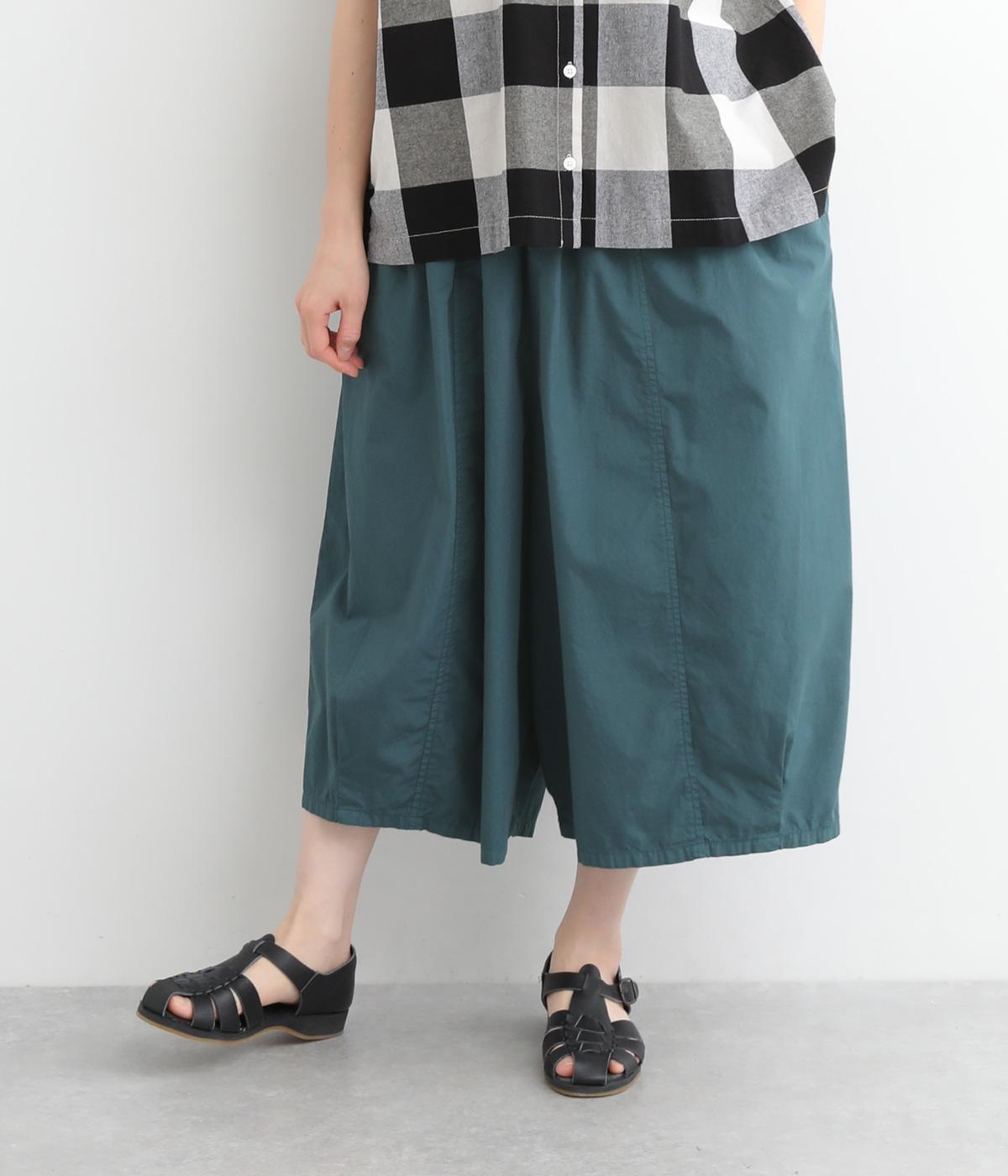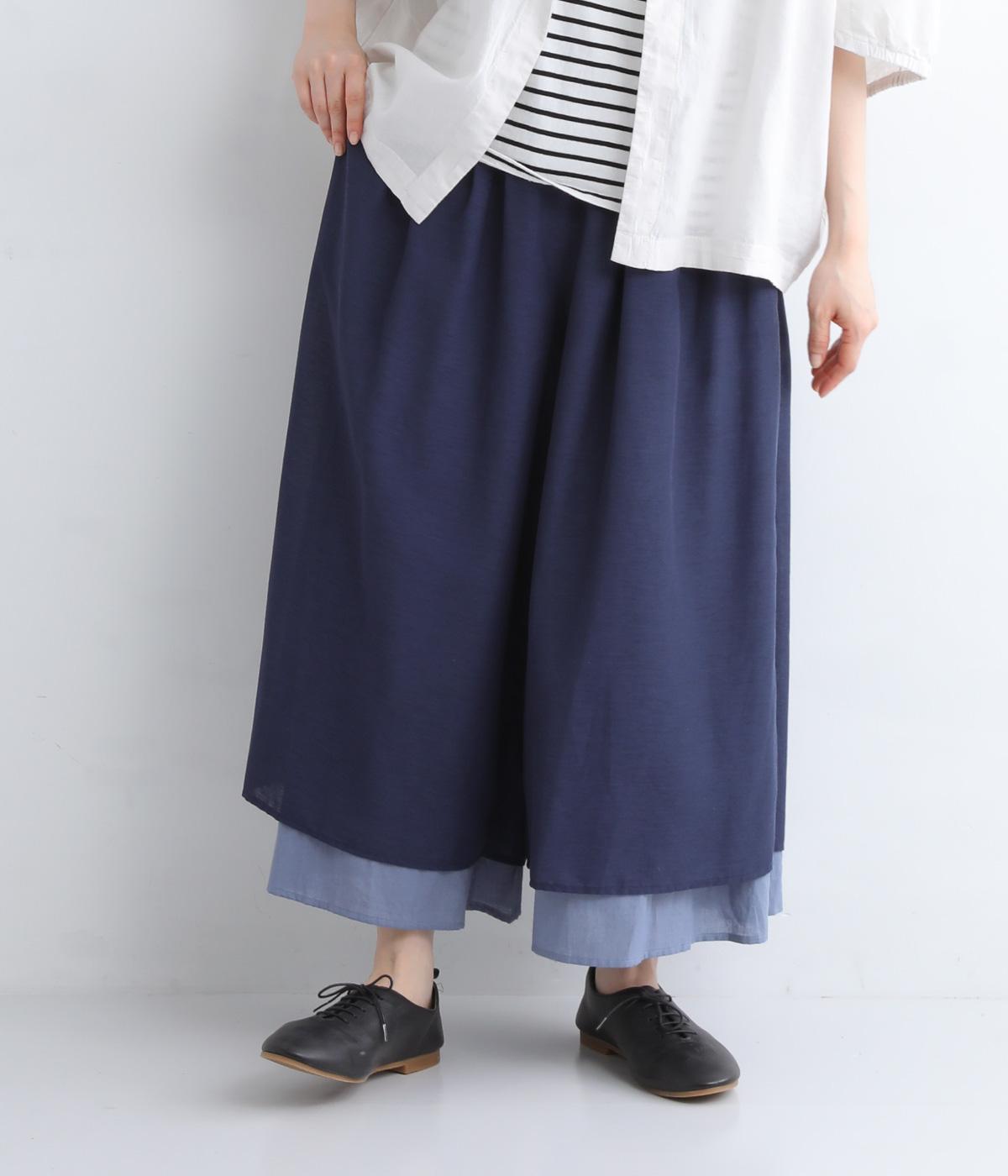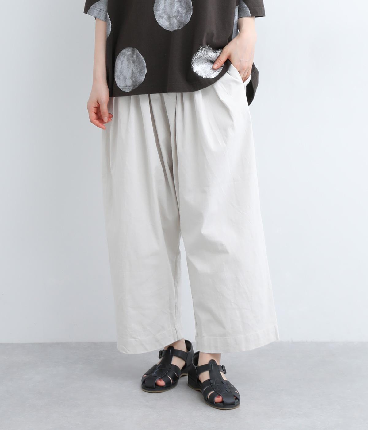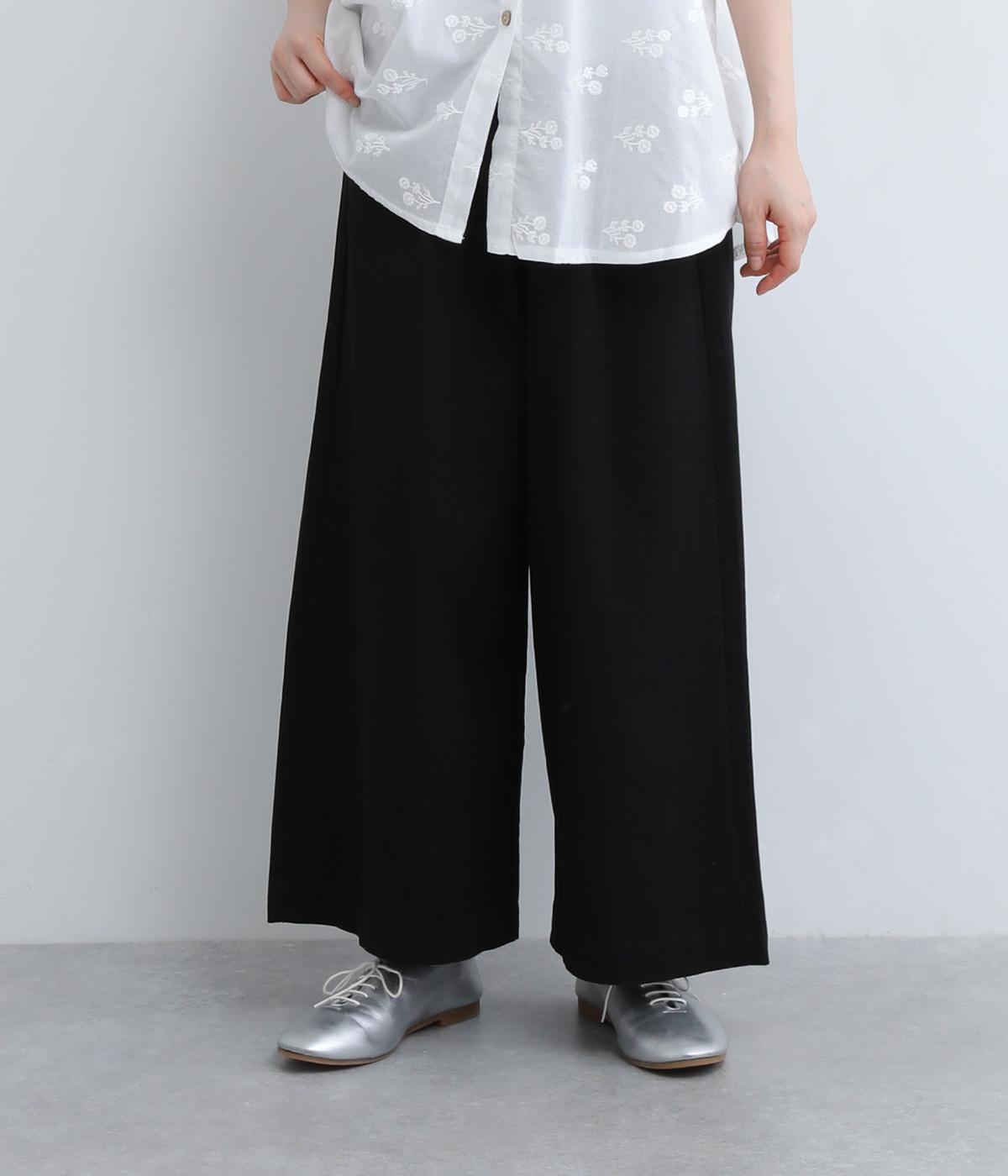 リネンコットンデニム裾ギャザーパンツインディゴ