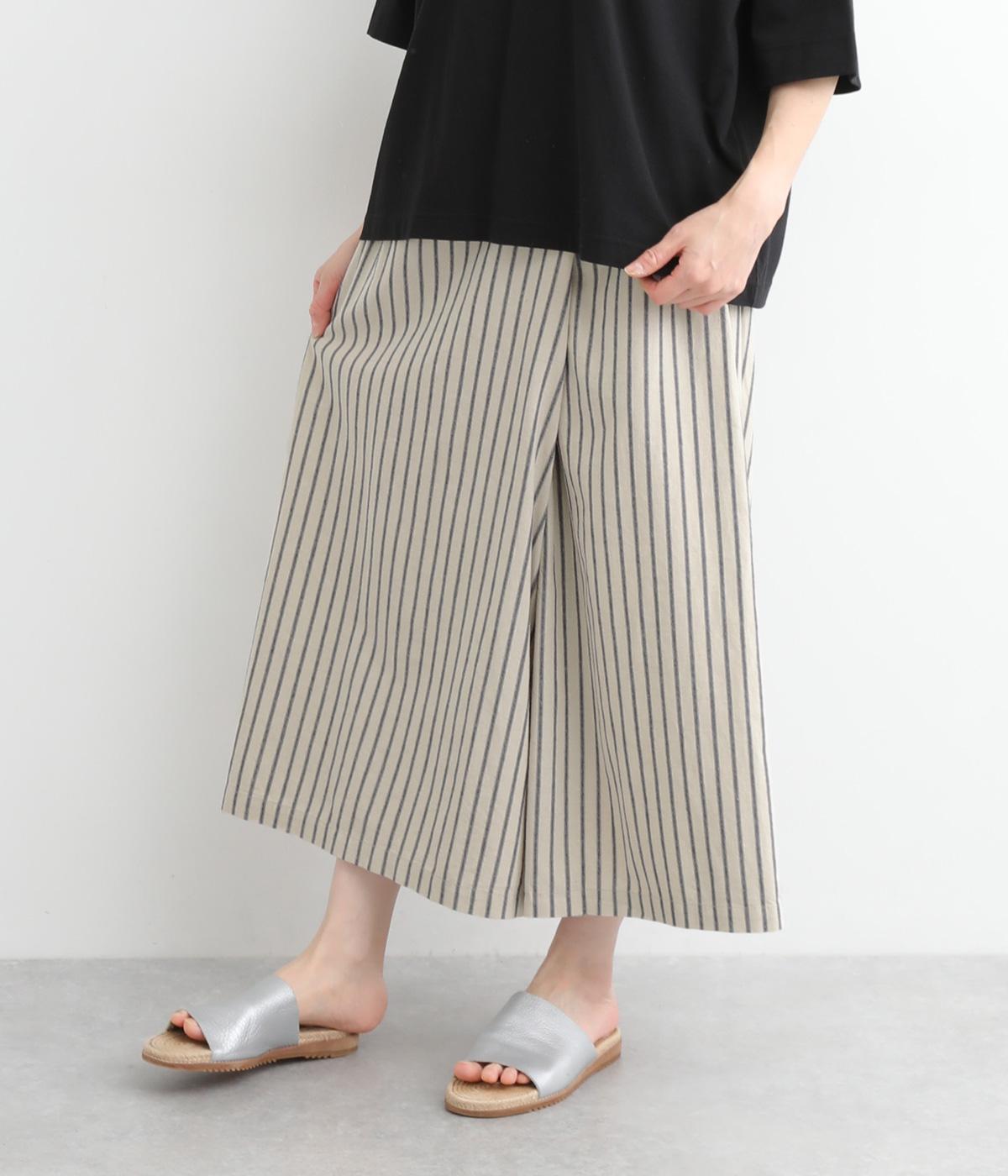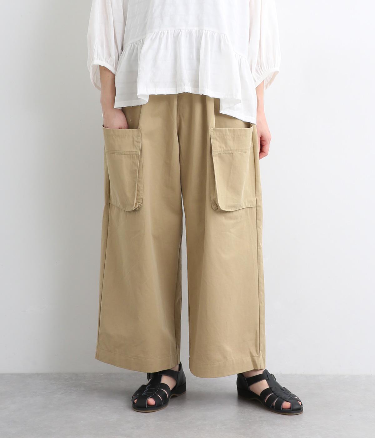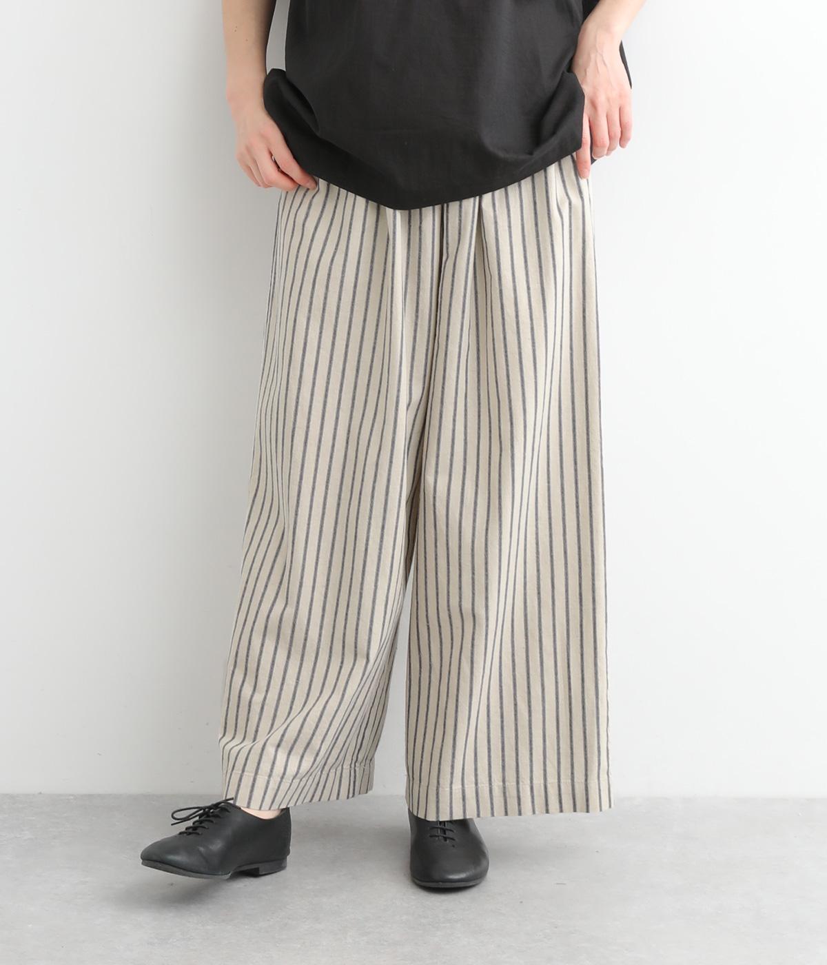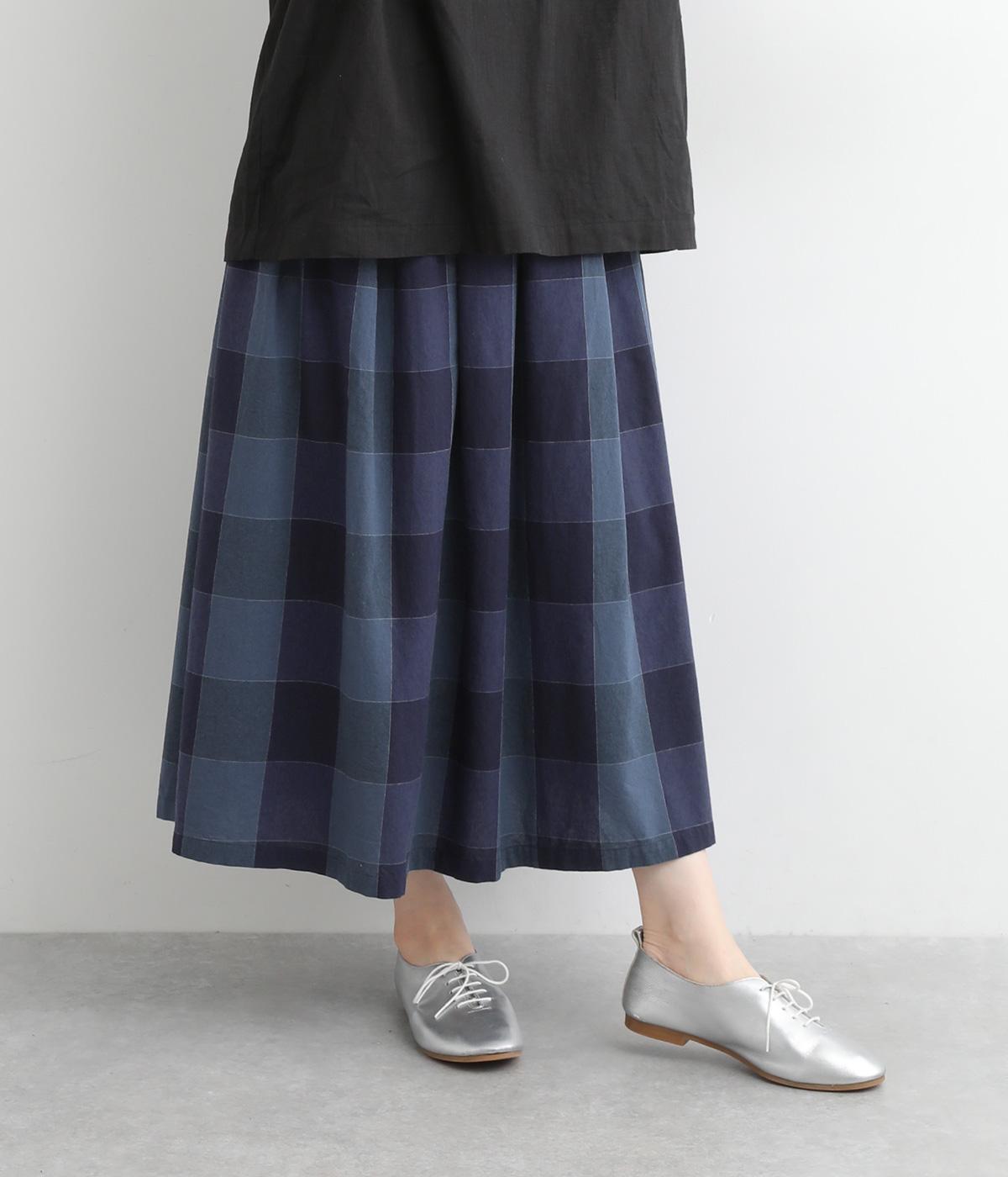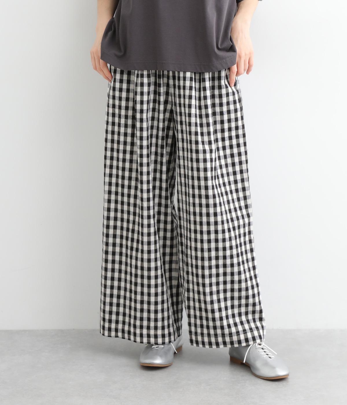リネンコットンデニム裾ギャザーパンツインディゴ