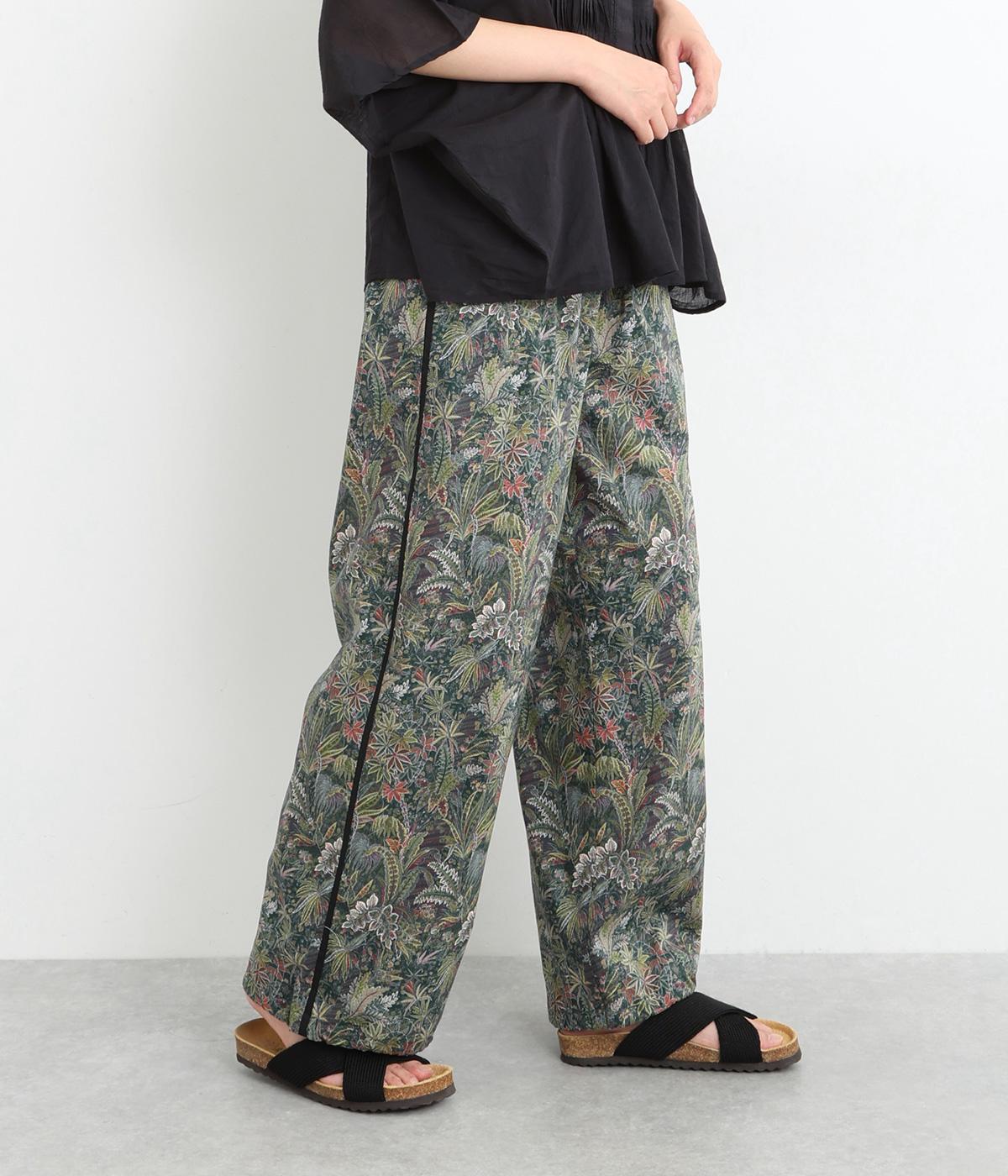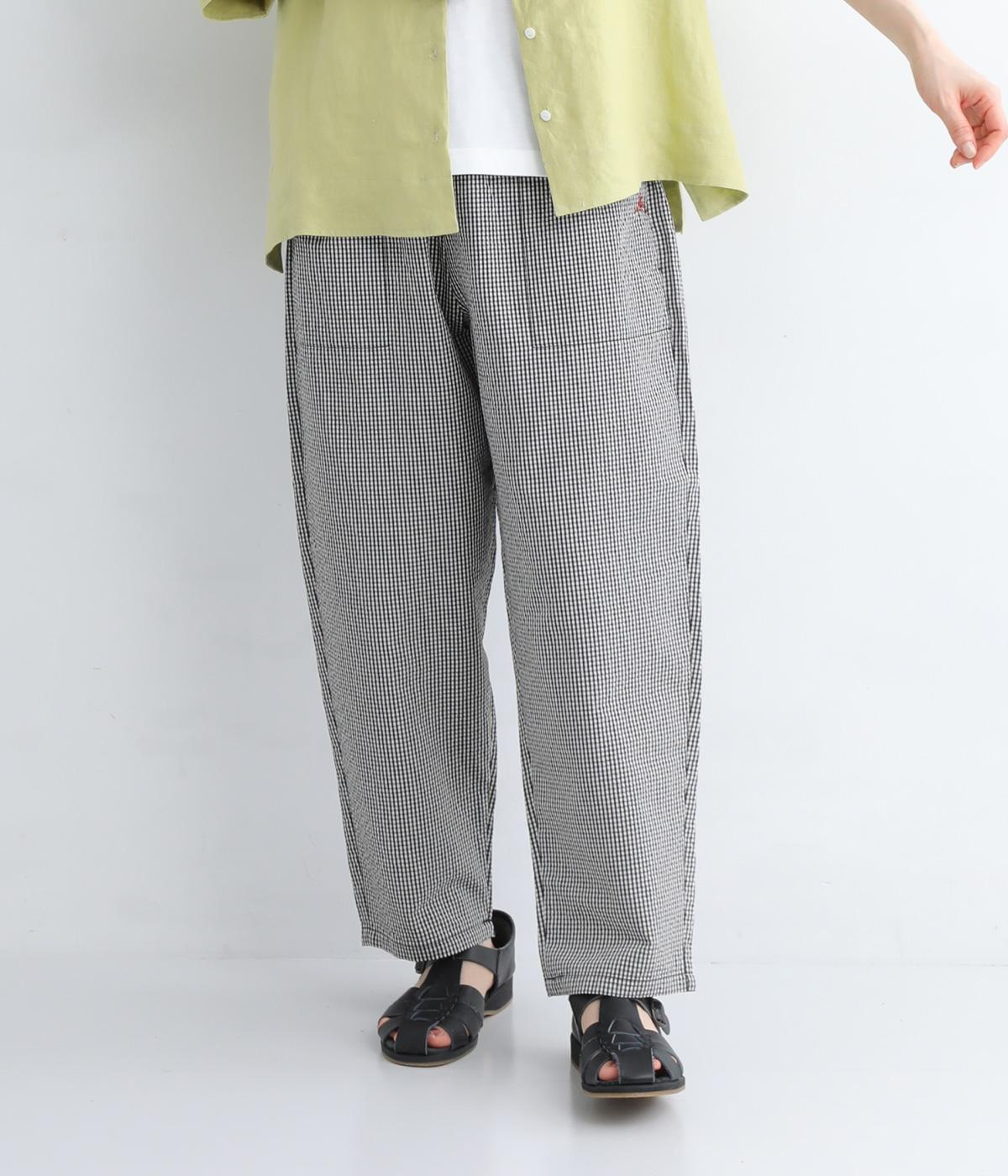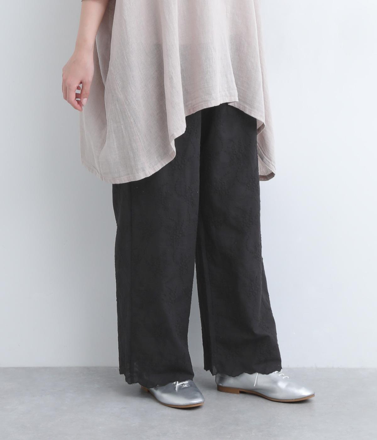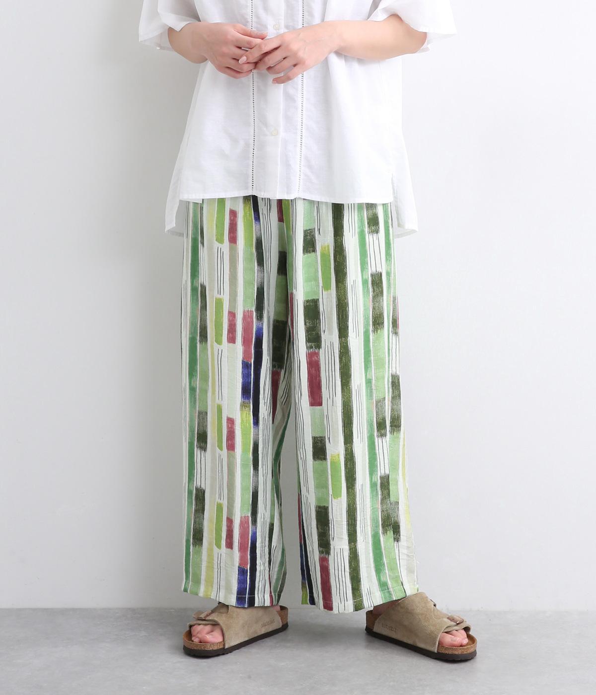 リネンコットンデニム裾ギャザーパンツインディゴ