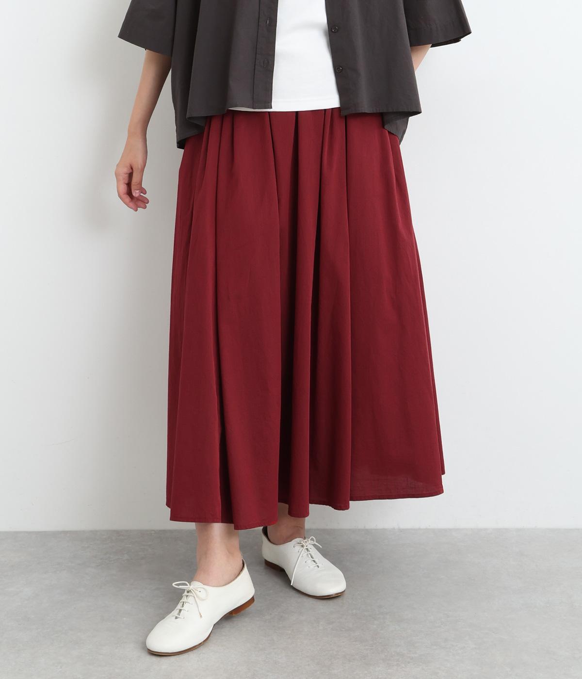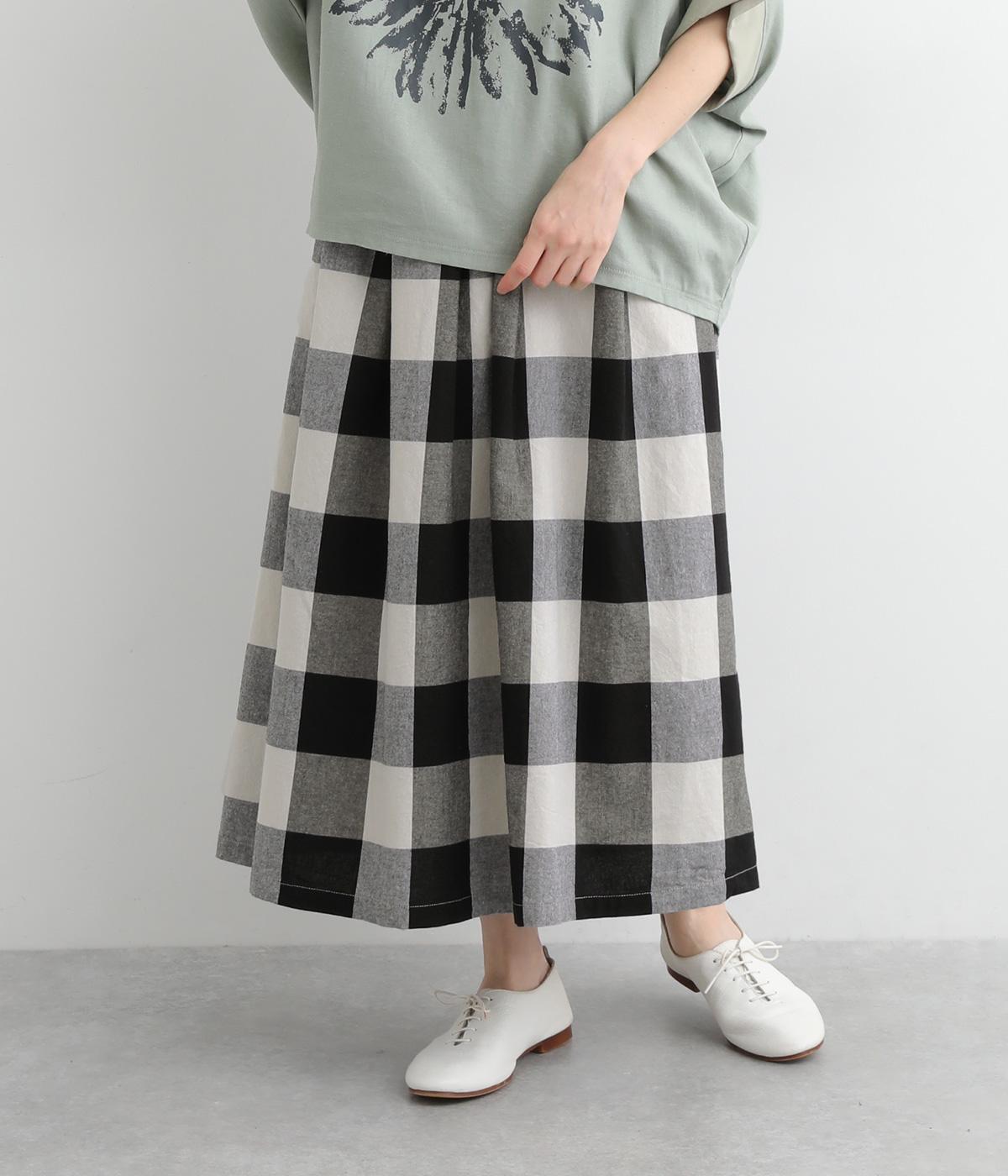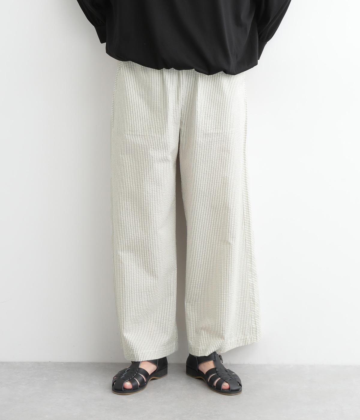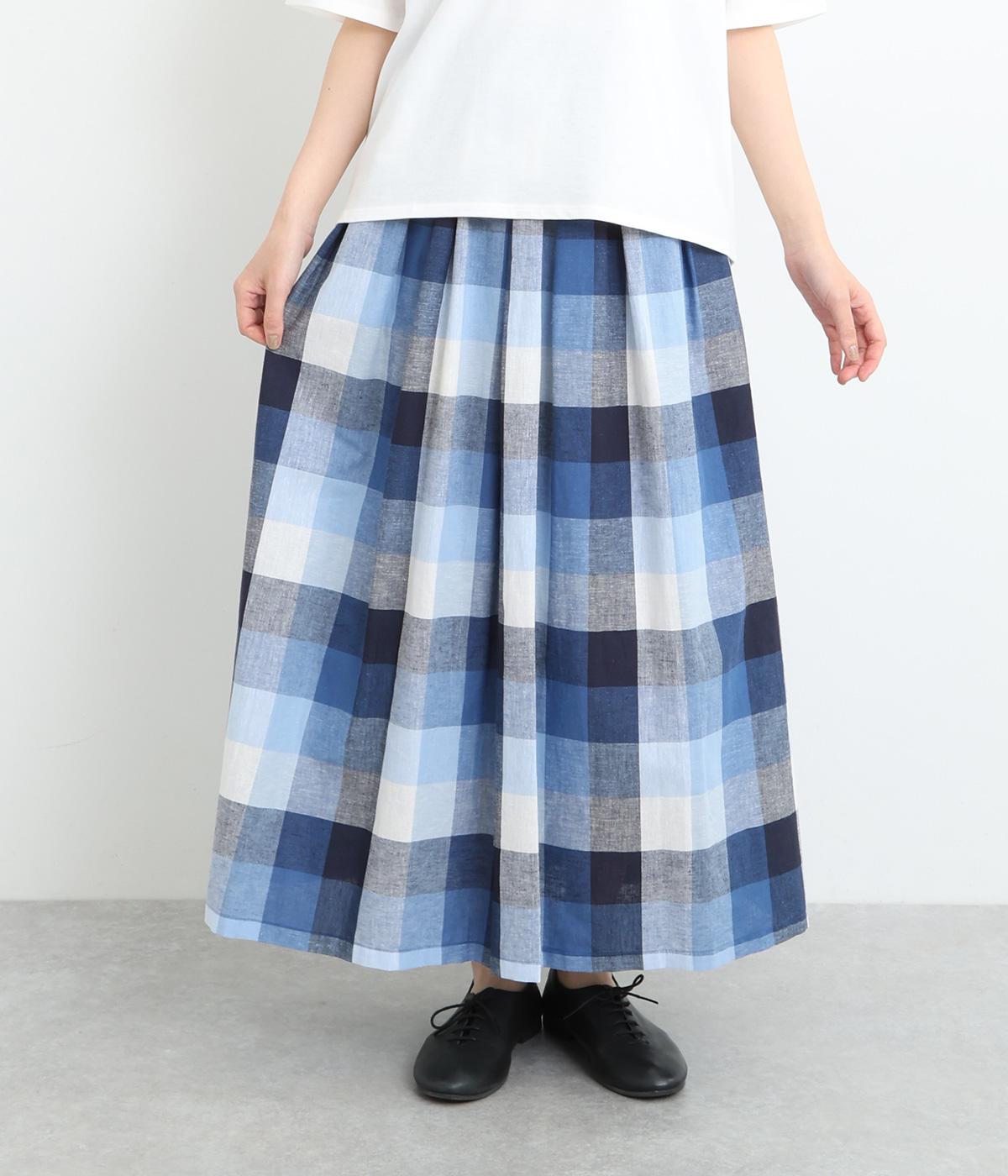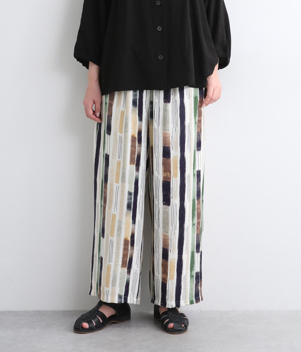 リネンコットンデニム裾ギャザーパンツインディゴ