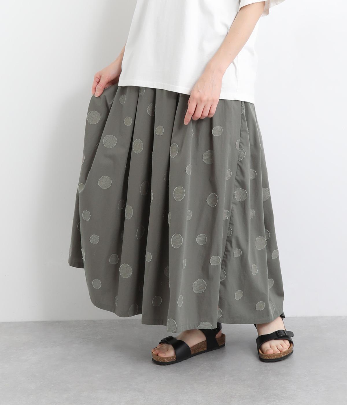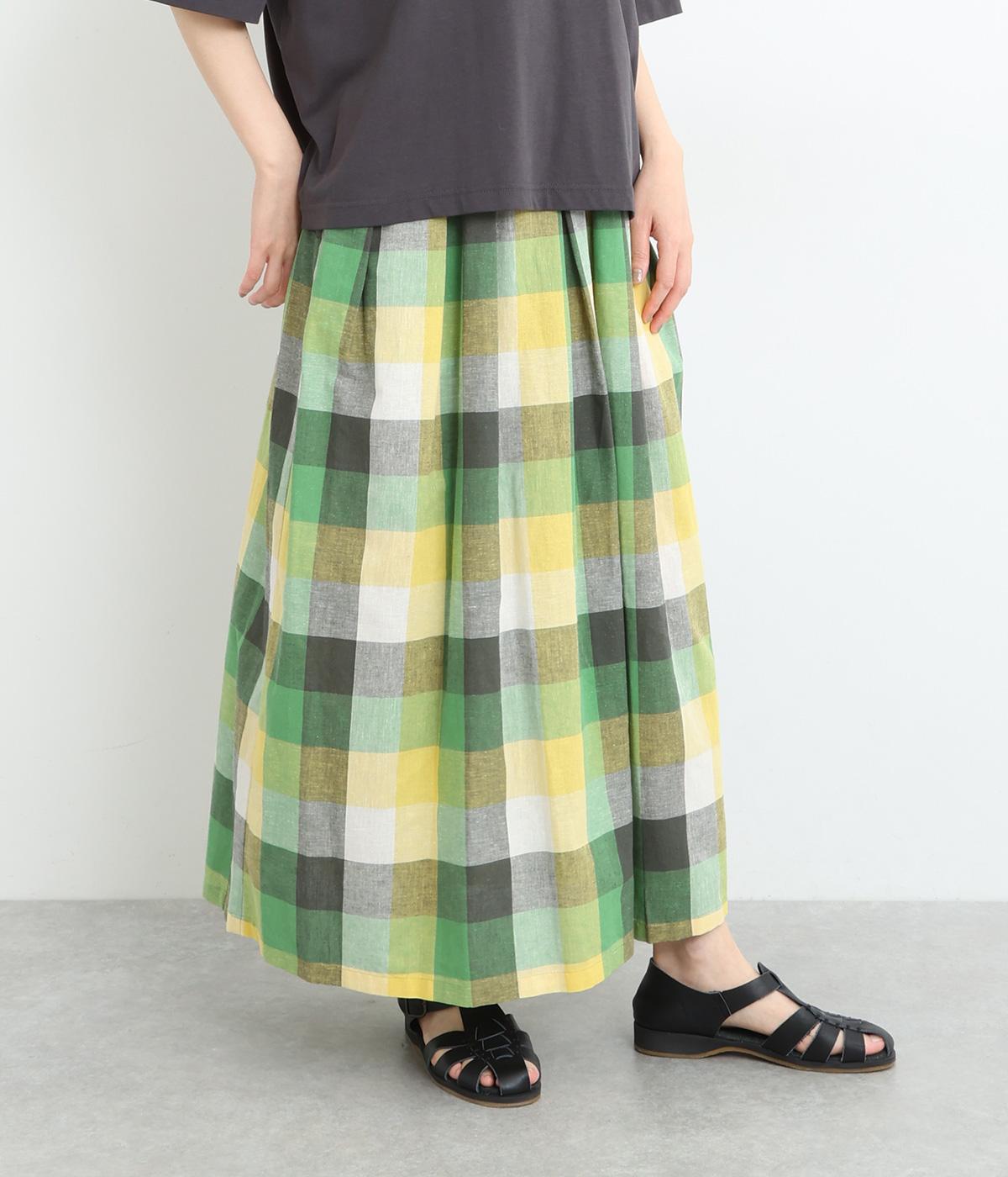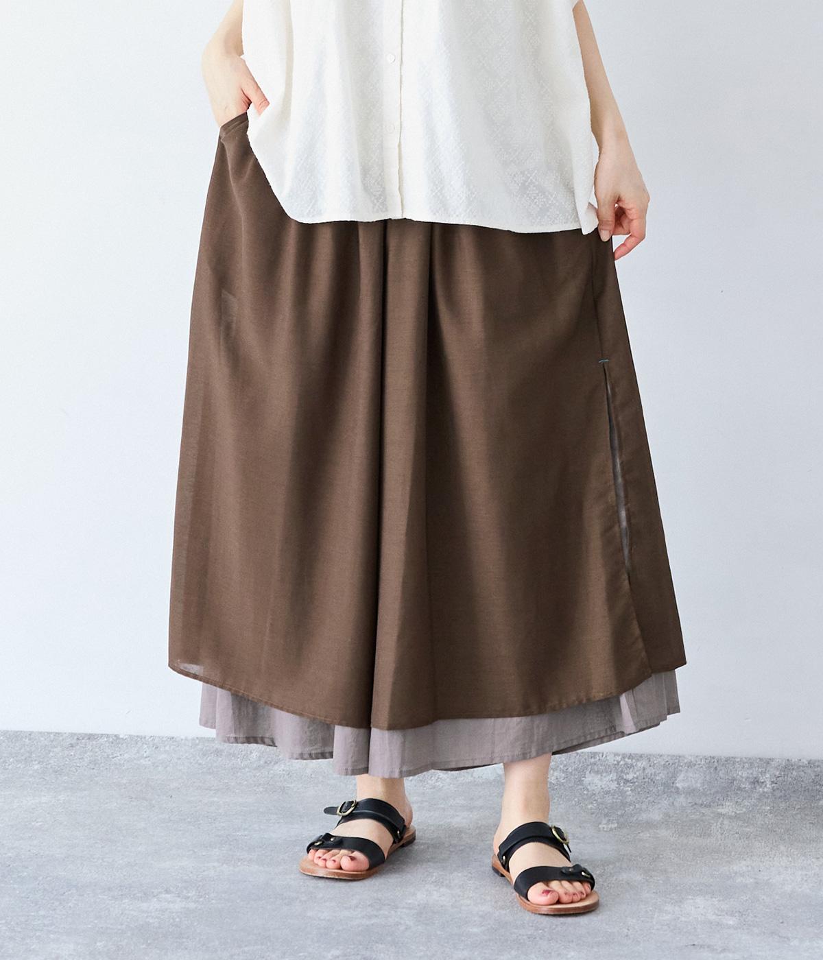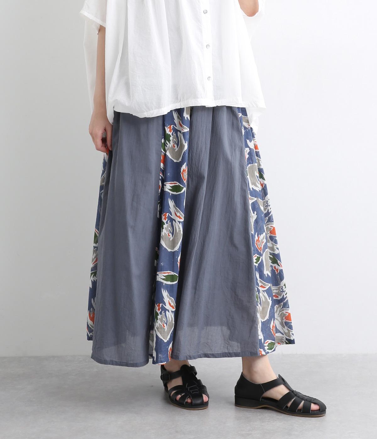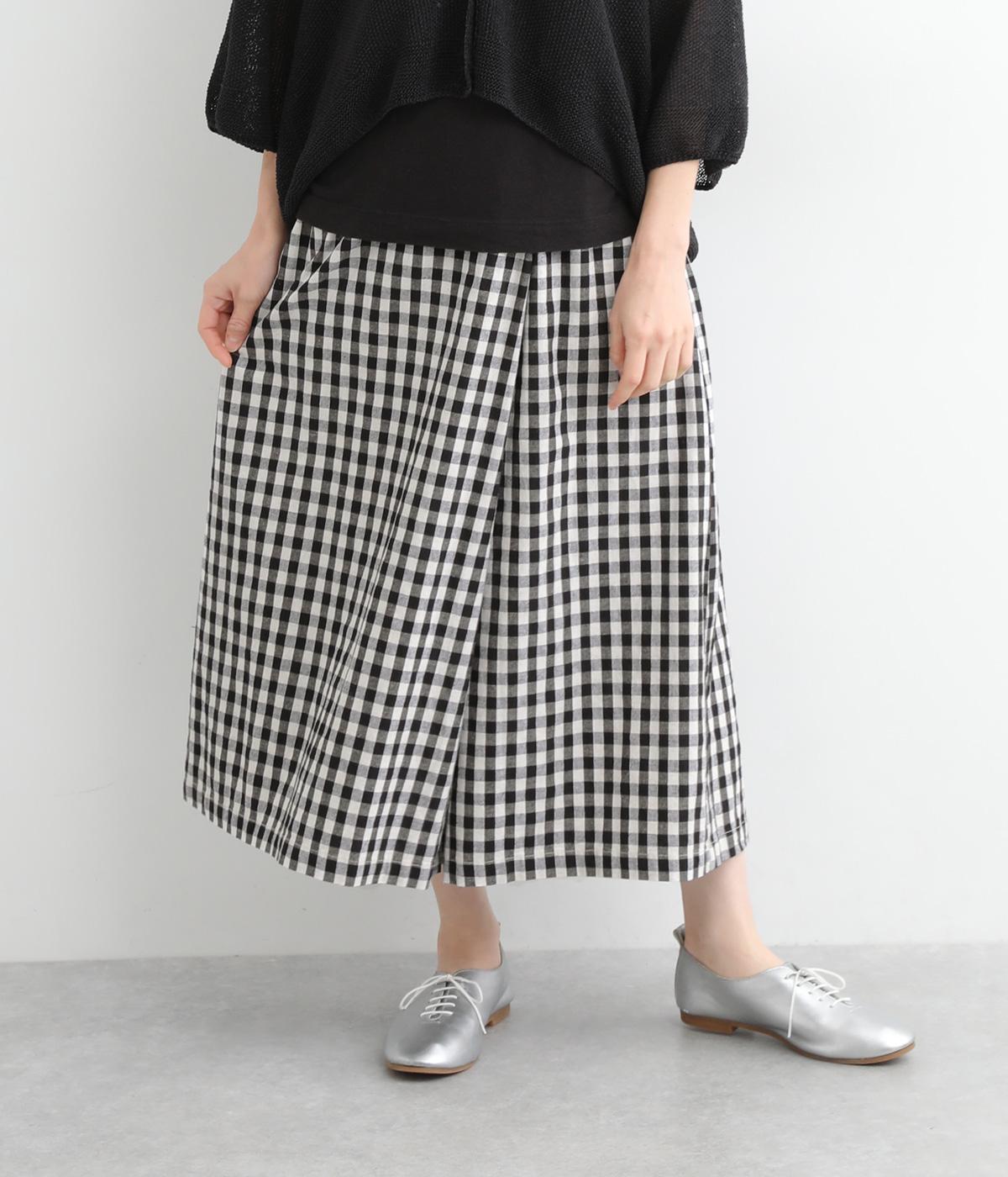 リネンコットンデニム裾ギャザーパンツインディゴ