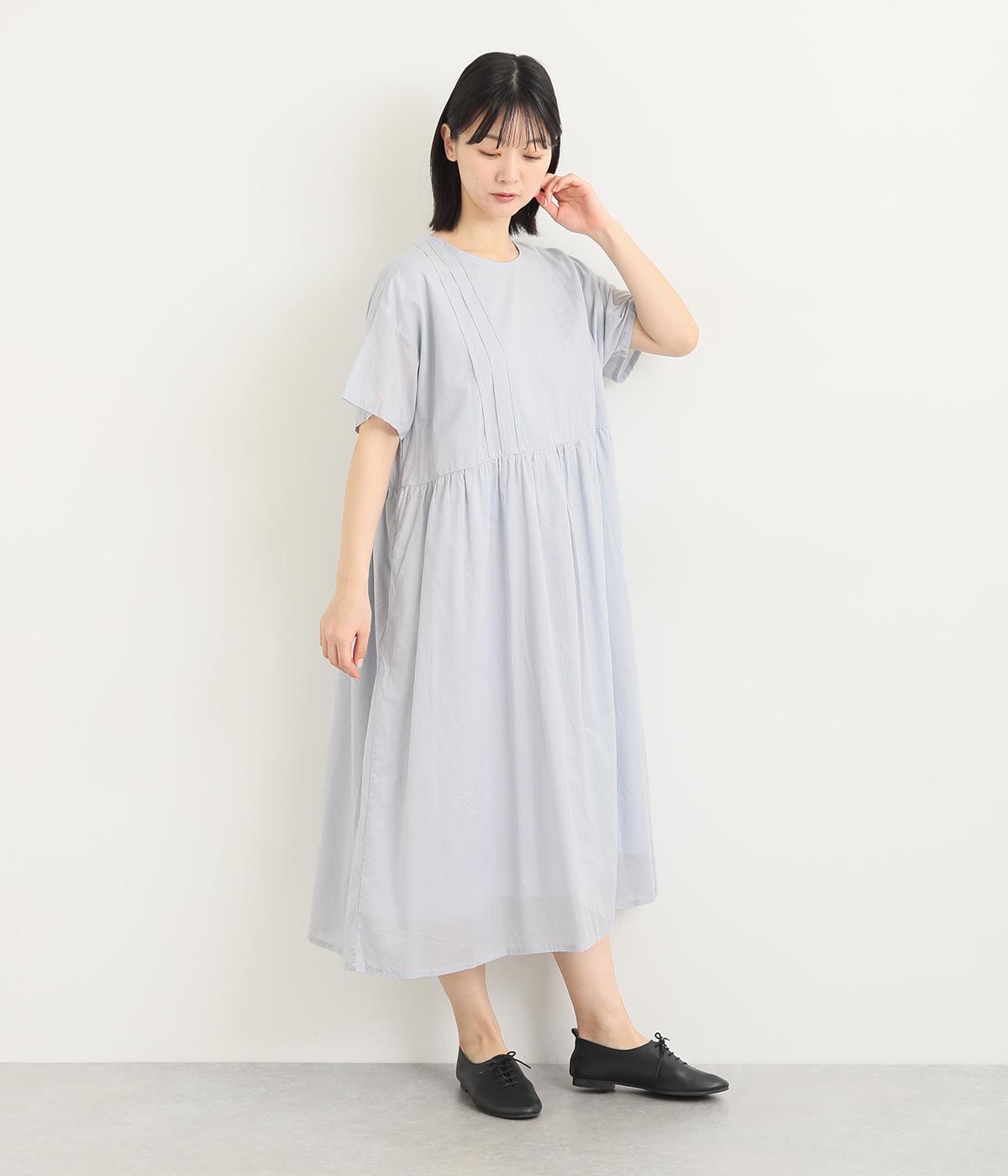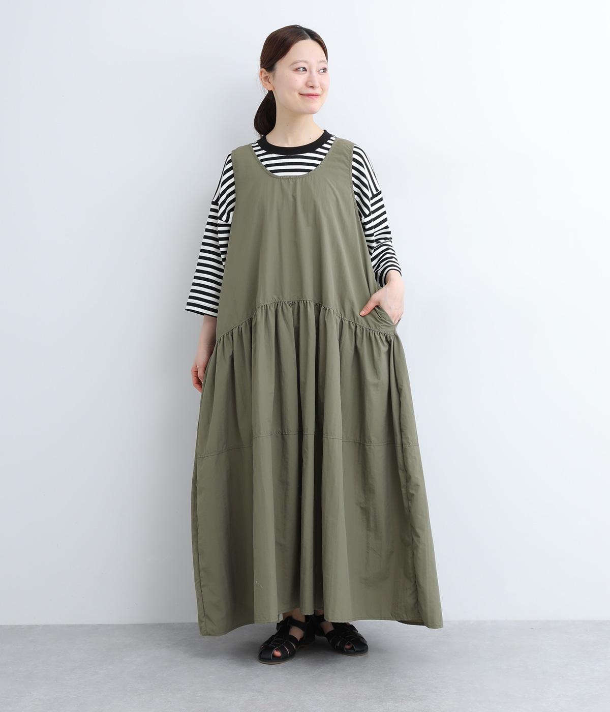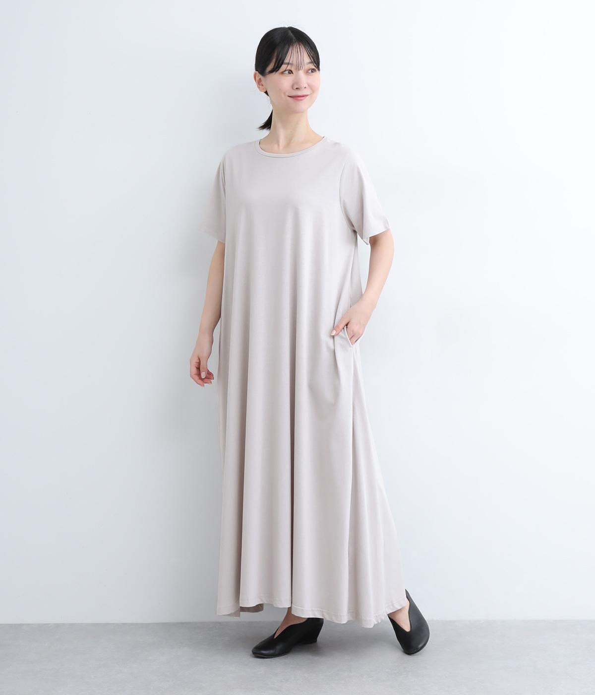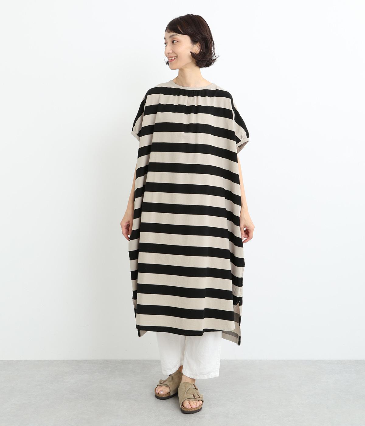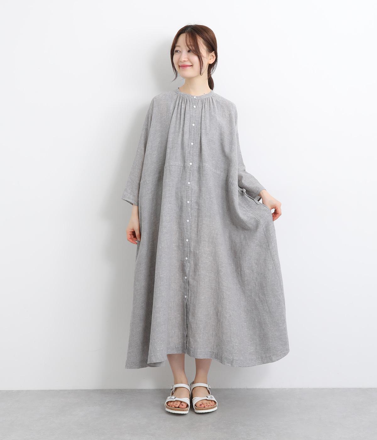 ウールコットンワッシャー袖リブニットチュニックワンピースグレー