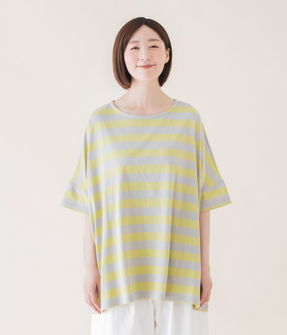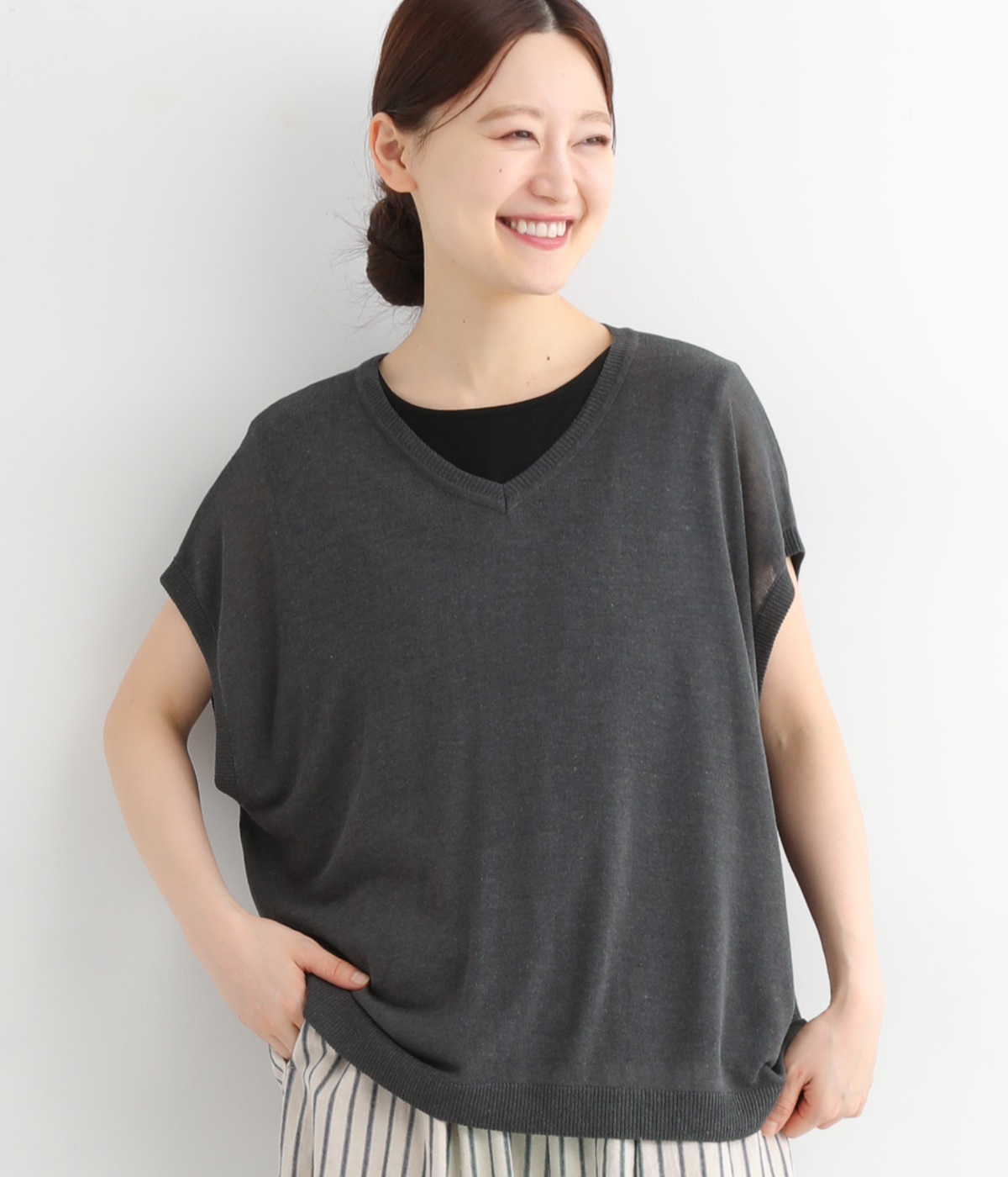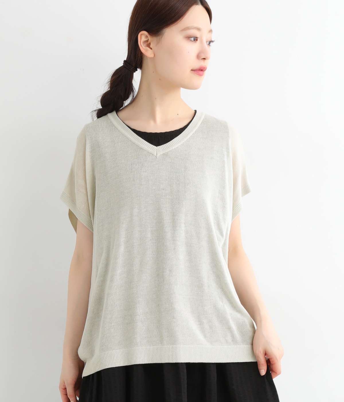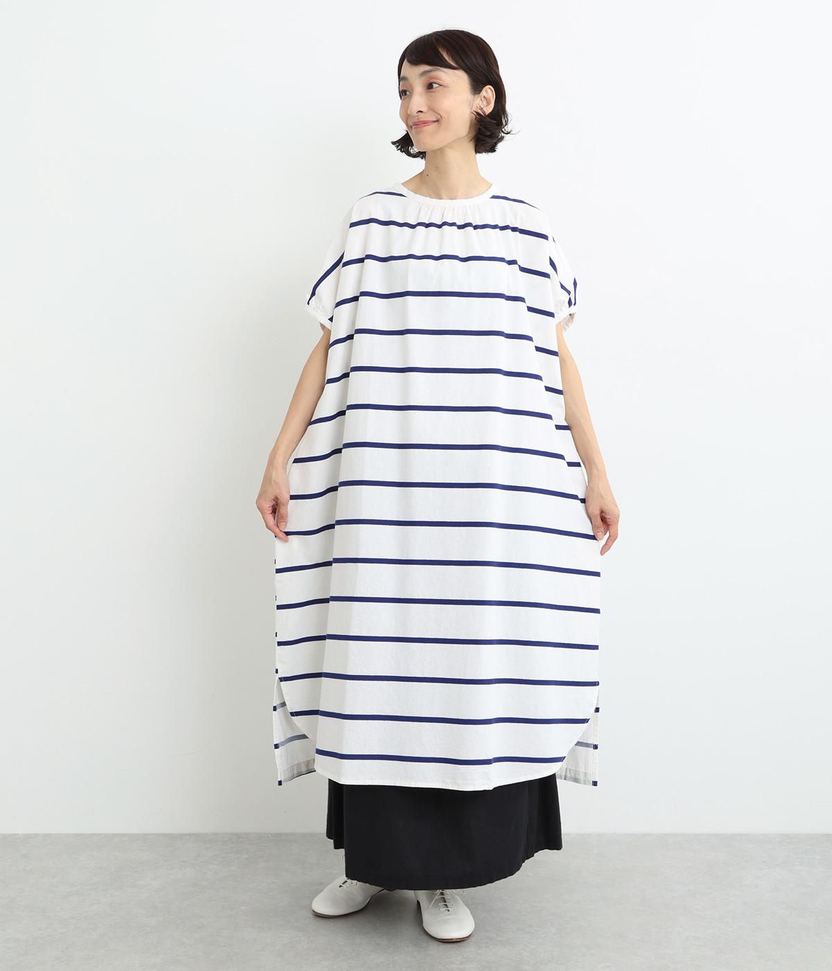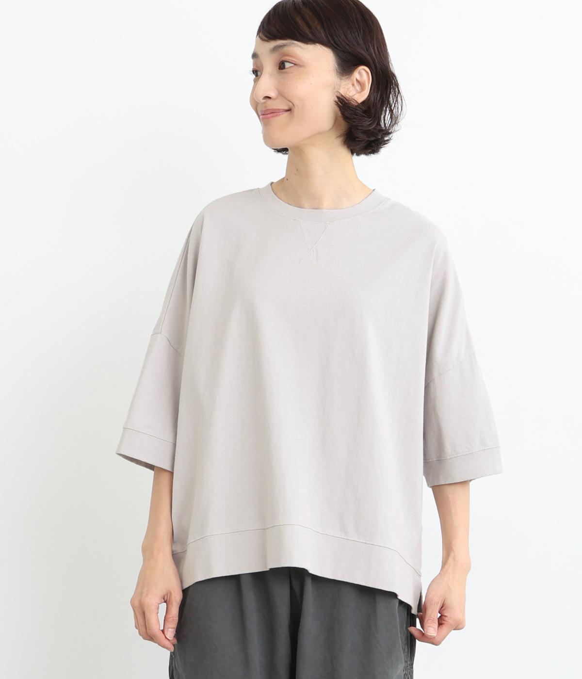 ウールコットンワッシャー袖リブニットチュニックワンピースグレー