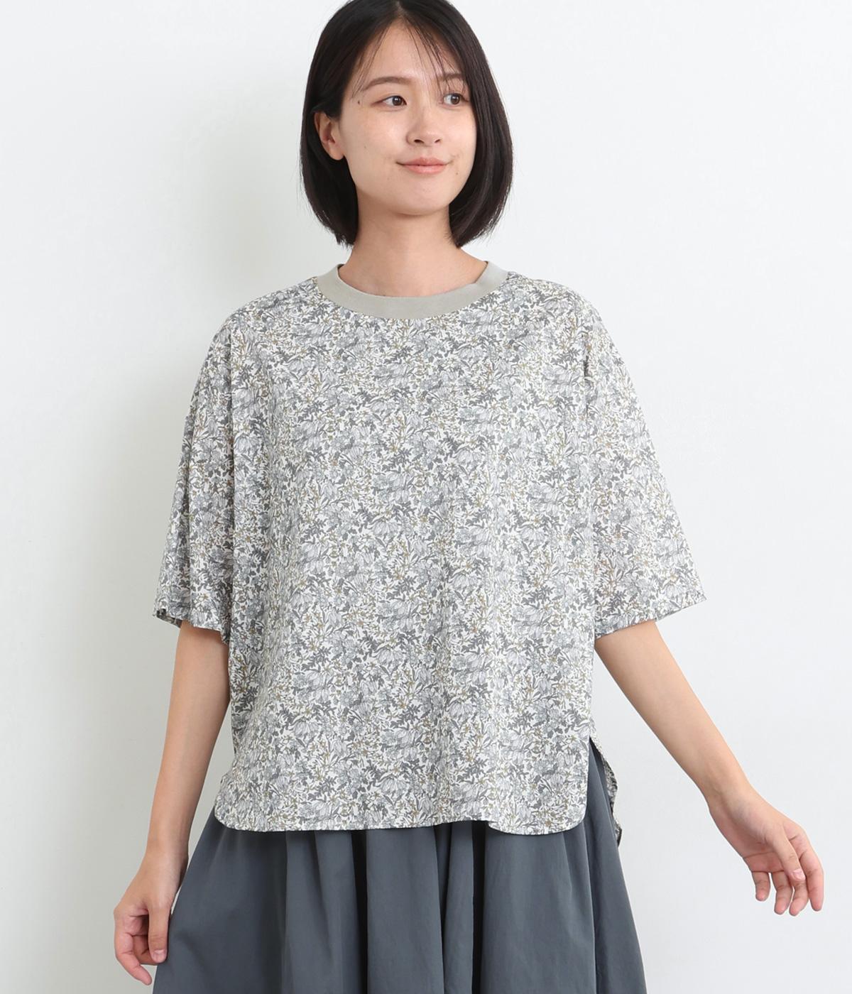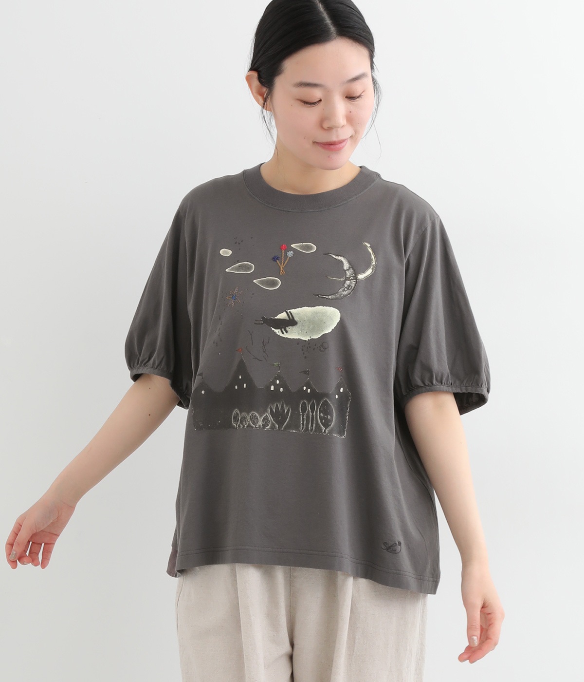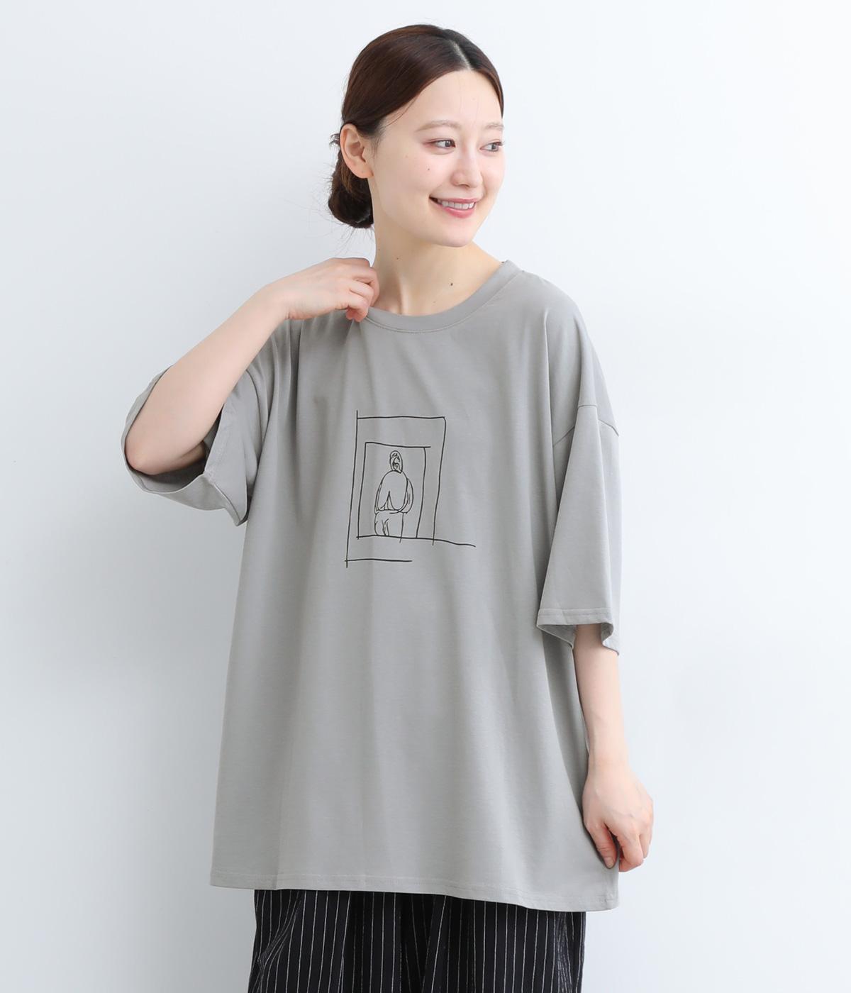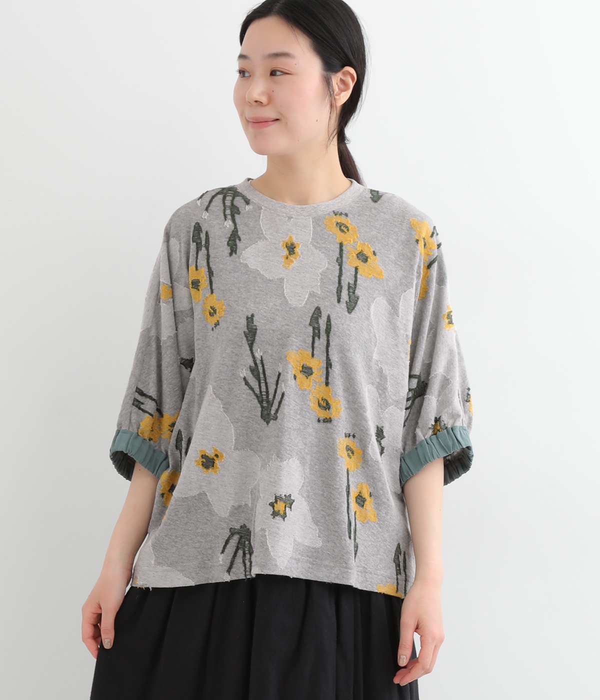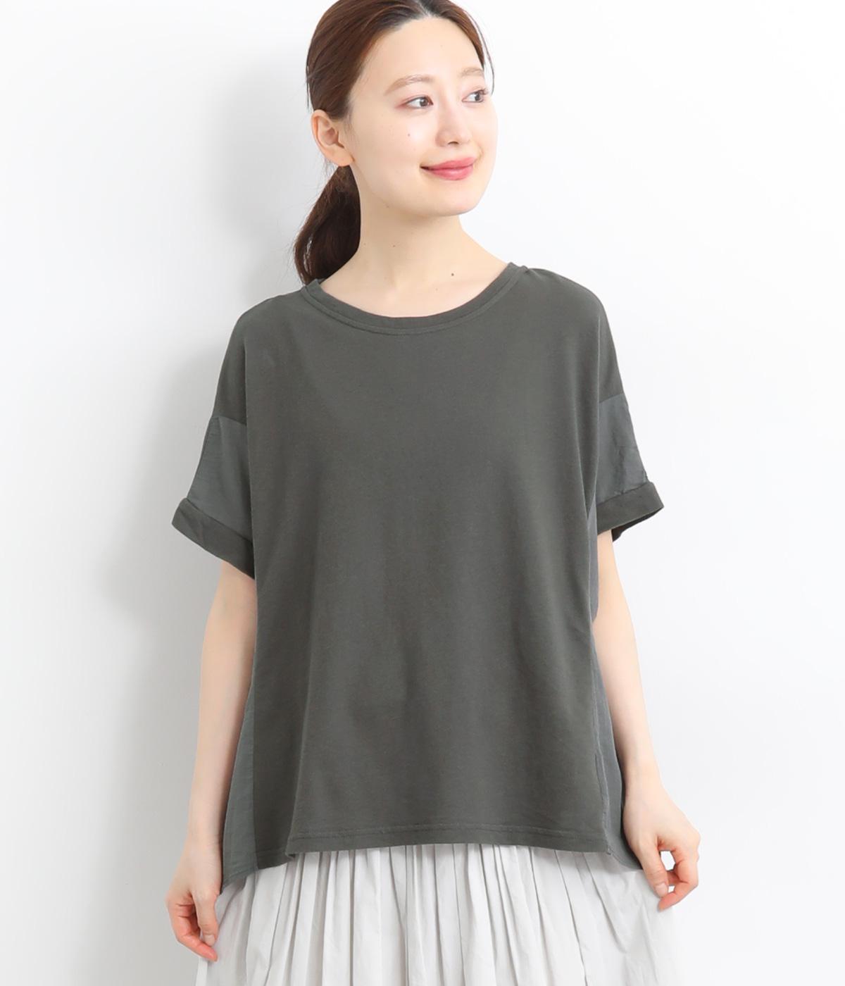 ウールコットンワッシャー袖リブニットチュニックワンピースグレー