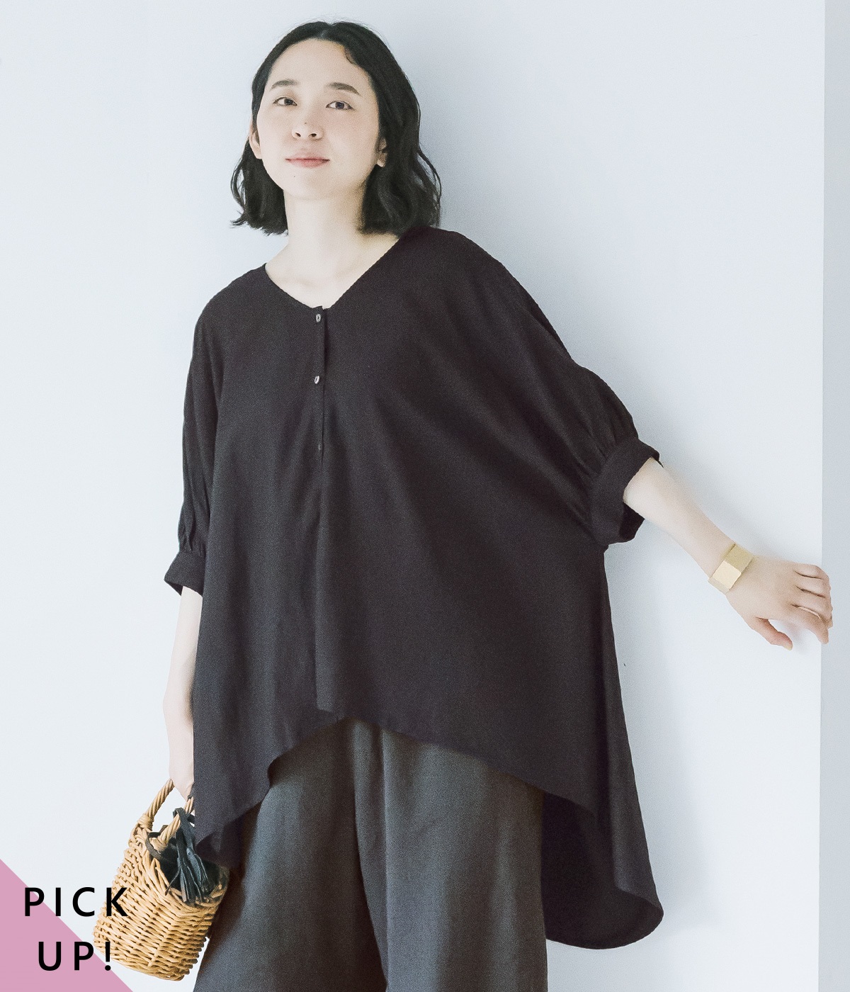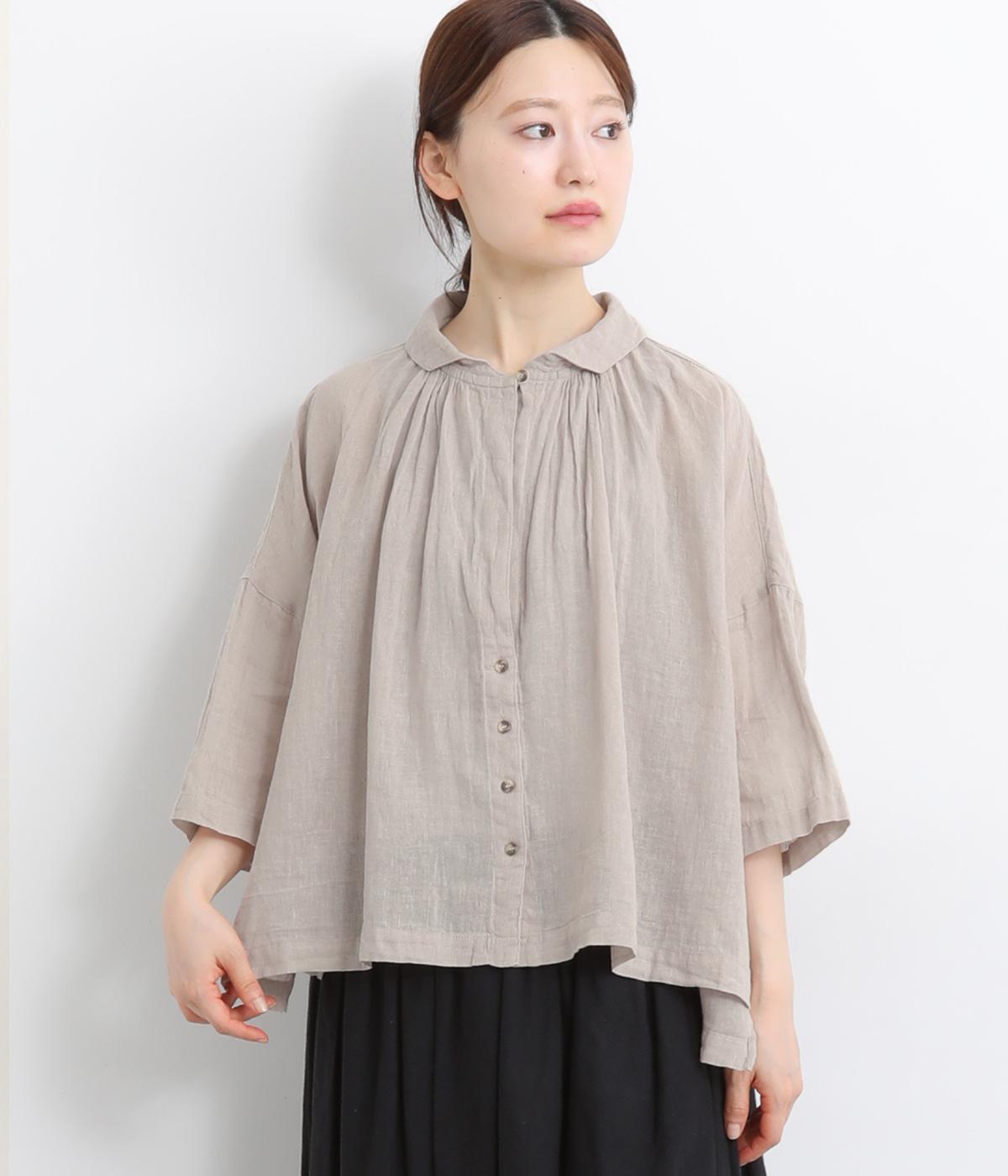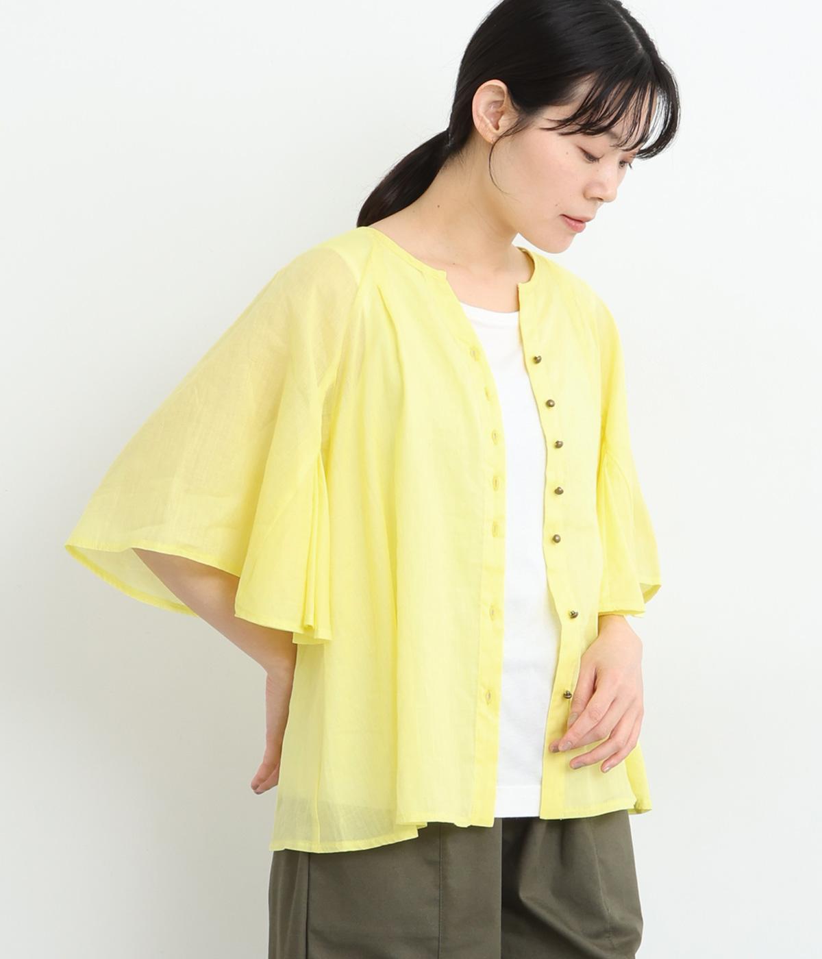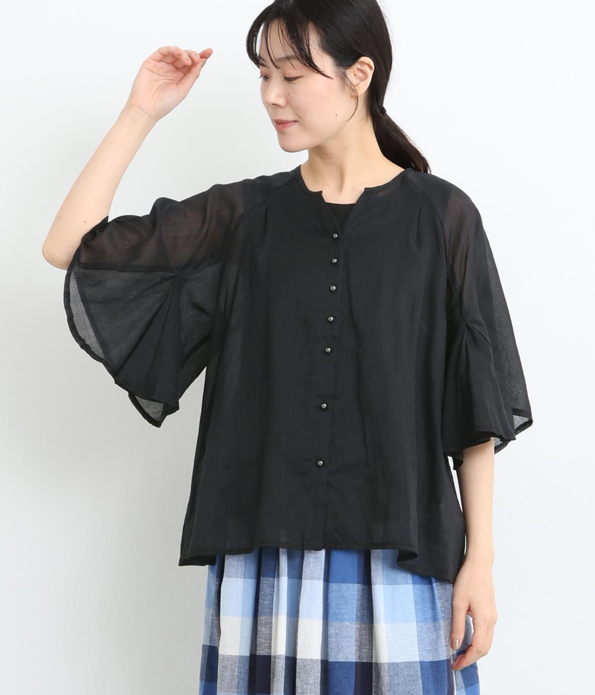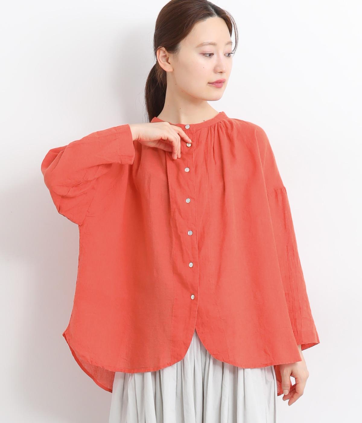 コットンリネンボリューム袖前あきブラウステラコッタ