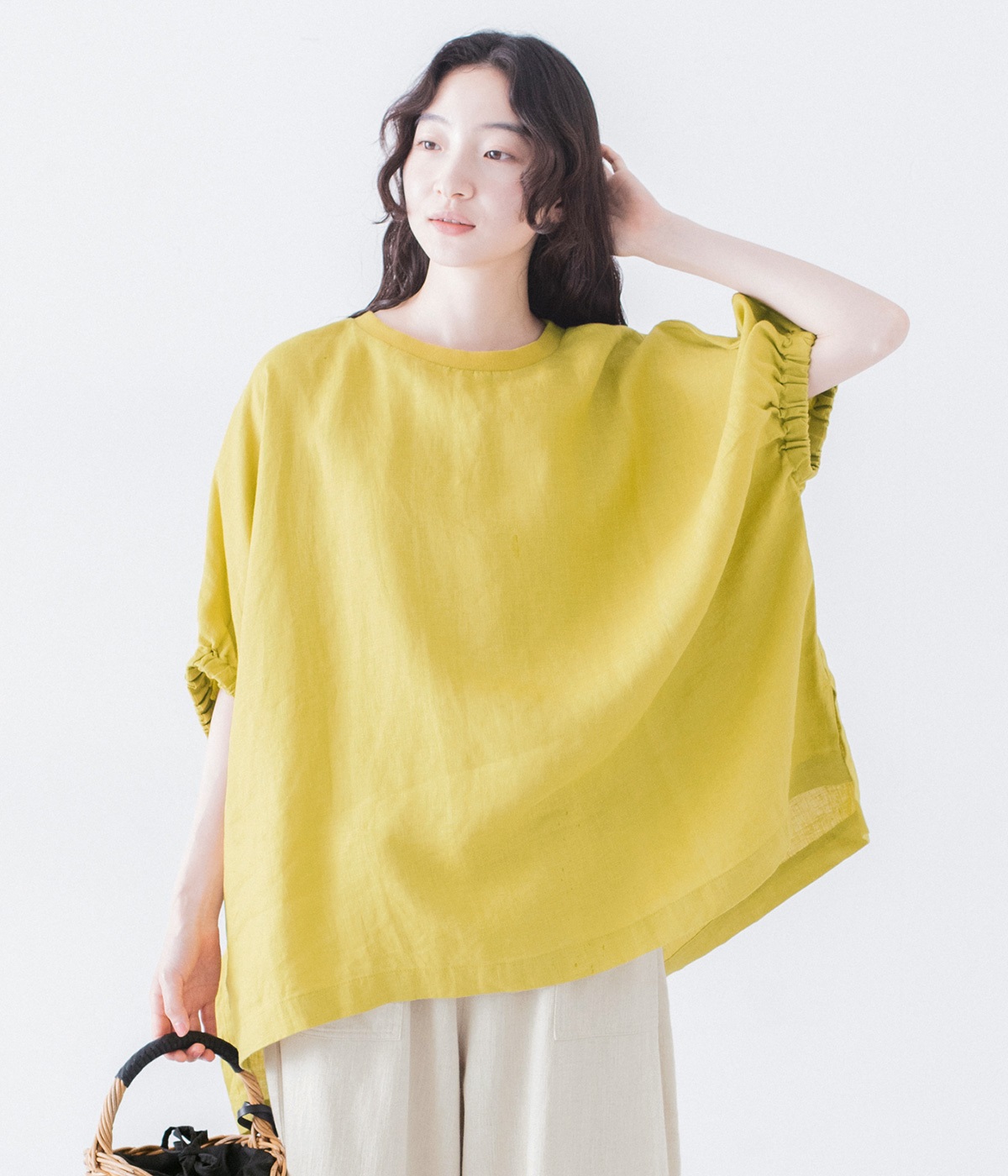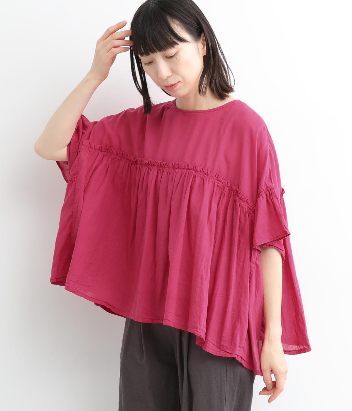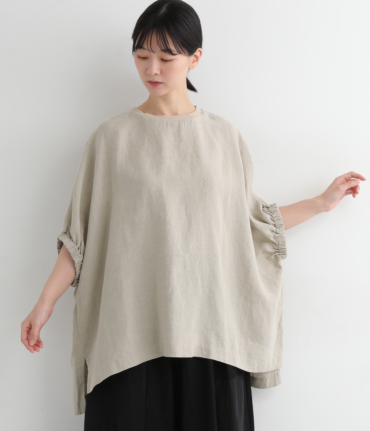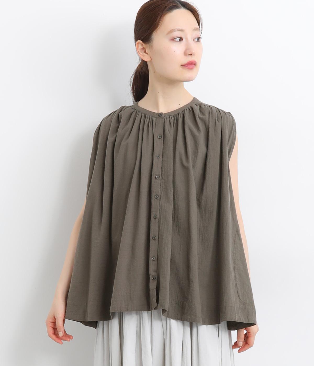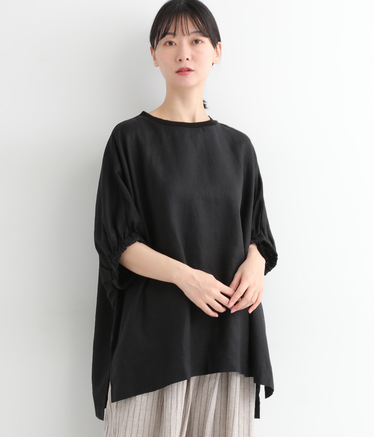 コットンリネンボリューム袖前あきブラウステラコッタ