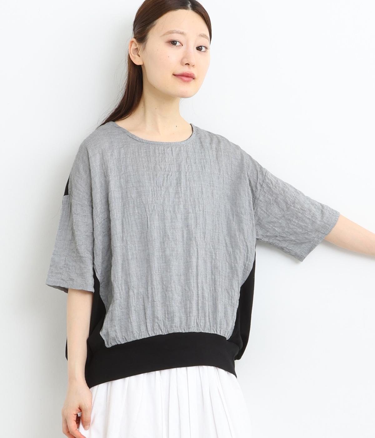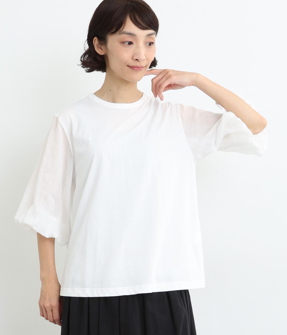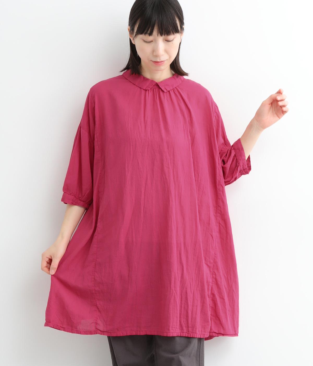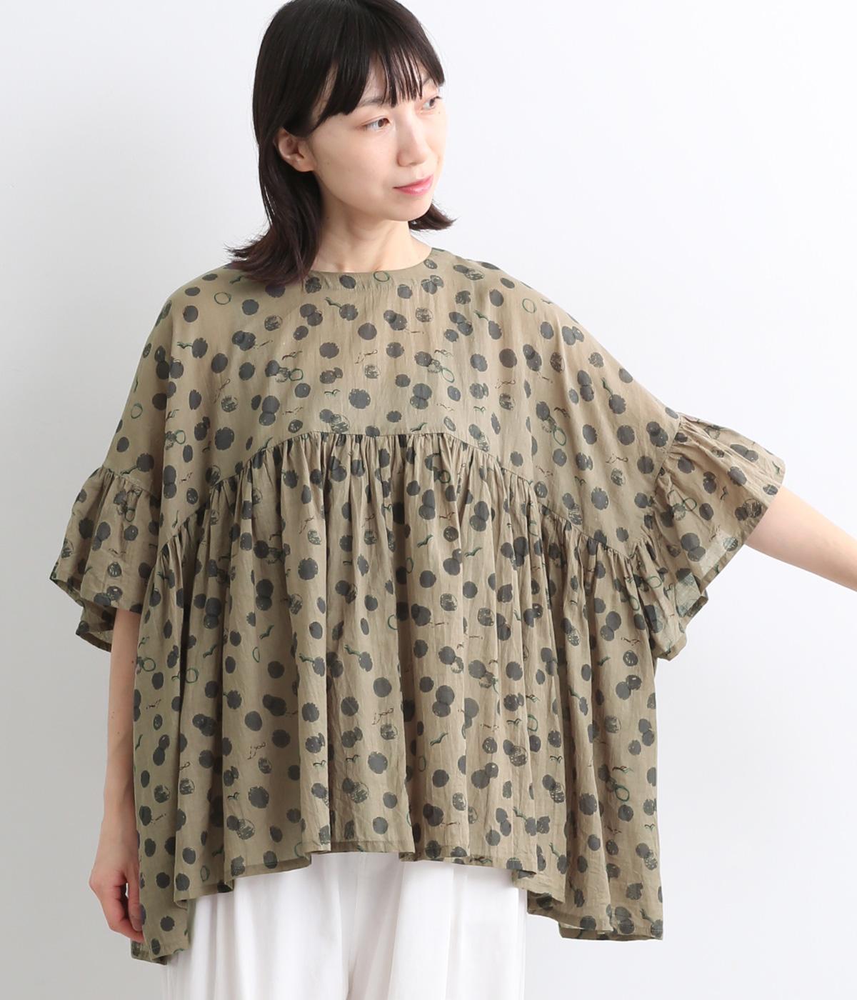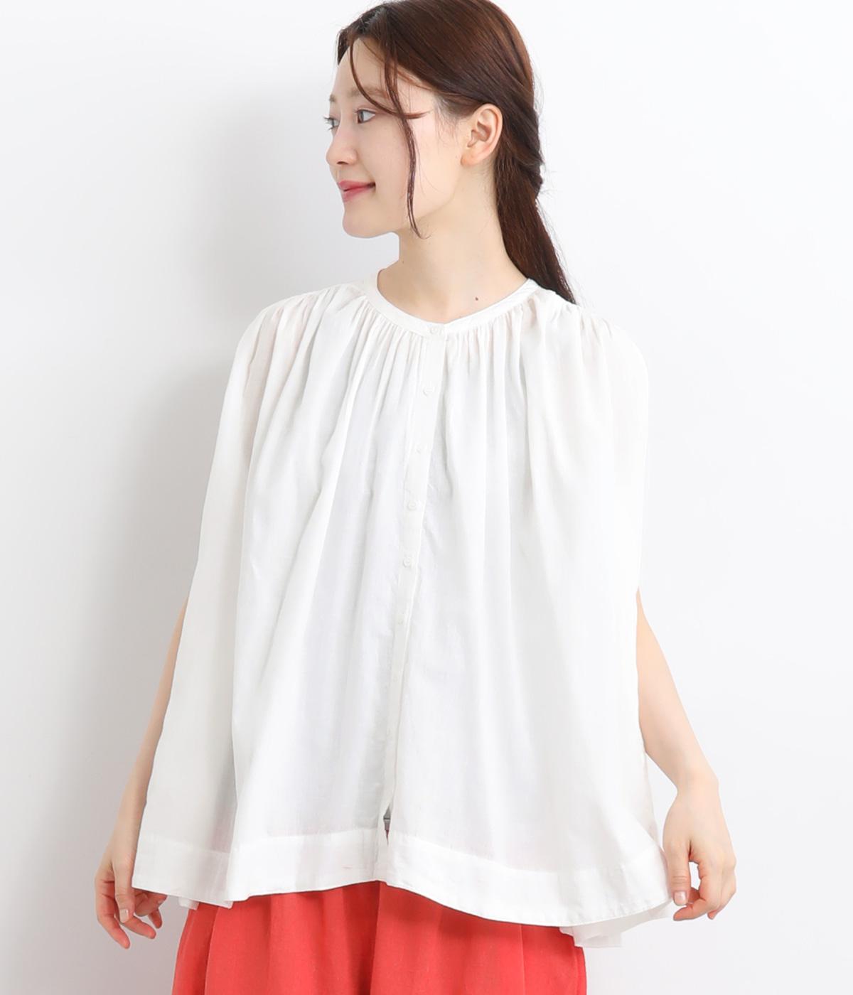 コットンリネンボリューム袖前あきブラウステラコッタ