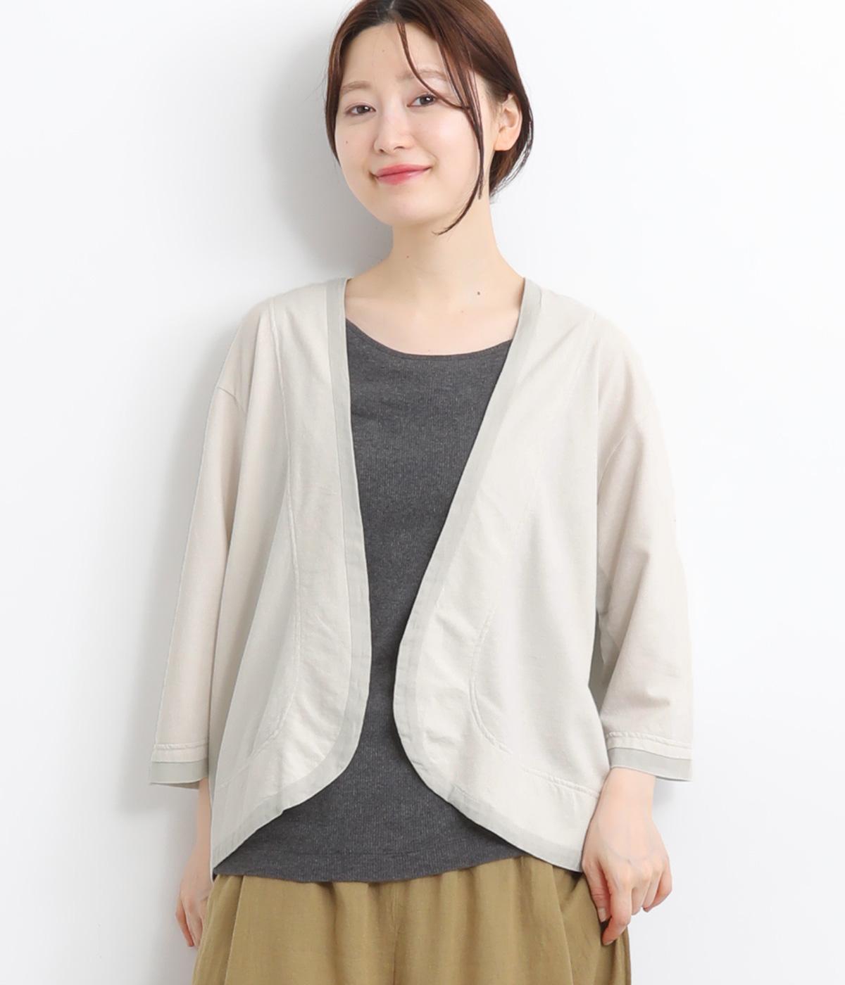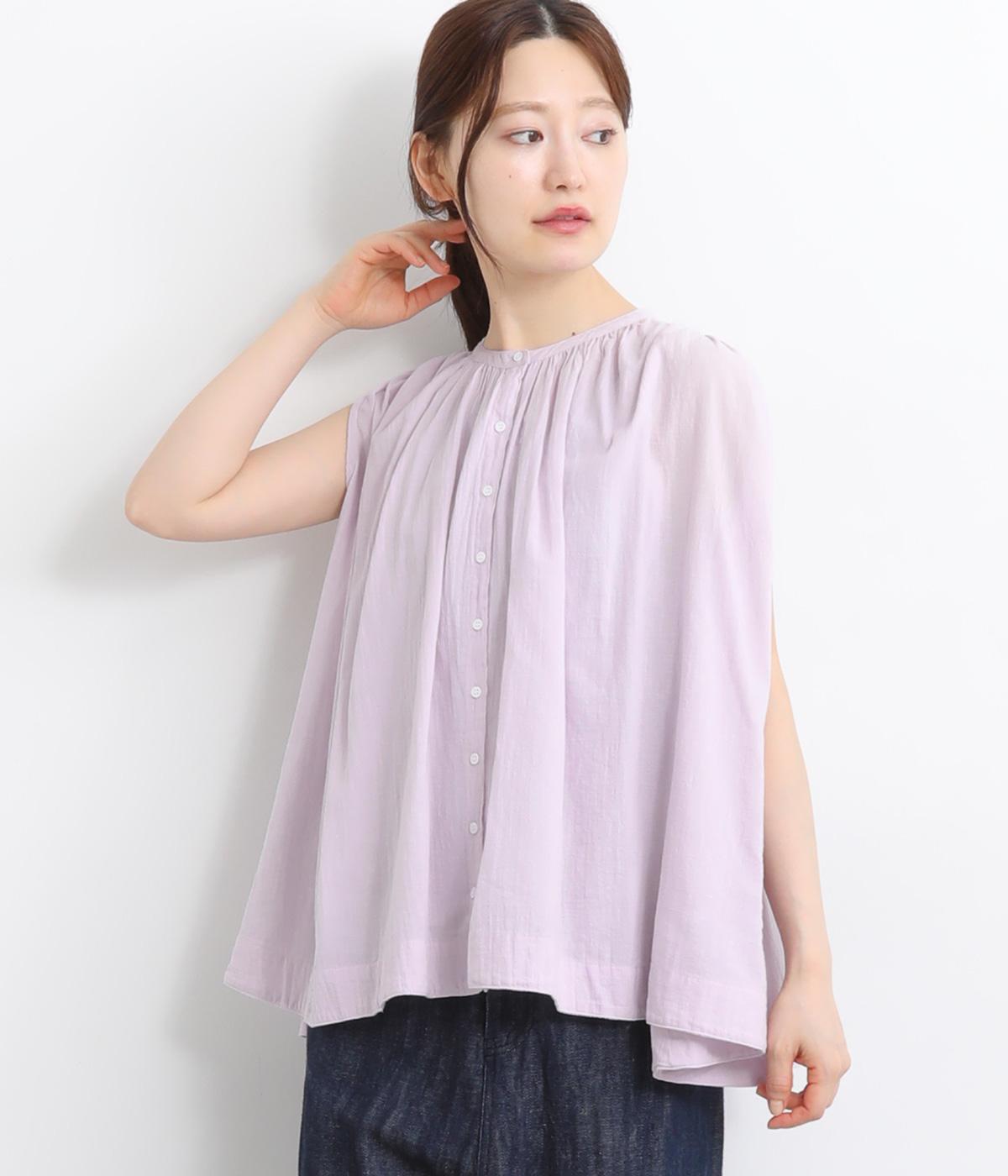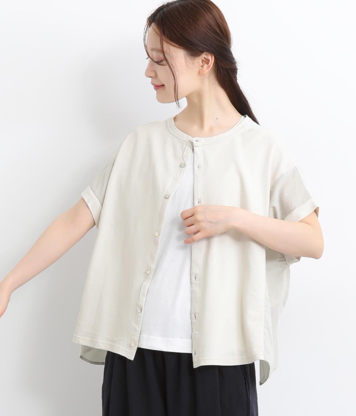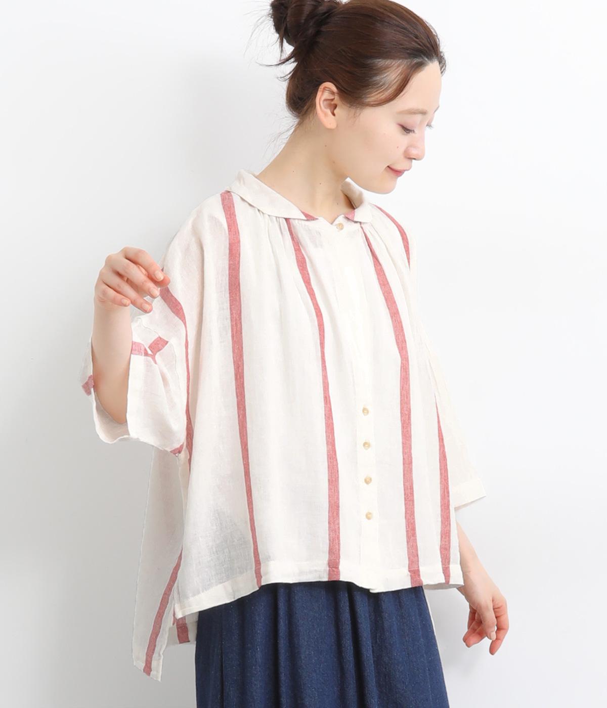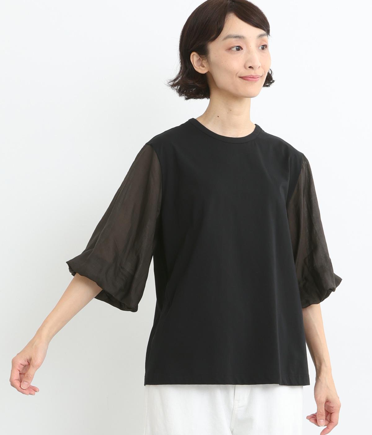 コットンリネンボリューム袖前あきブラウステラコッタ