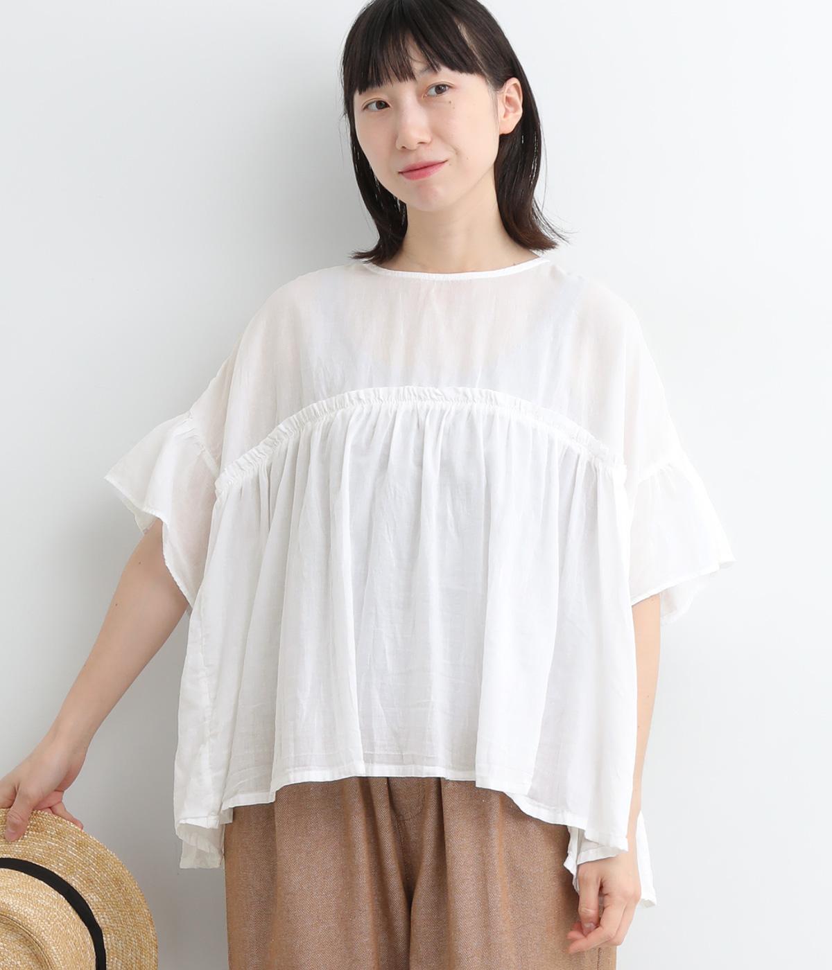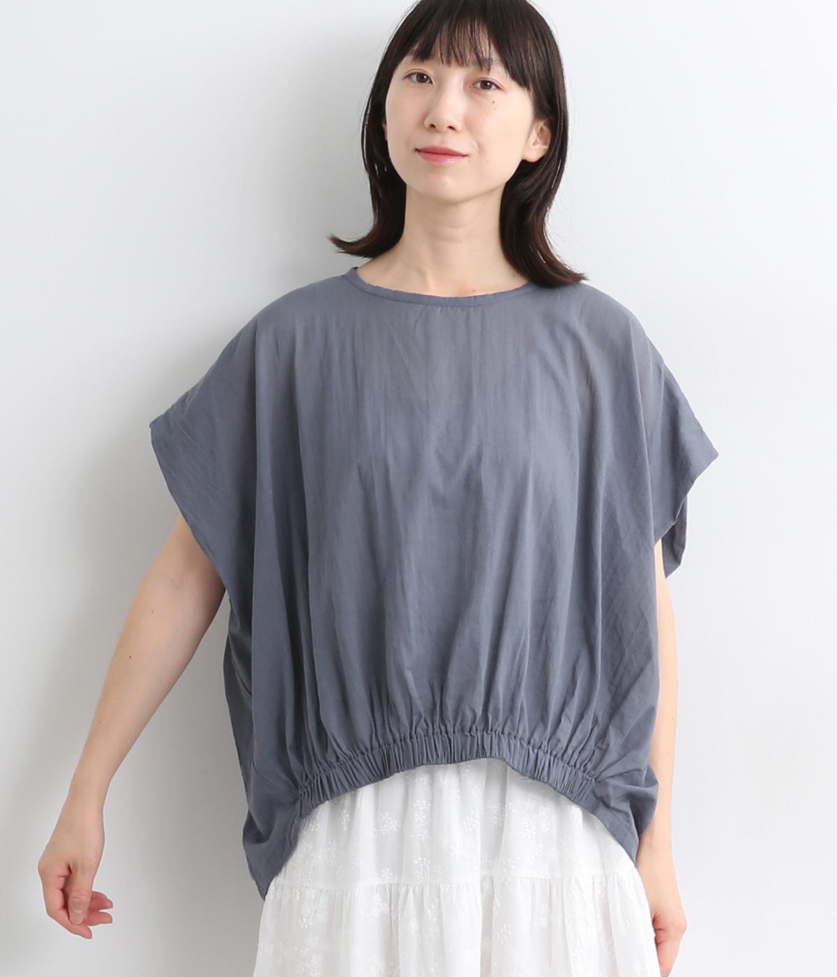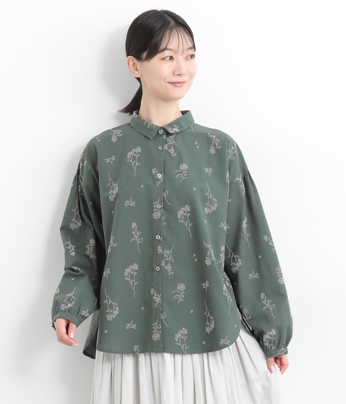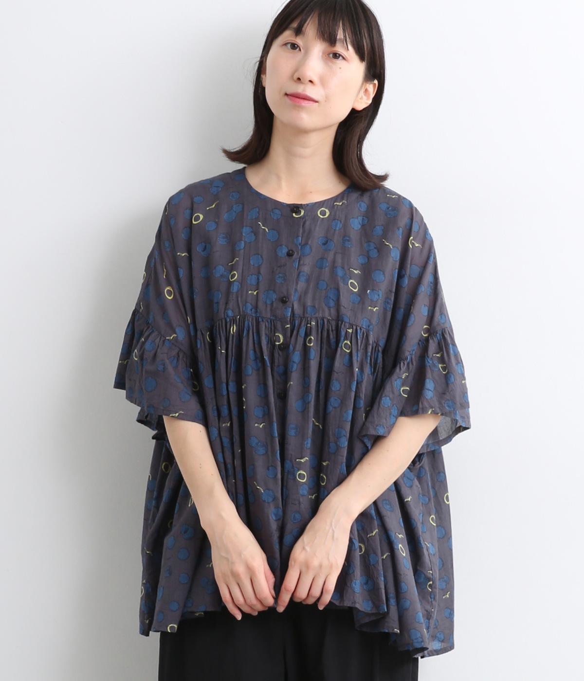コットンリネンボリューム袖前あきブラウステラコッタ