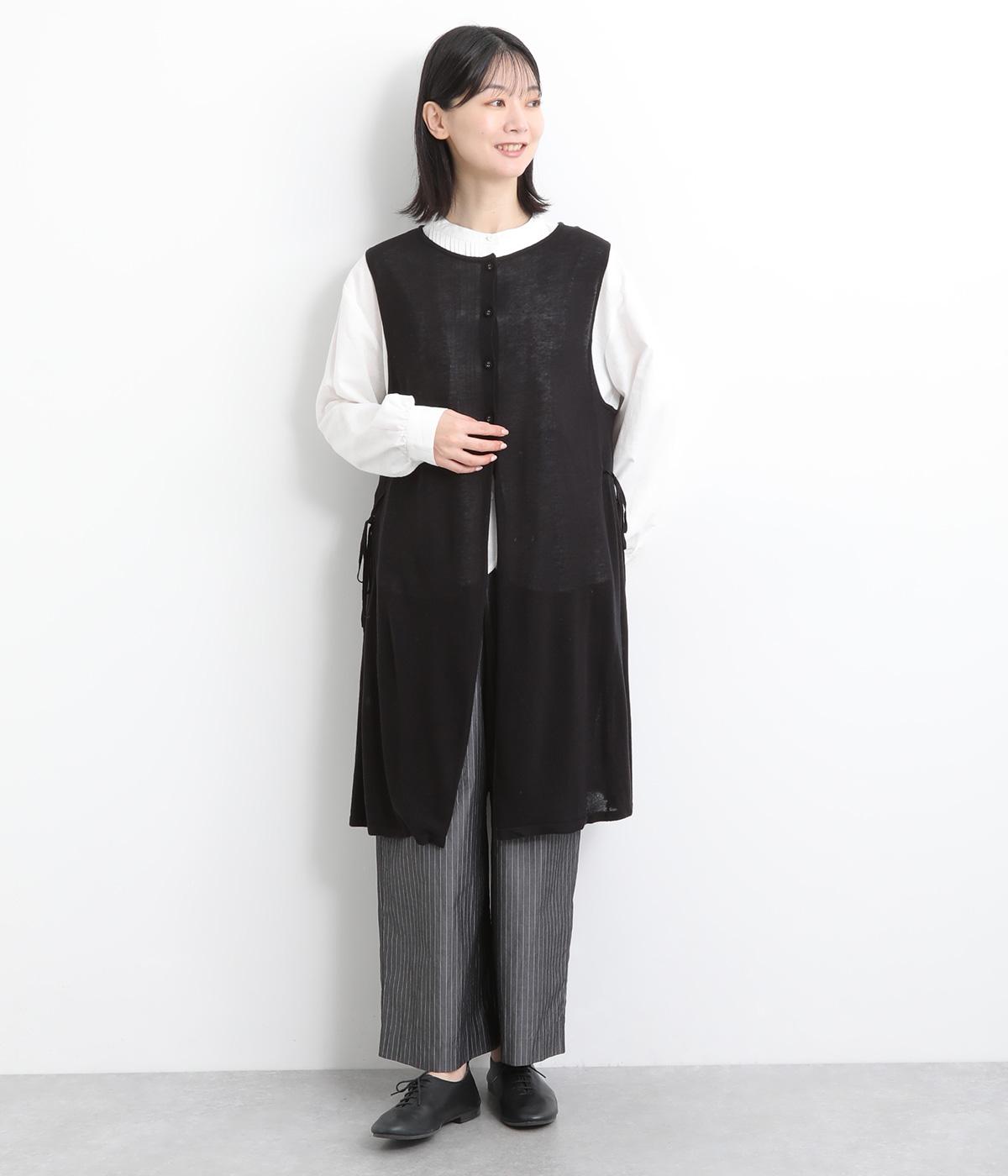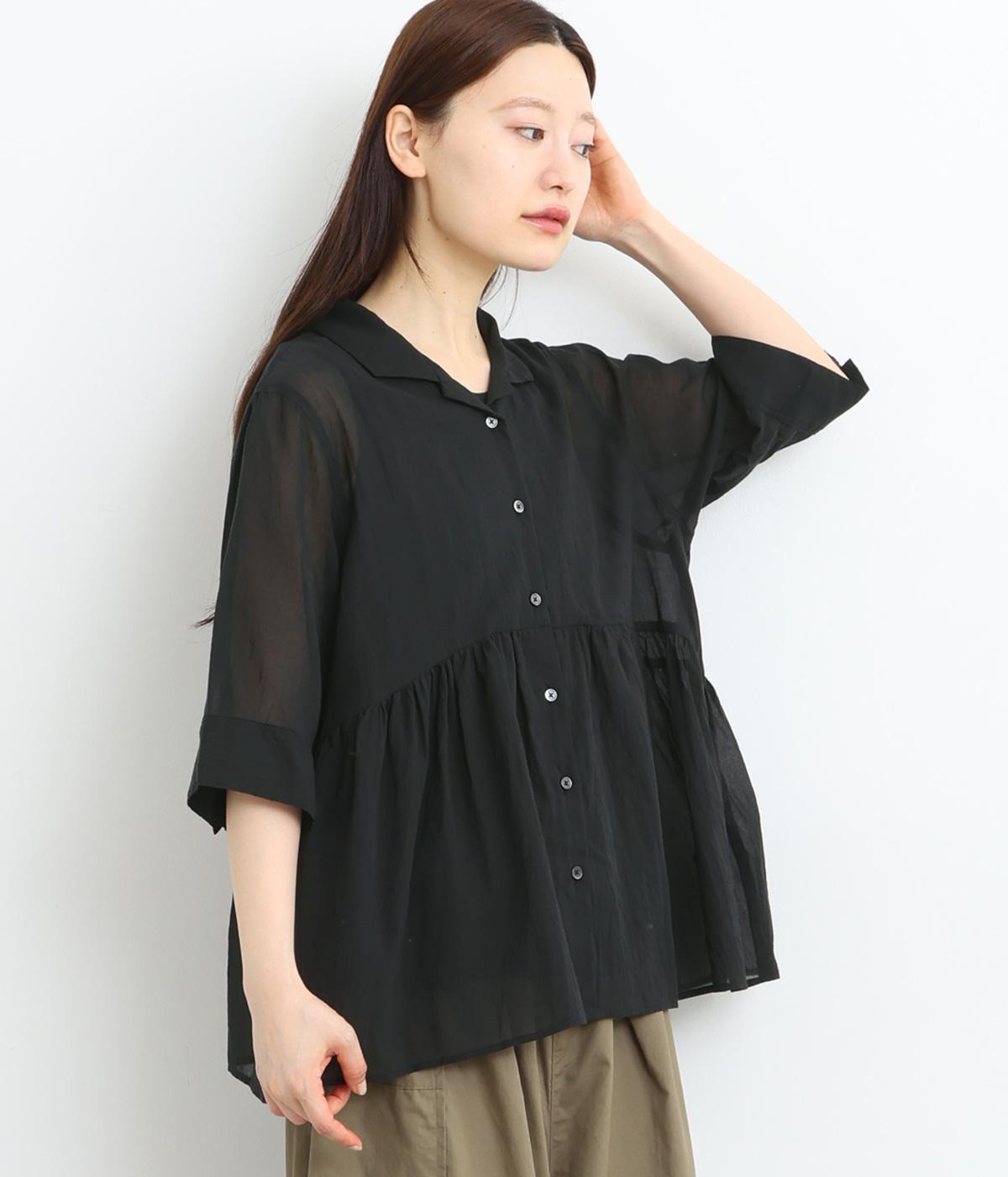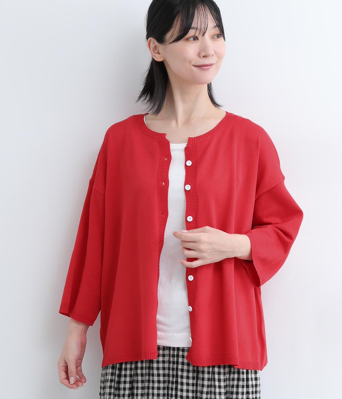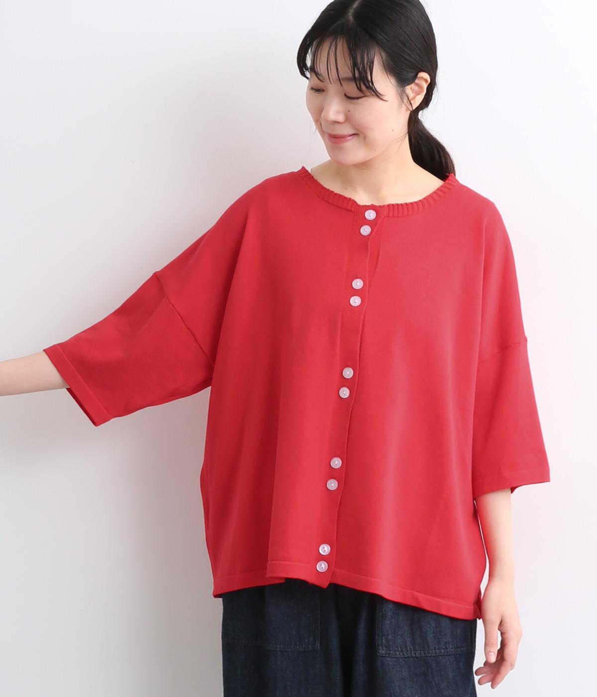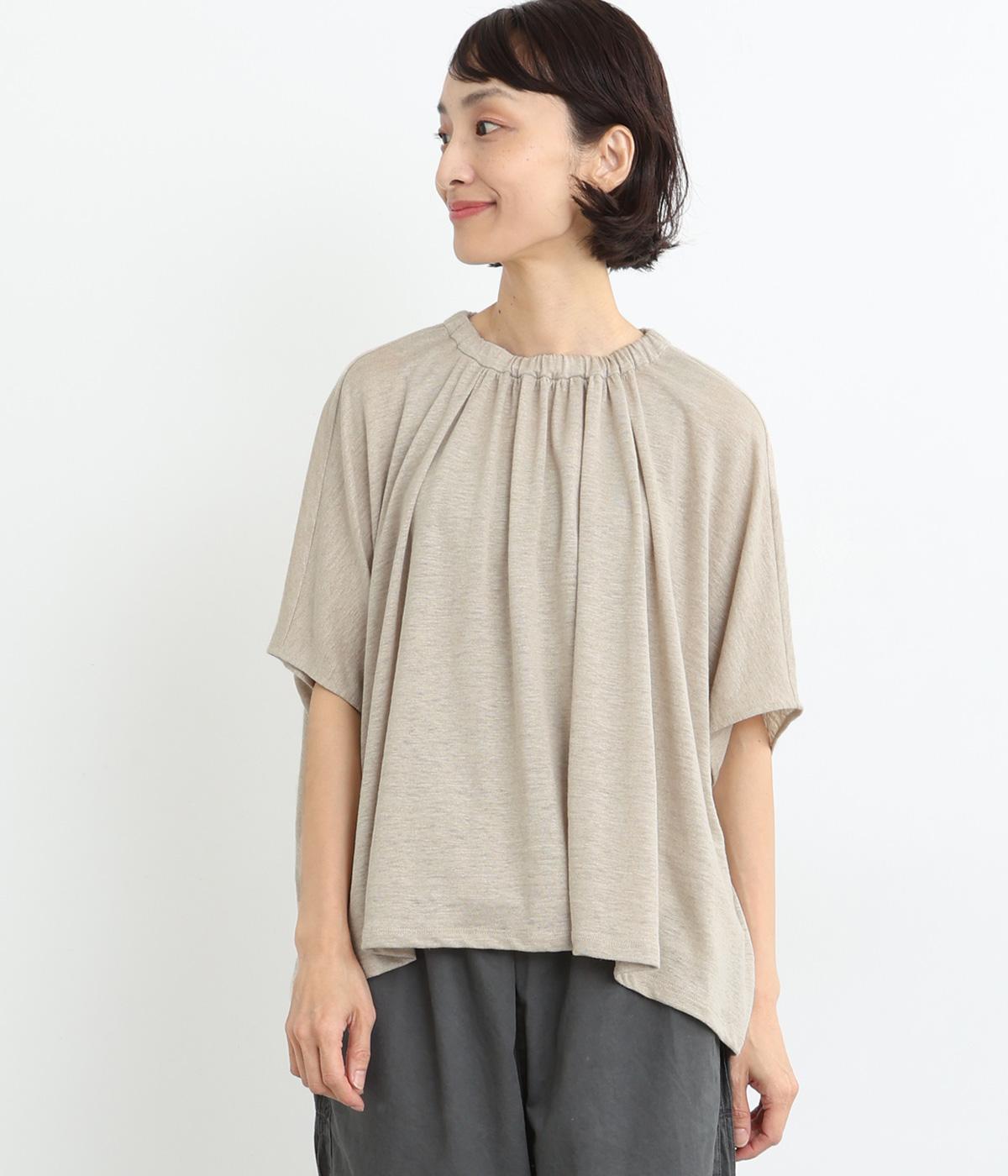 コットンリネンボリューム袖前あきブラウステラコッタ