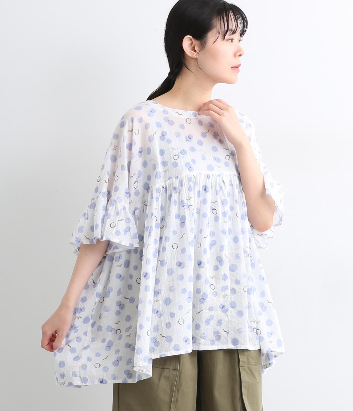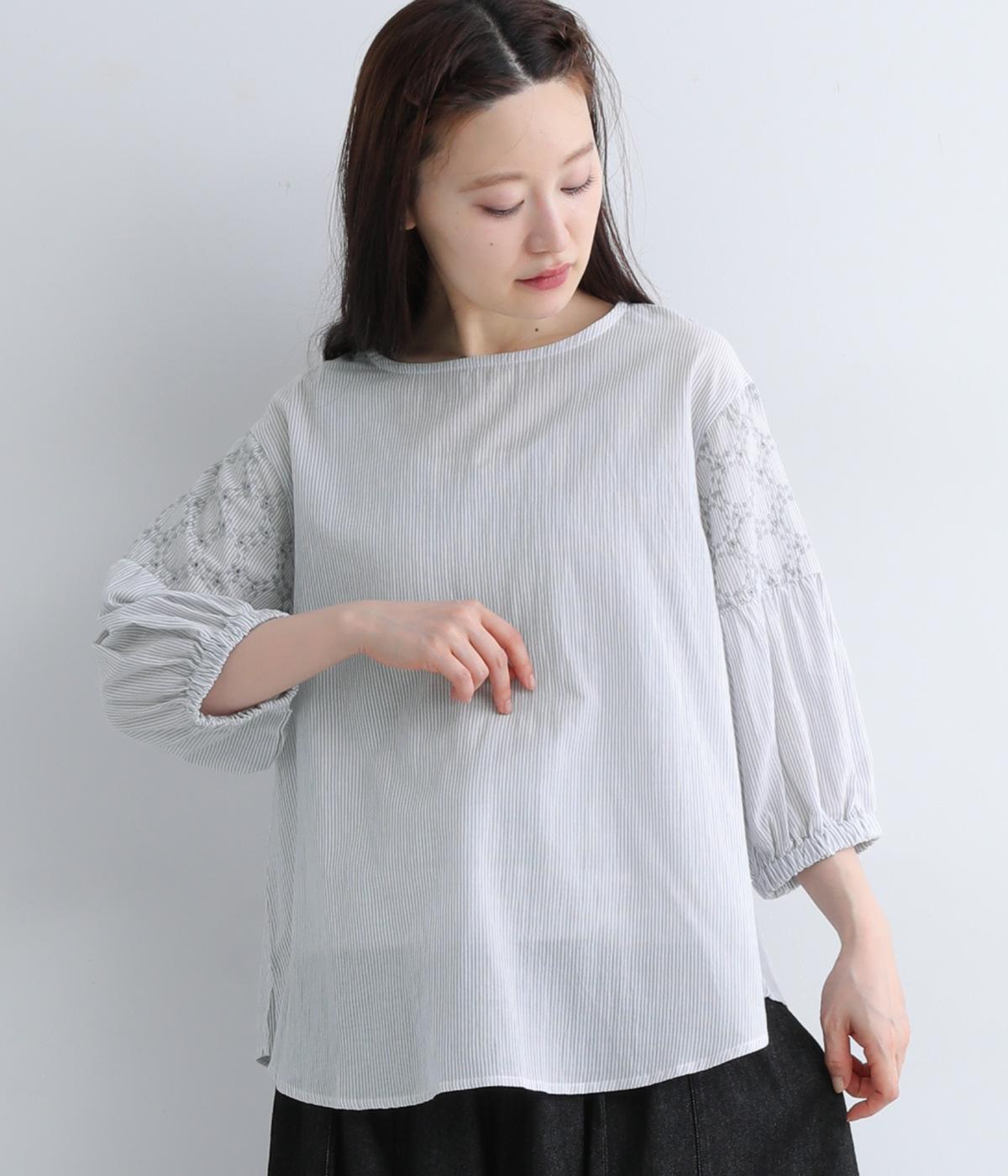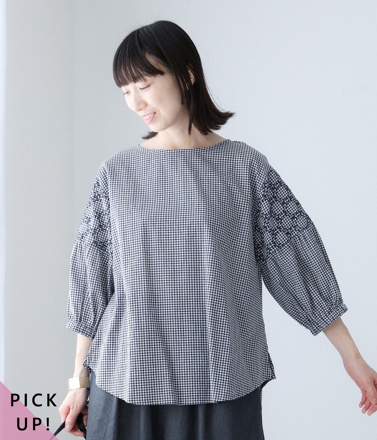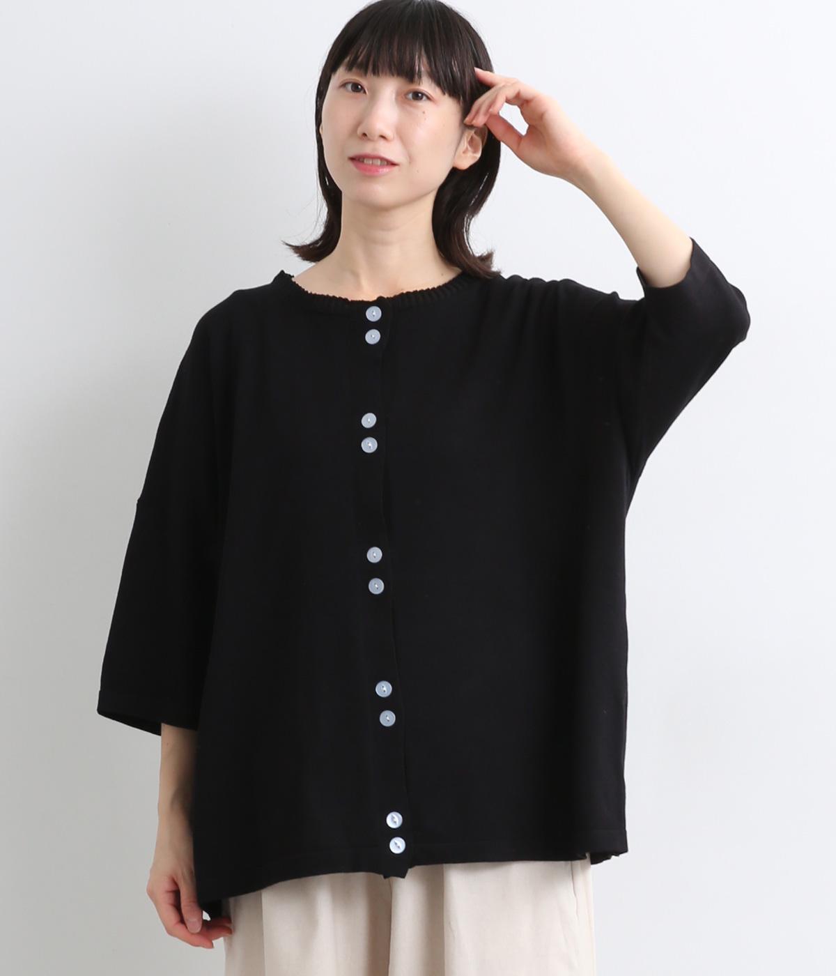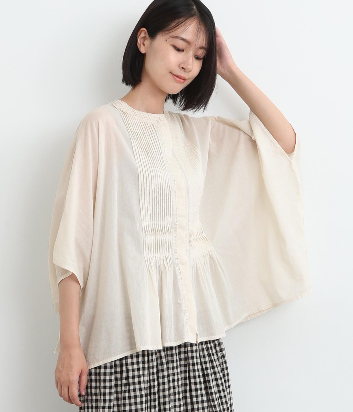 コットンリネンボリューム袖前あきブラウステラコッタ