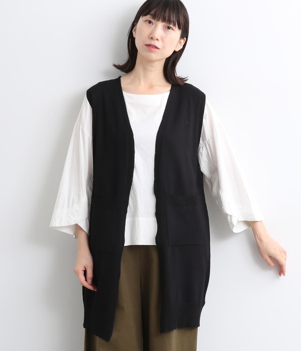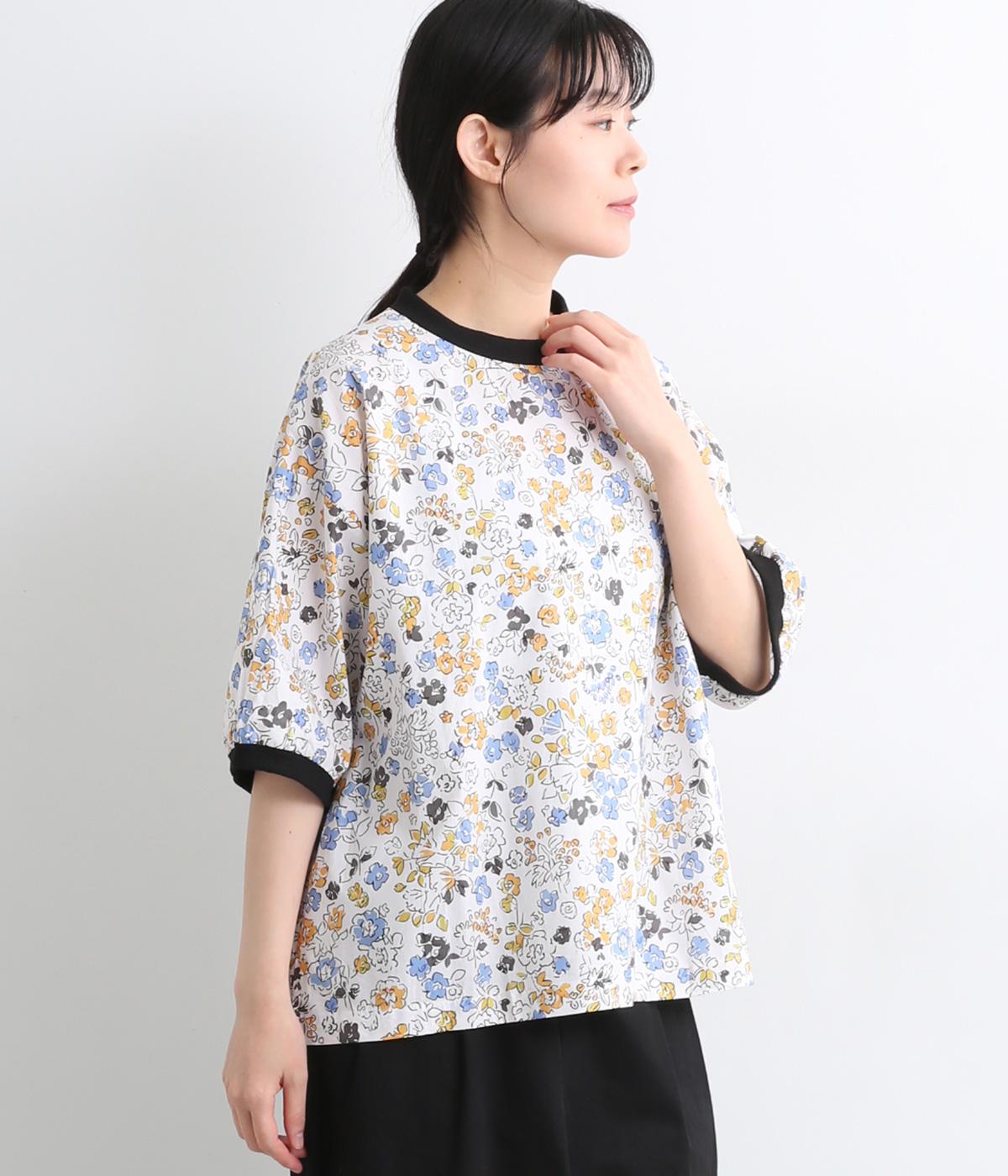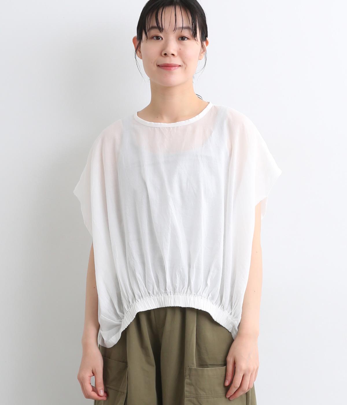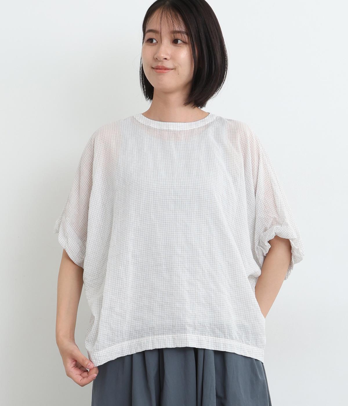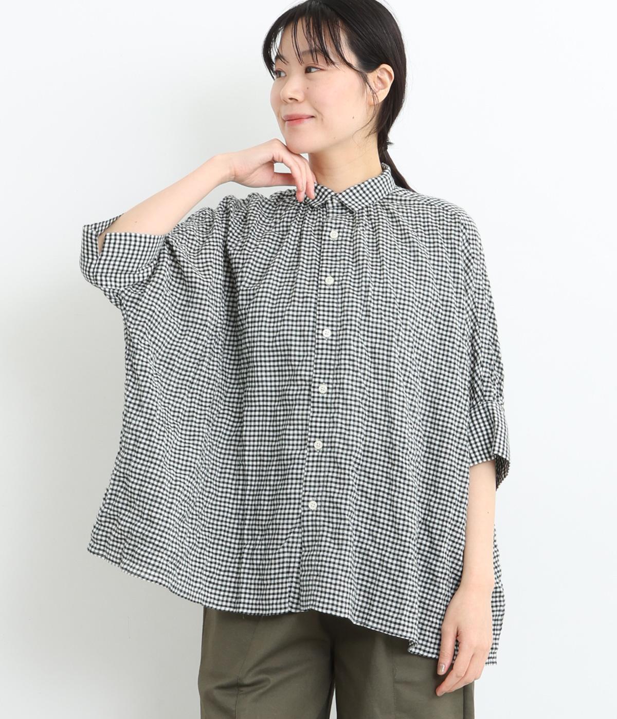 コットンリネンボリューム袖前あきブラウステラコッタ