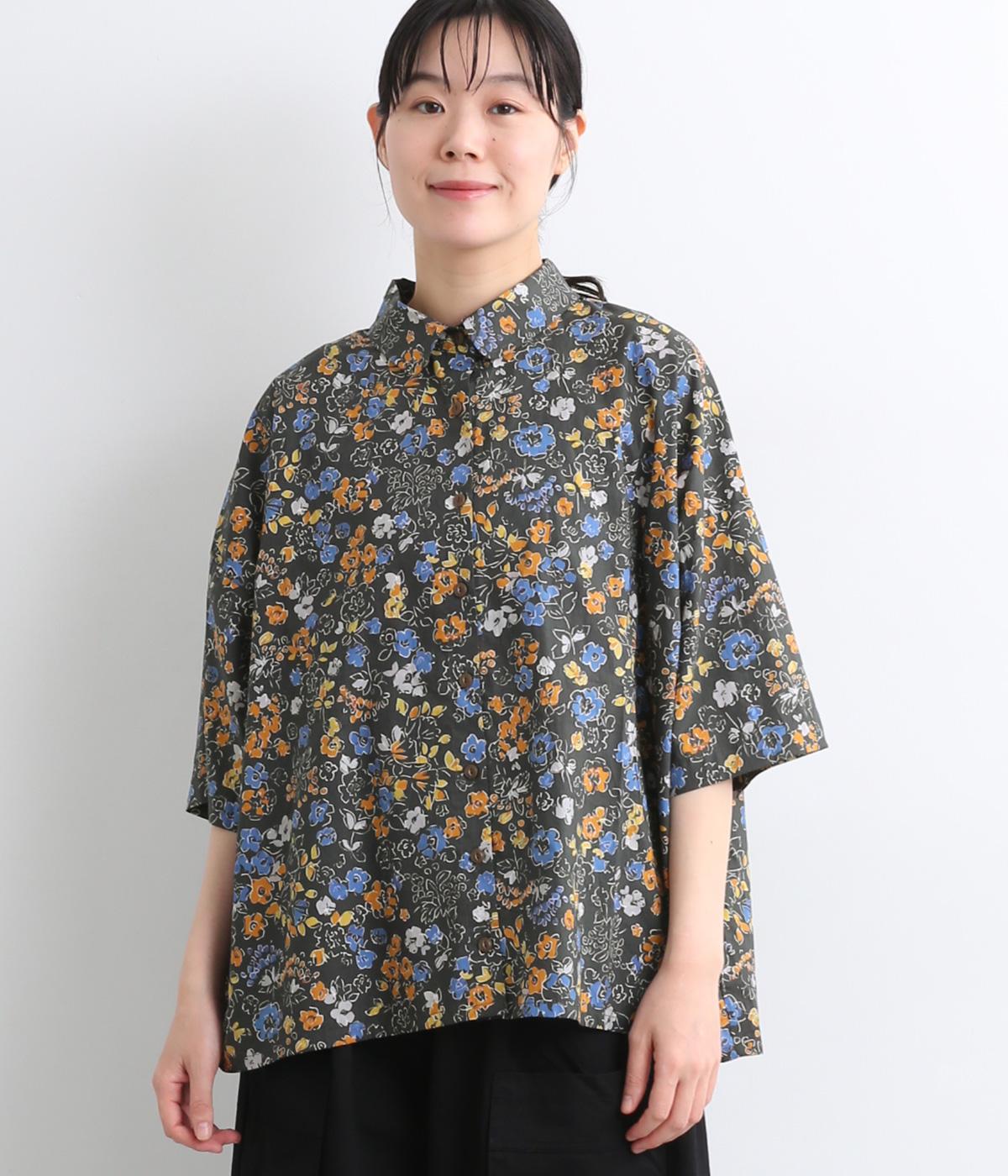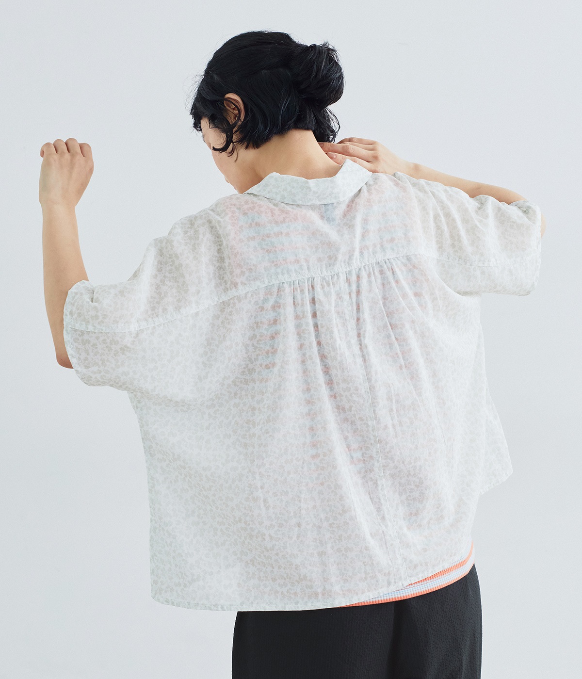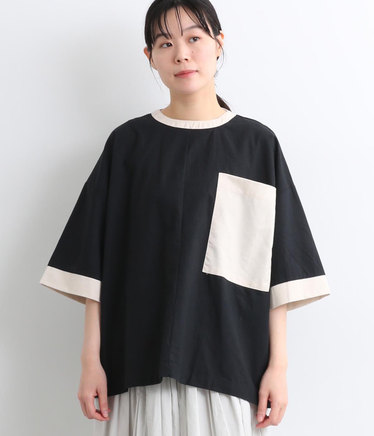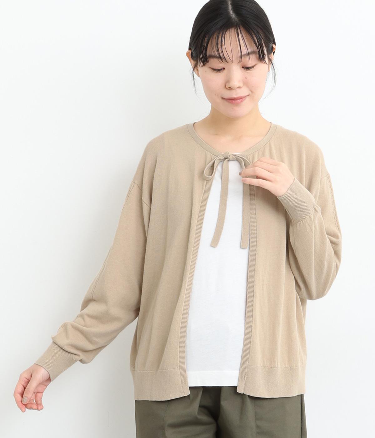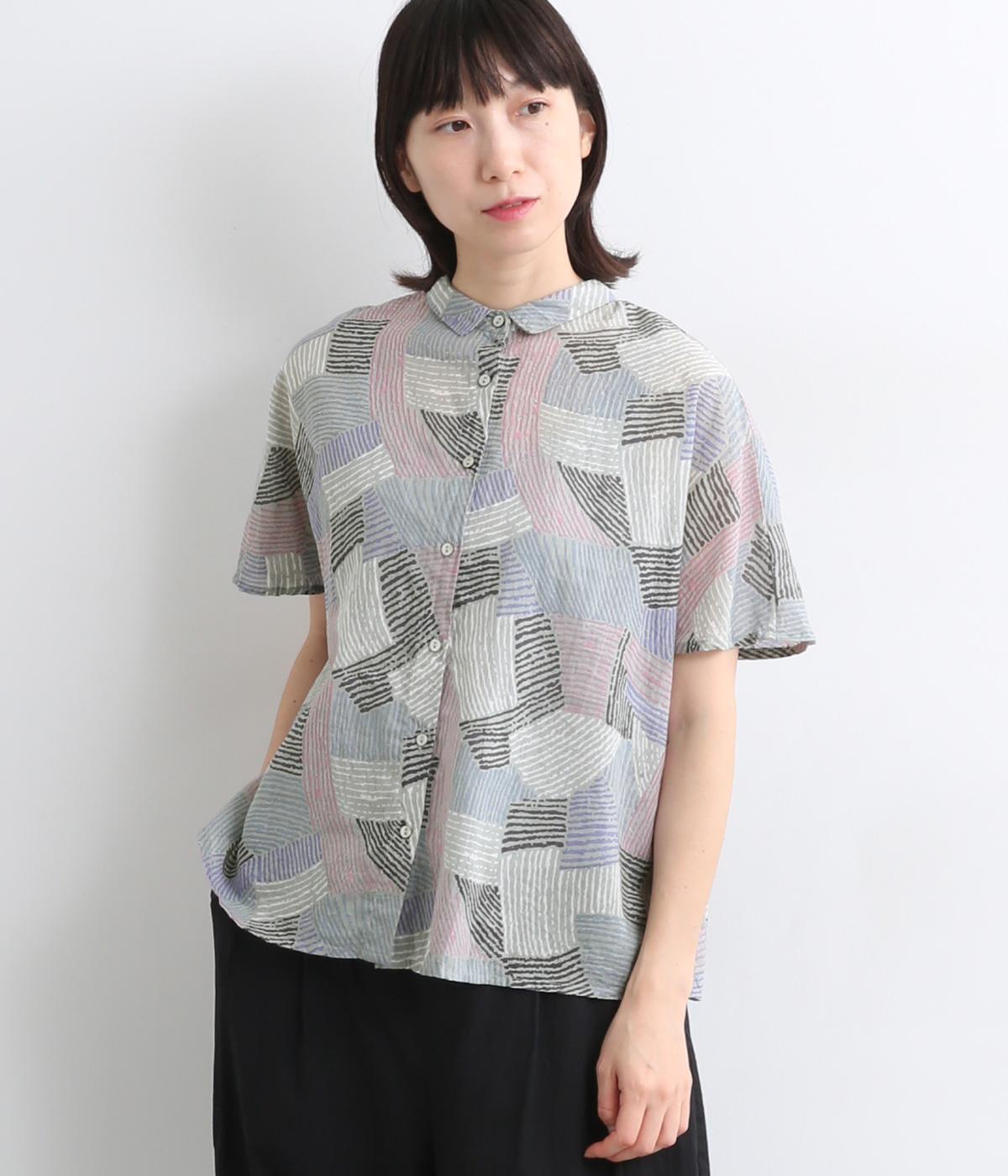 コットンリネンボリューム袖前あきブラウステラコッタ