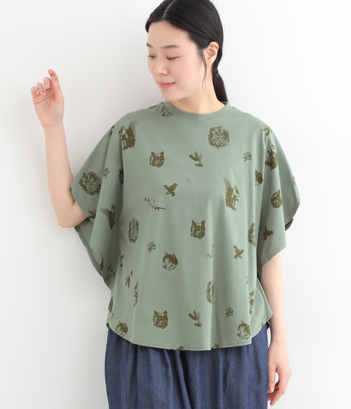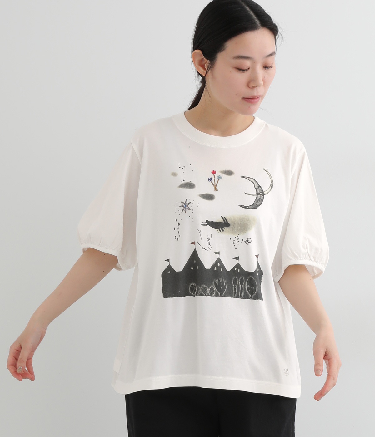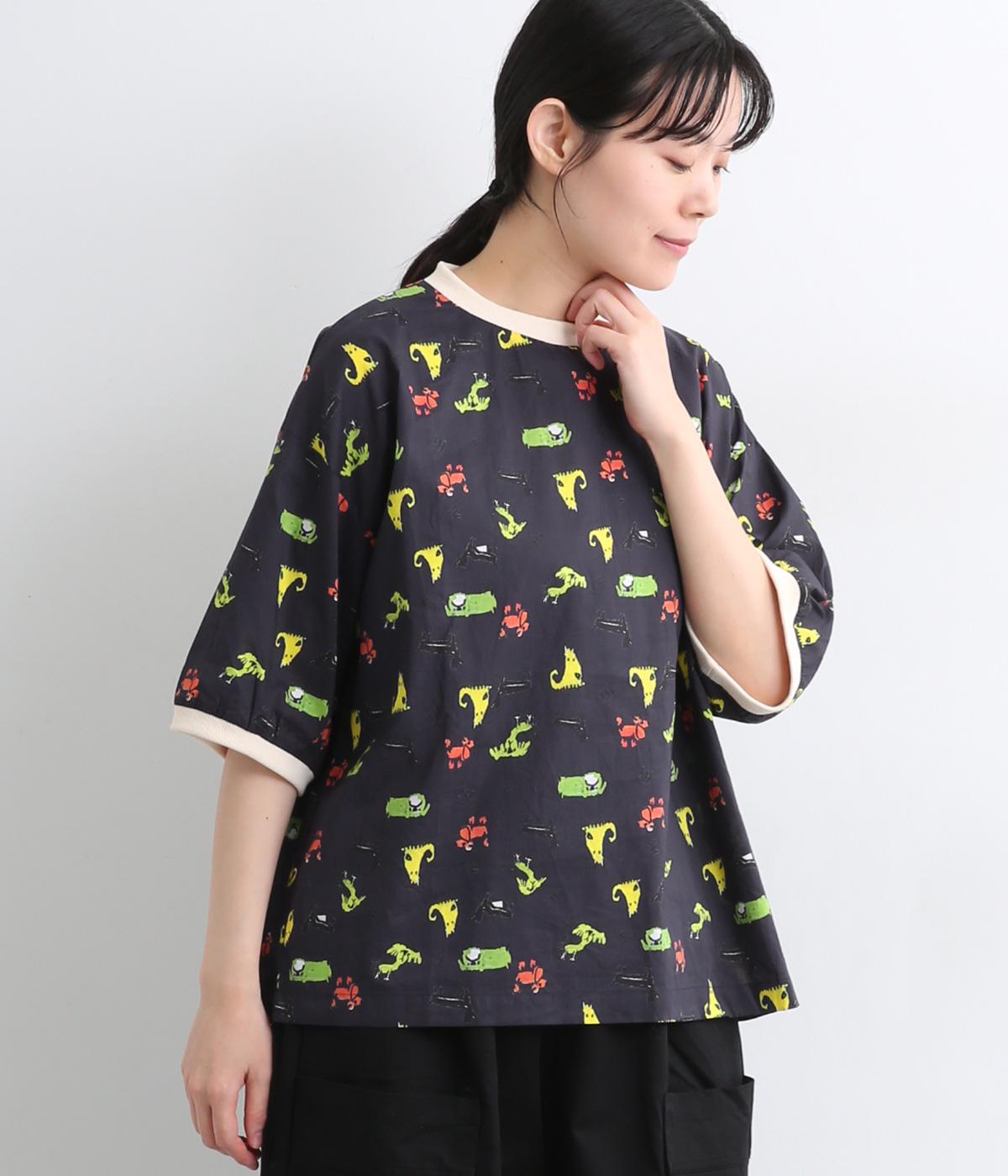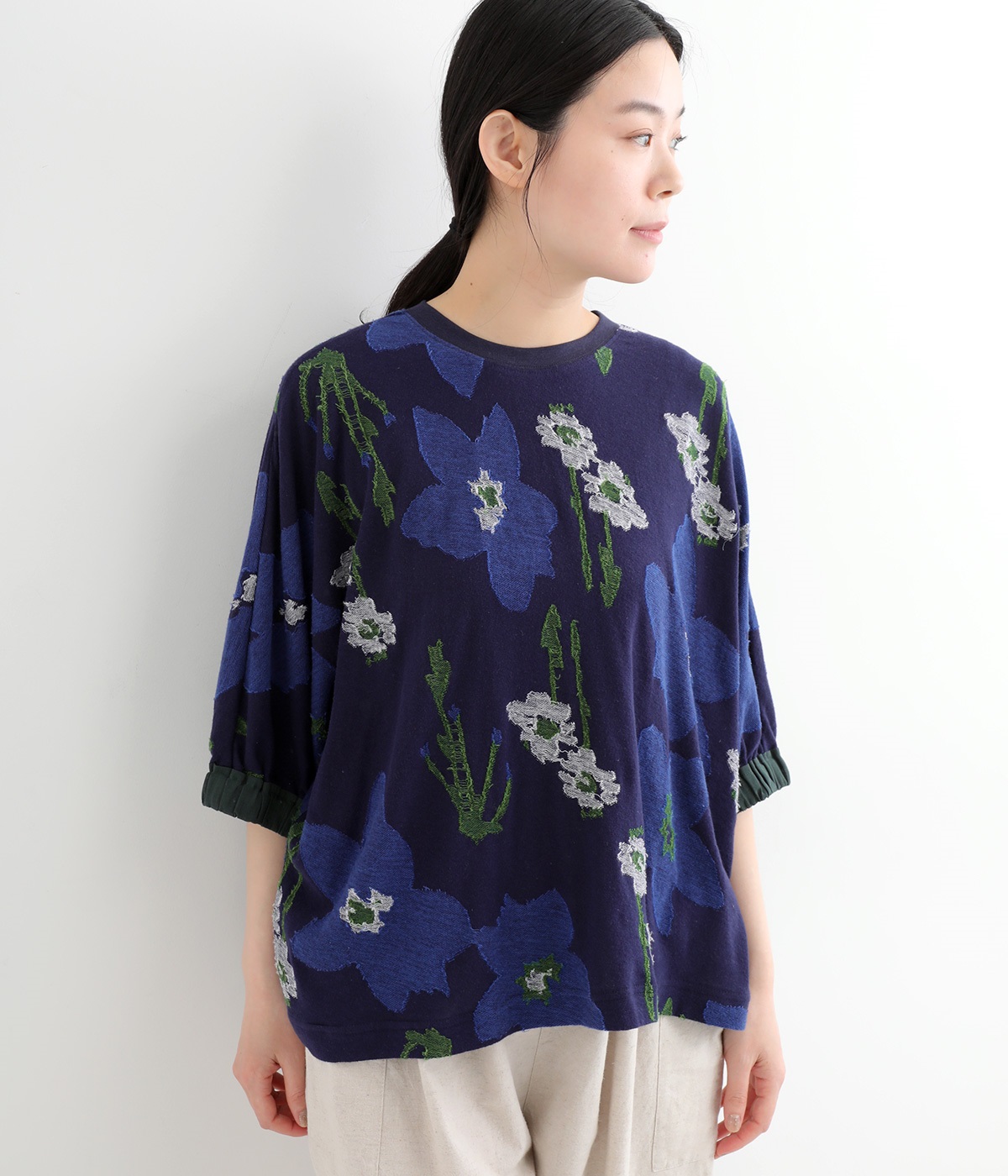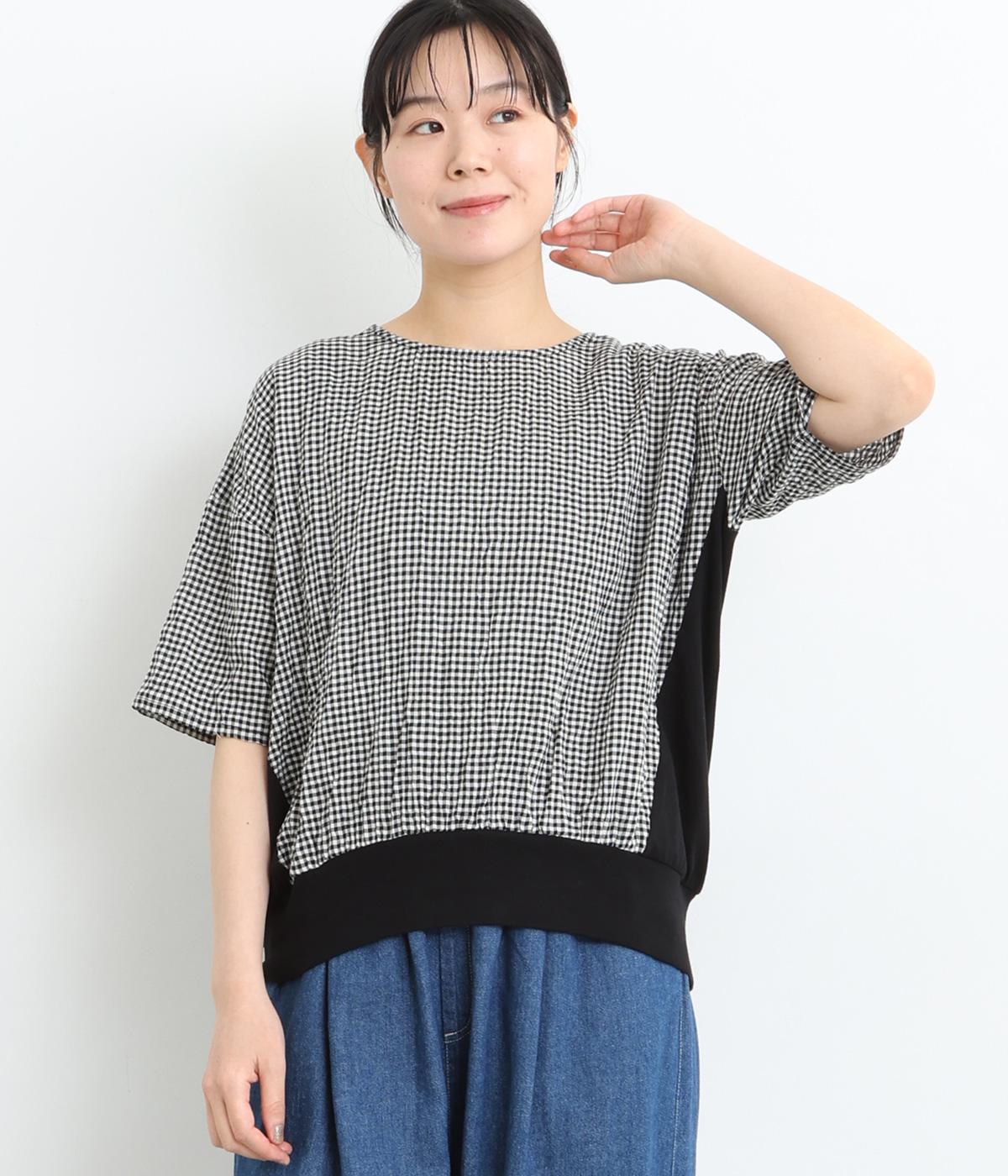 コットンリネンボリューム袖前あきブラウステラコッタ