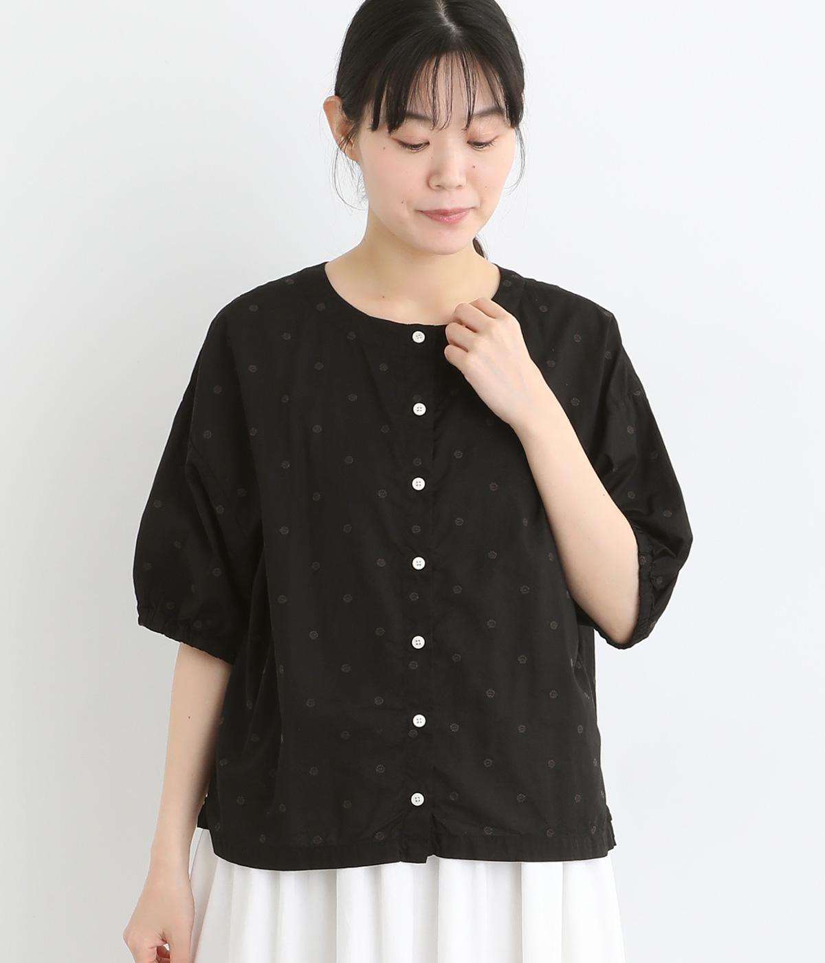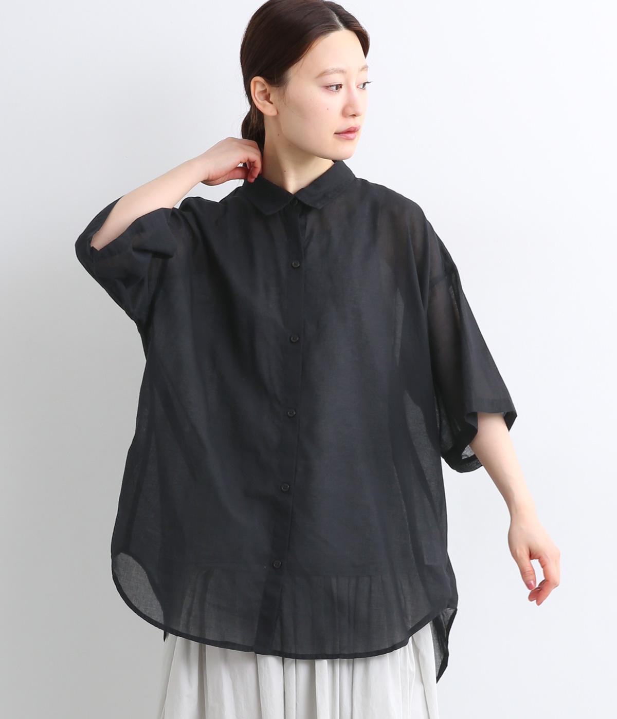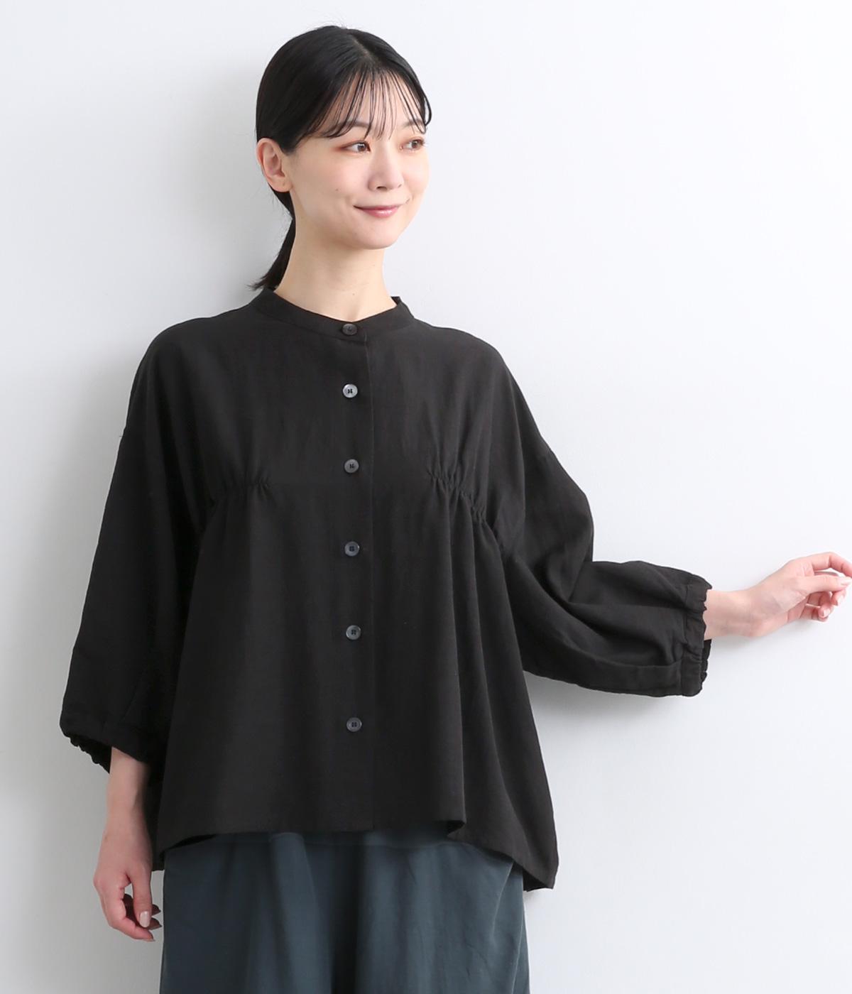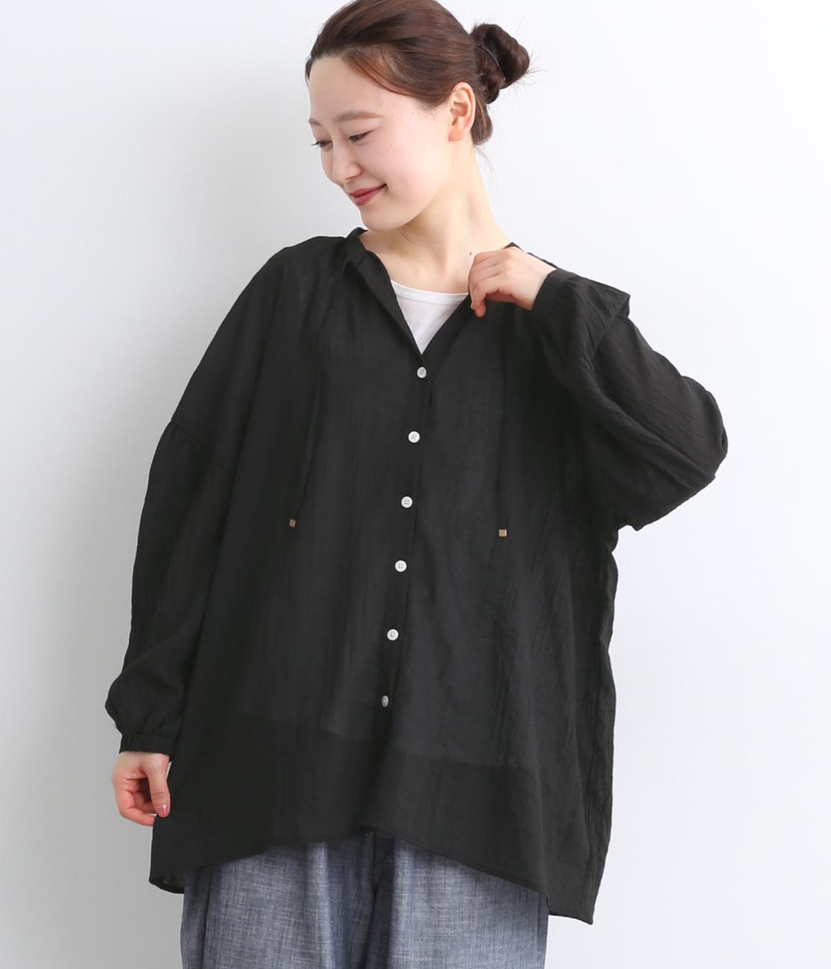 コットンワッシャーフリルカラーブラウスブラック