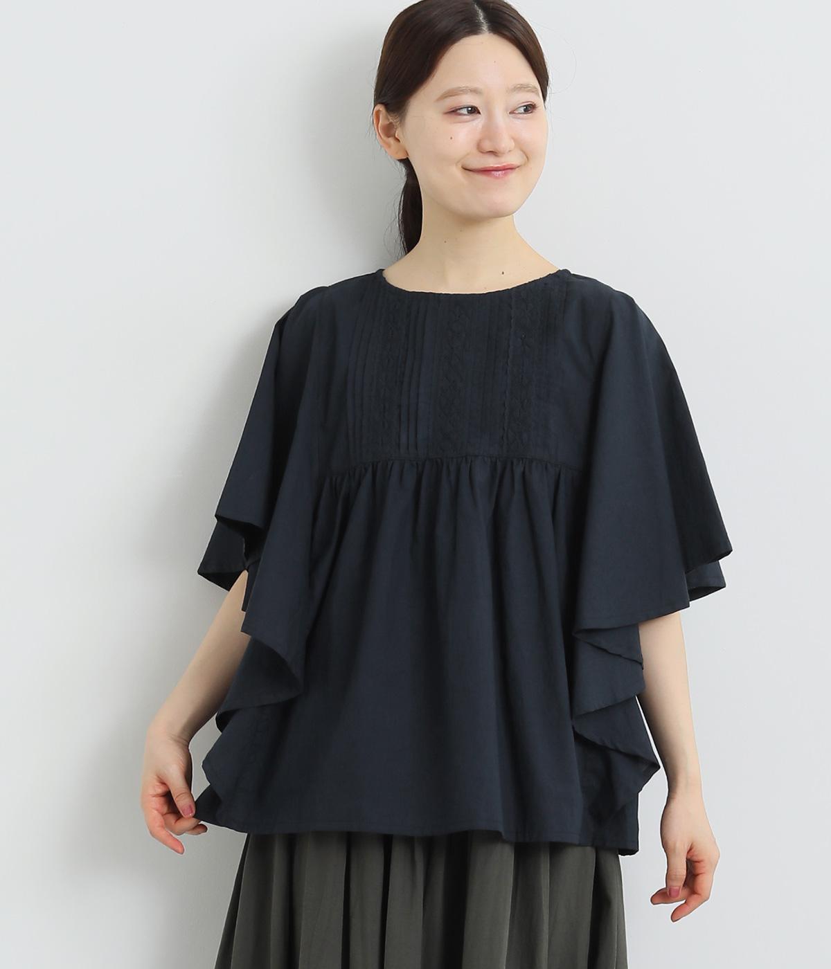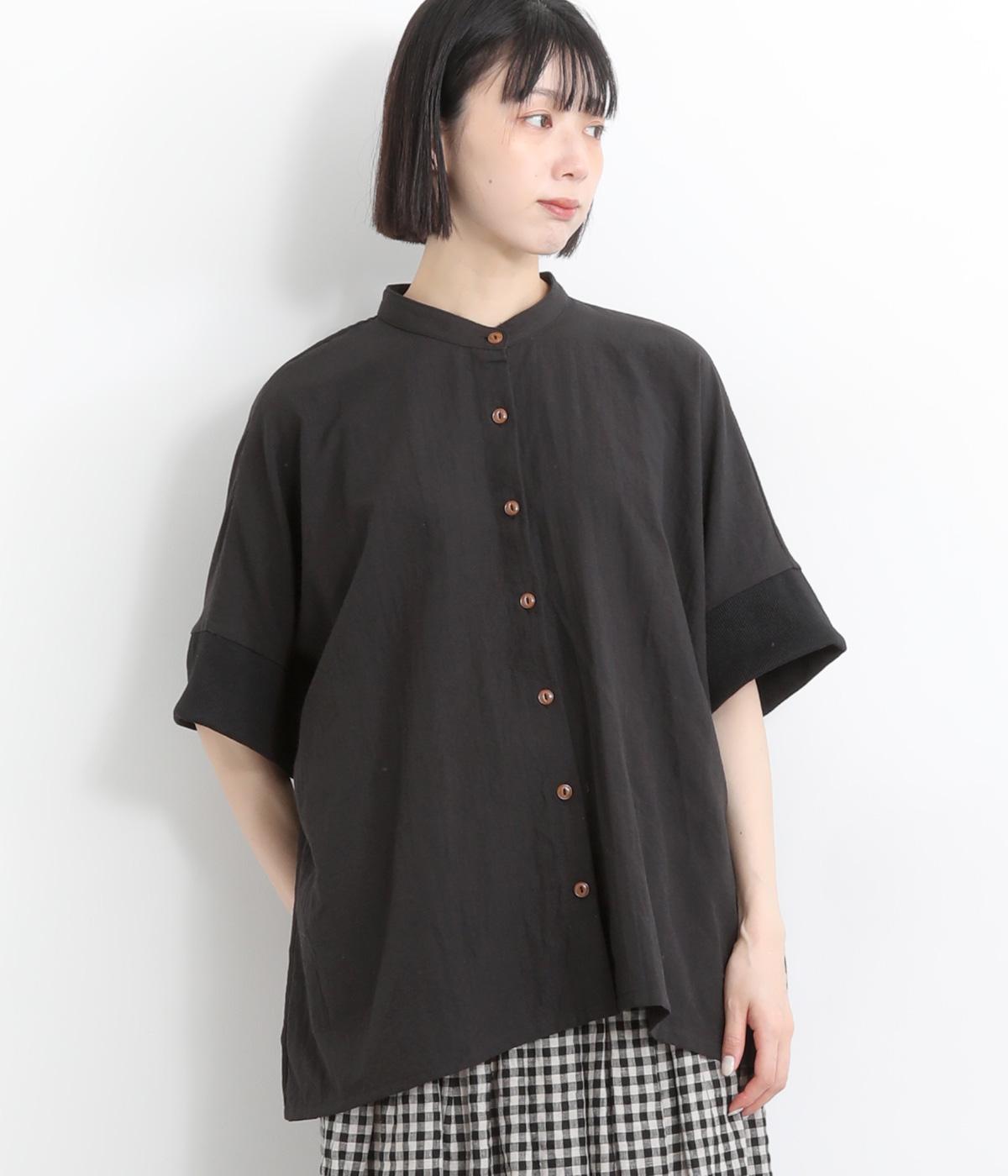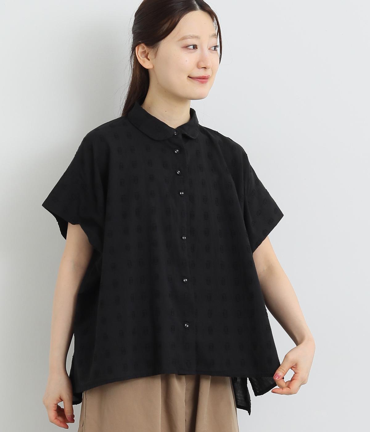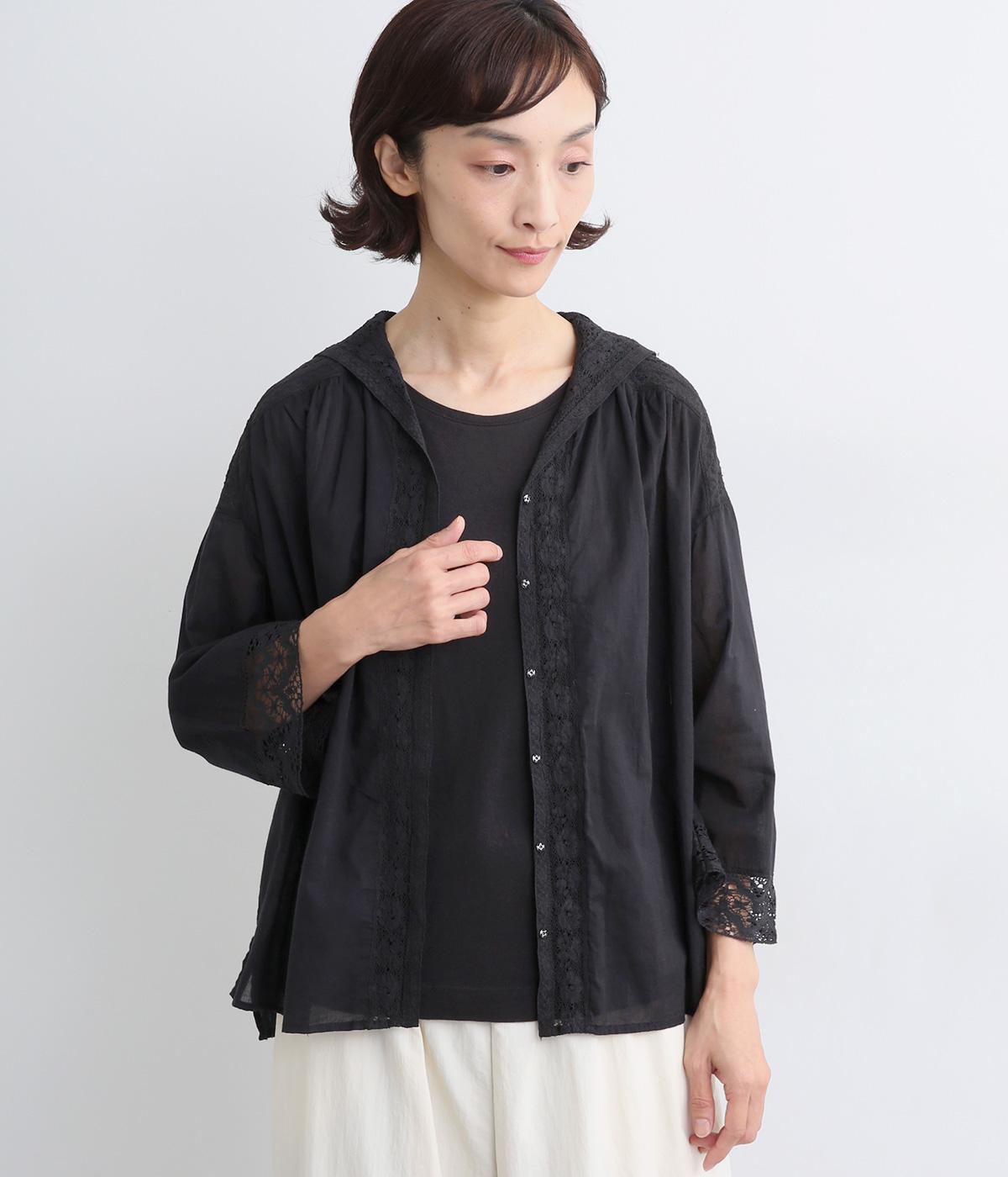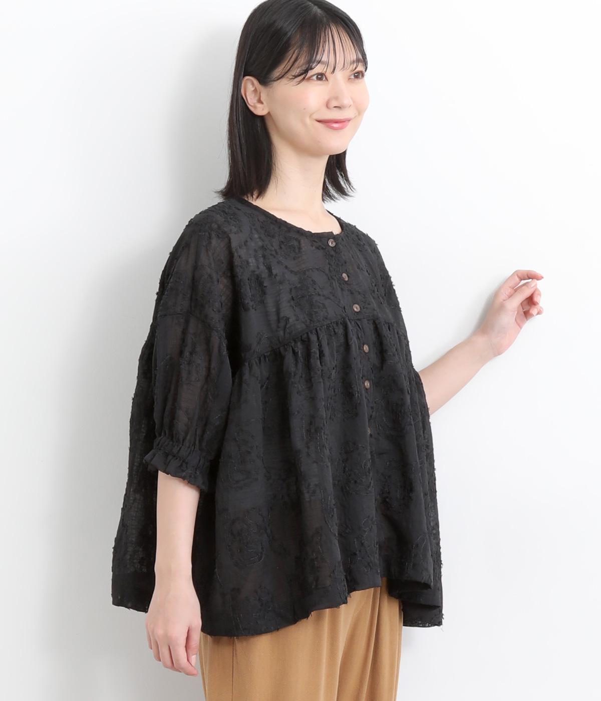 コットンワッシャーフリルカラーブラウスブラック