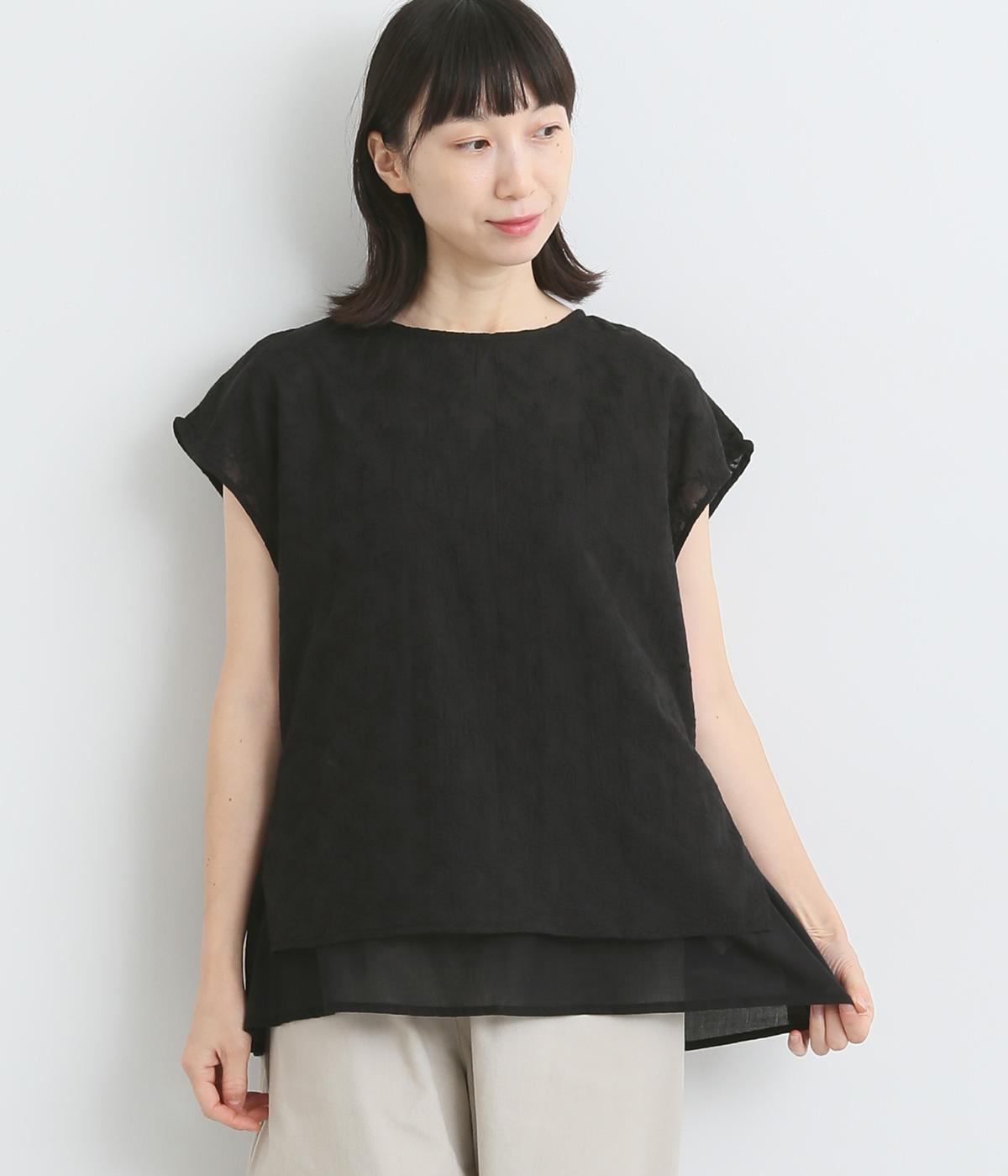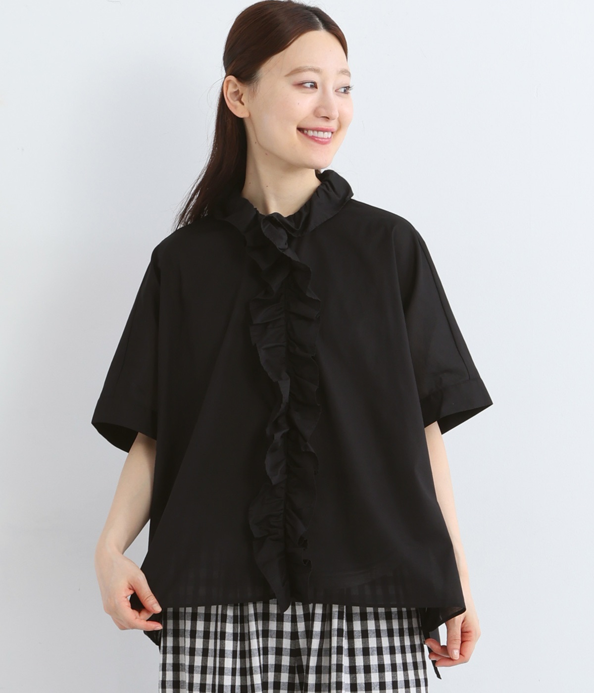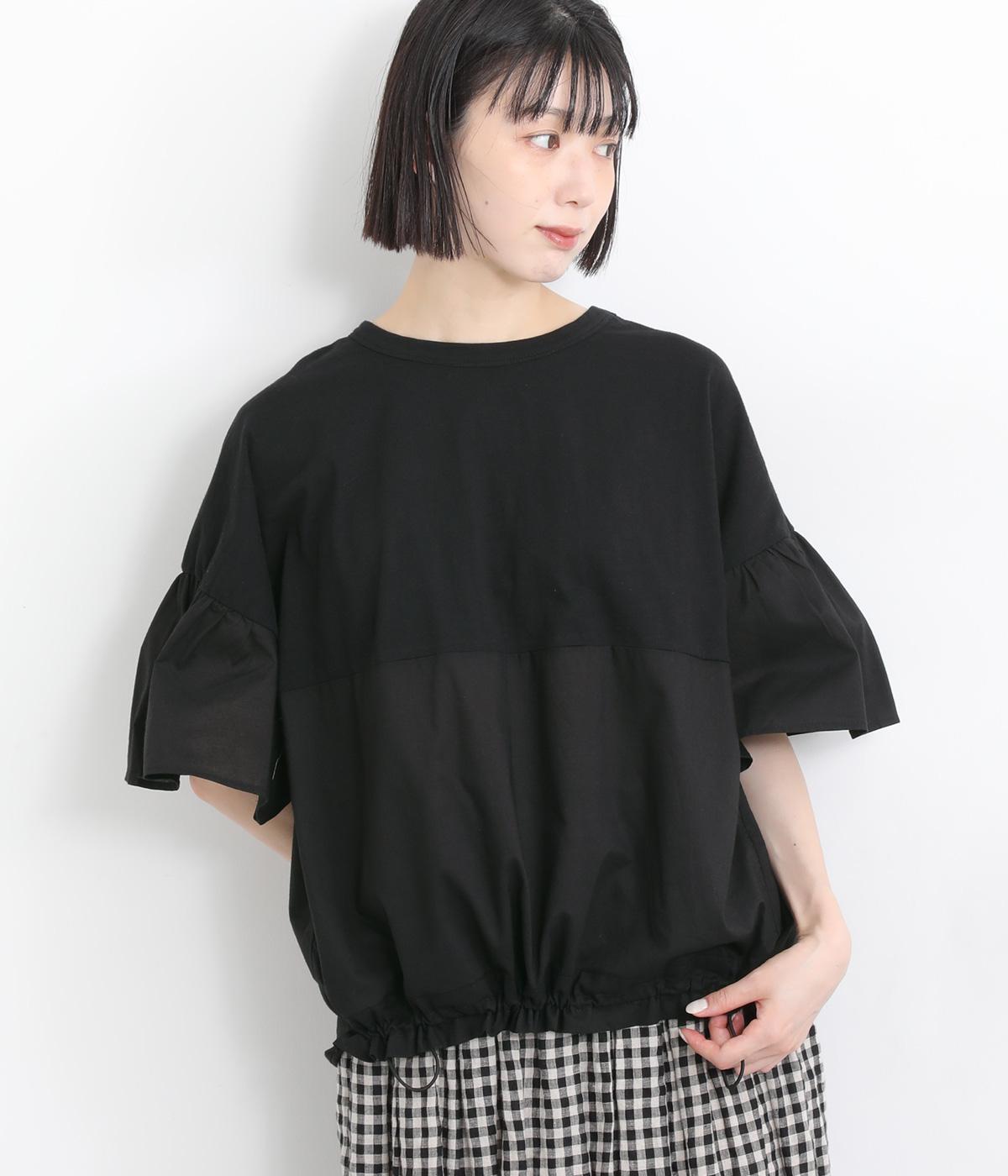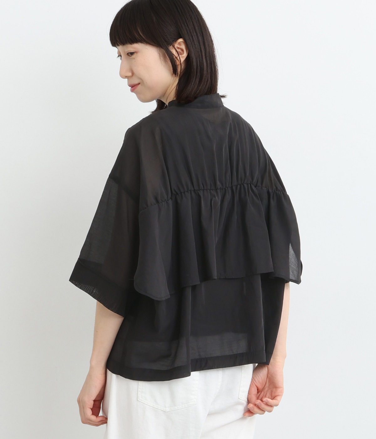 コットンワッシャーフリルカラーブラウスブラック