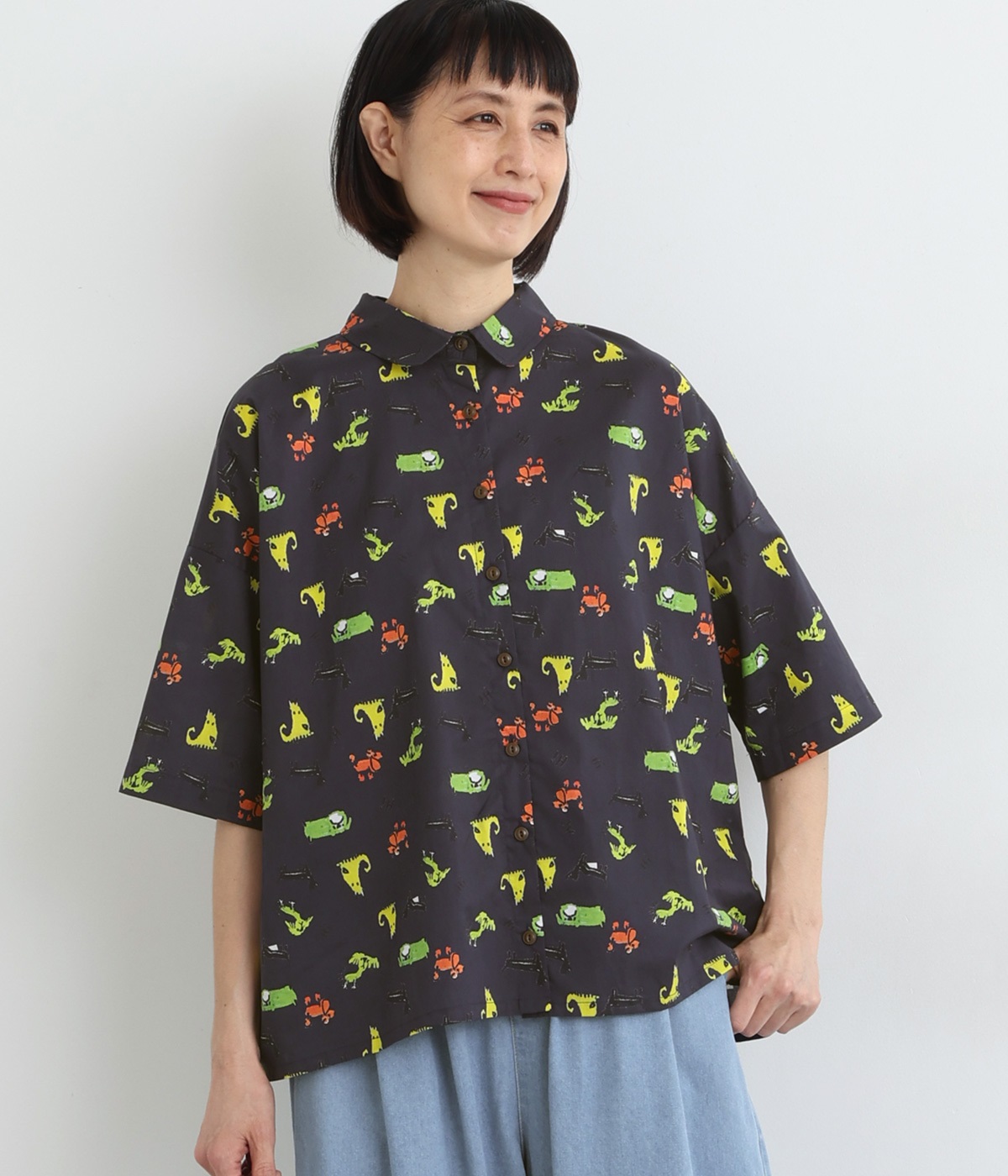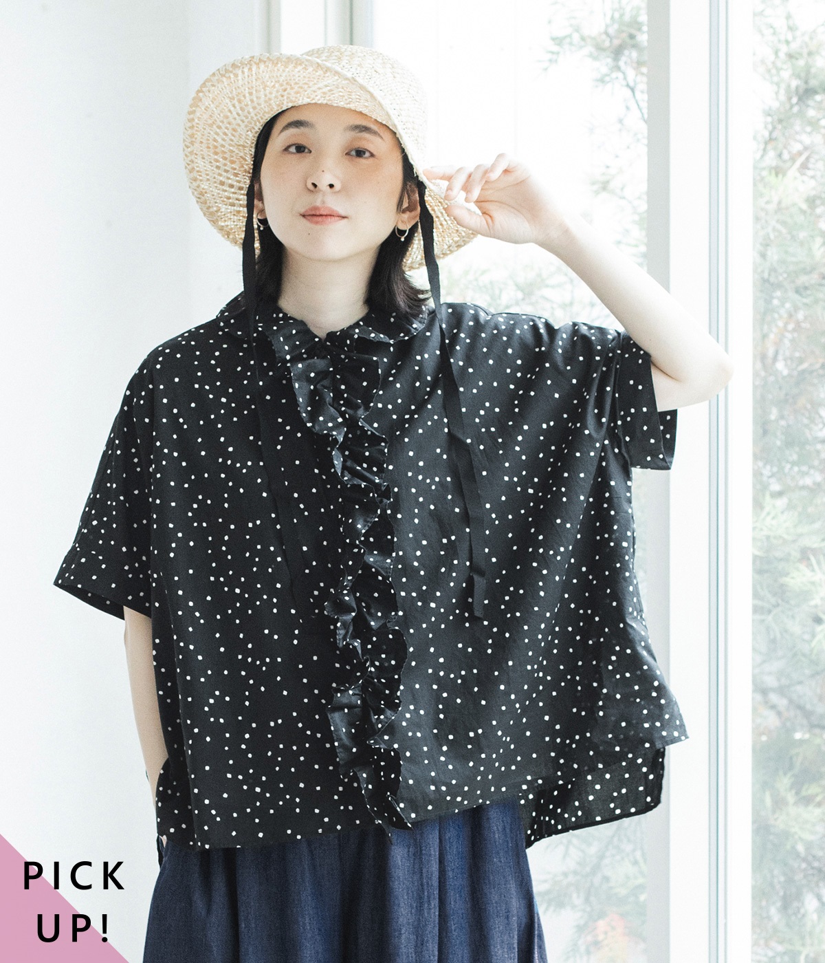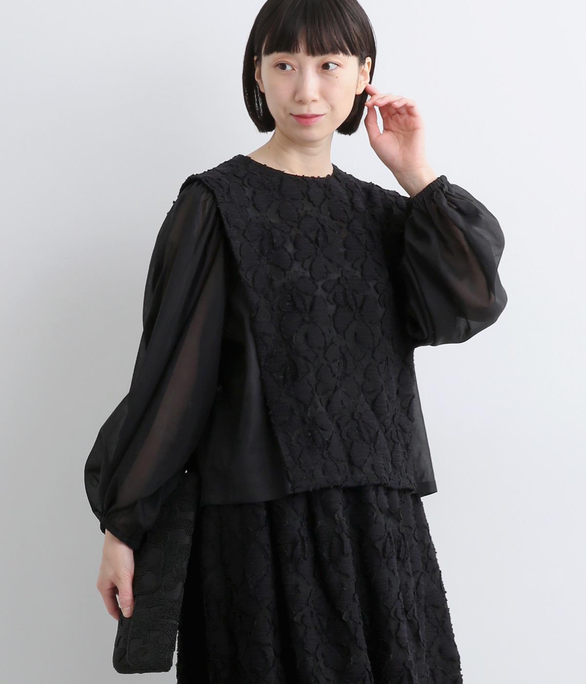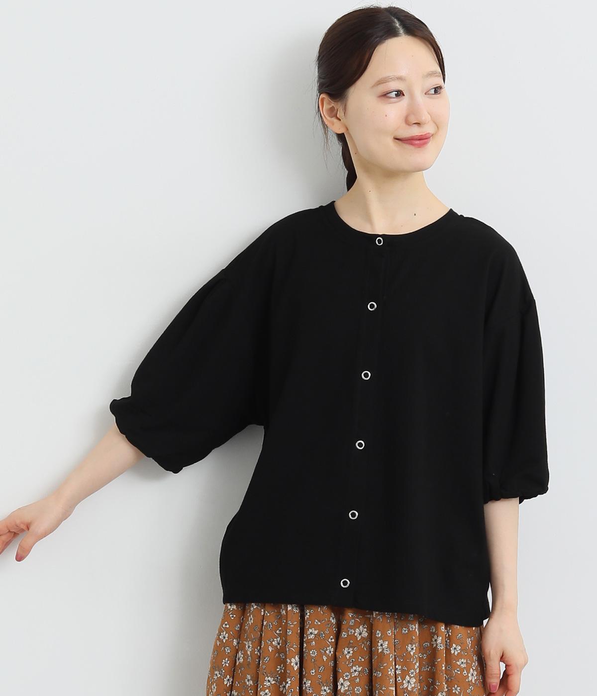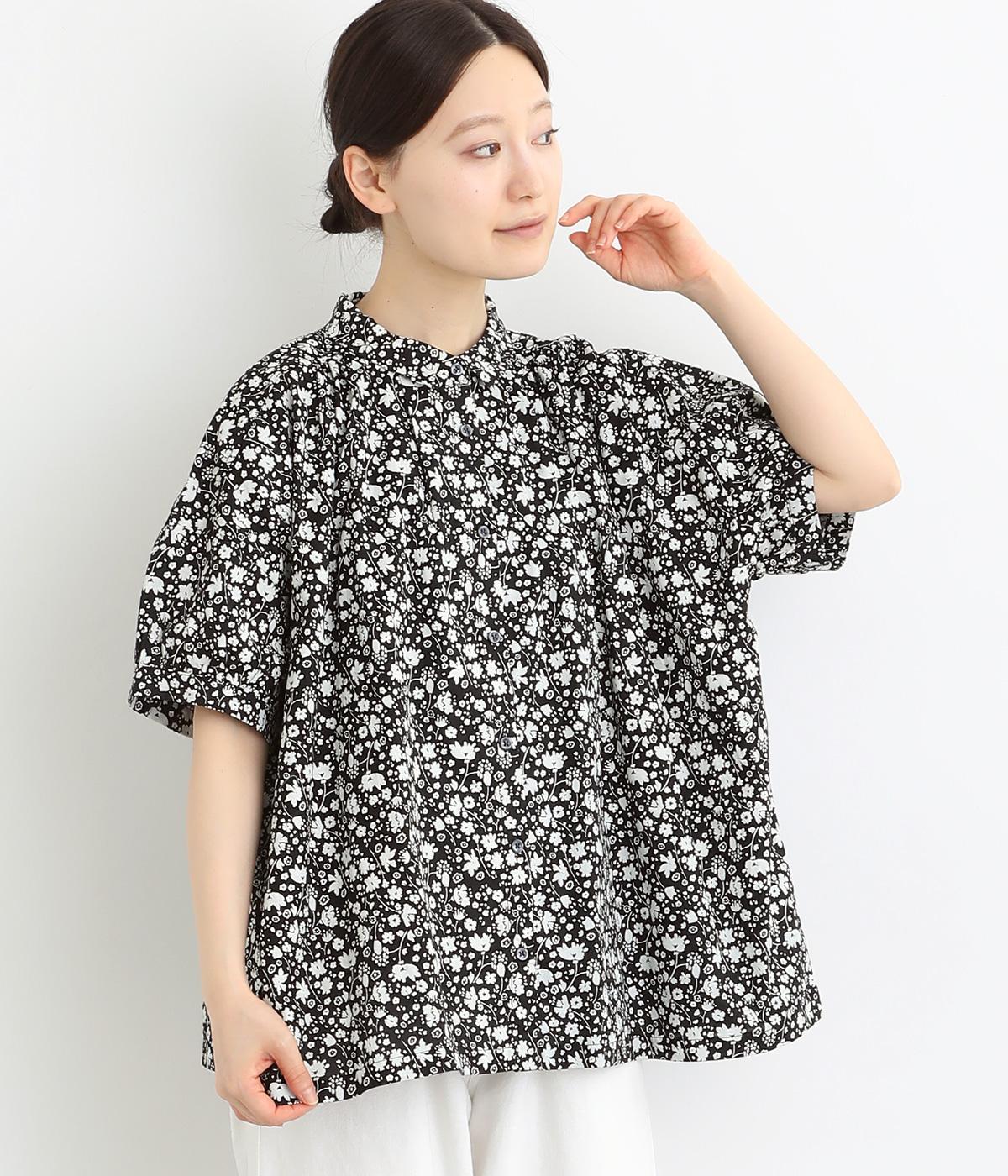 コットンワッシャーフリルカラーブラウスブラック