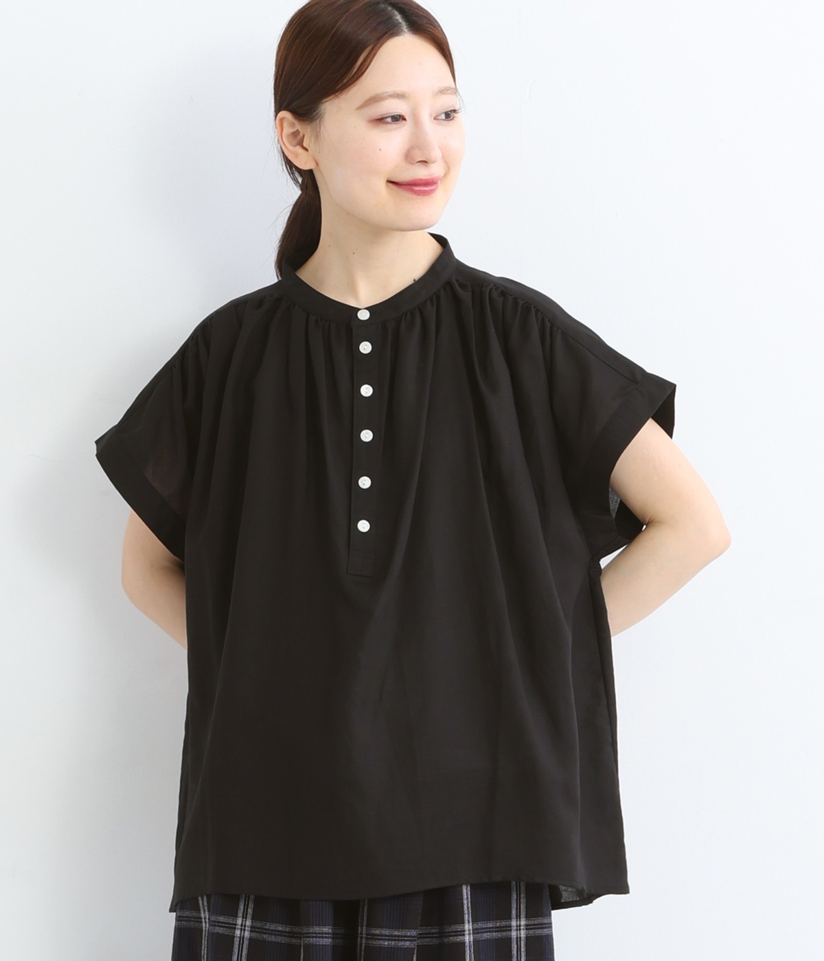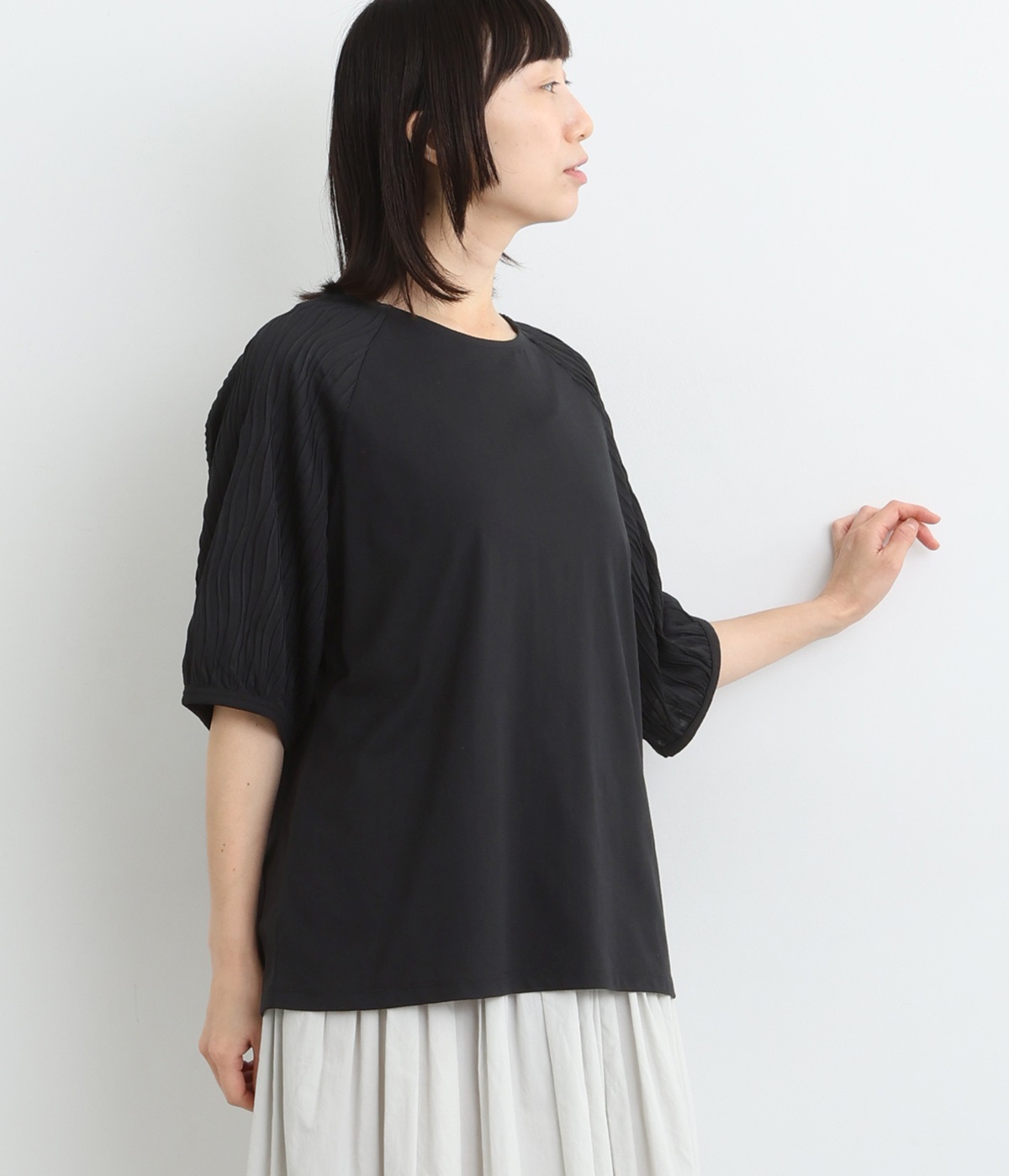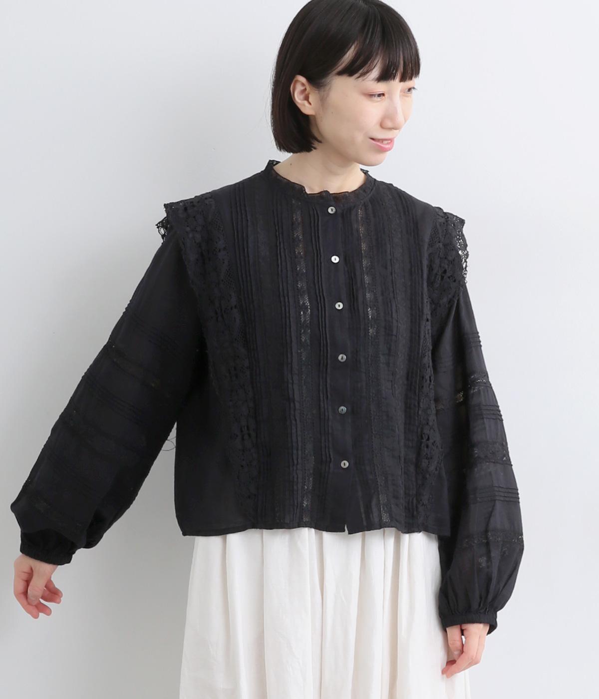 コットン ピンタックシャツブラック