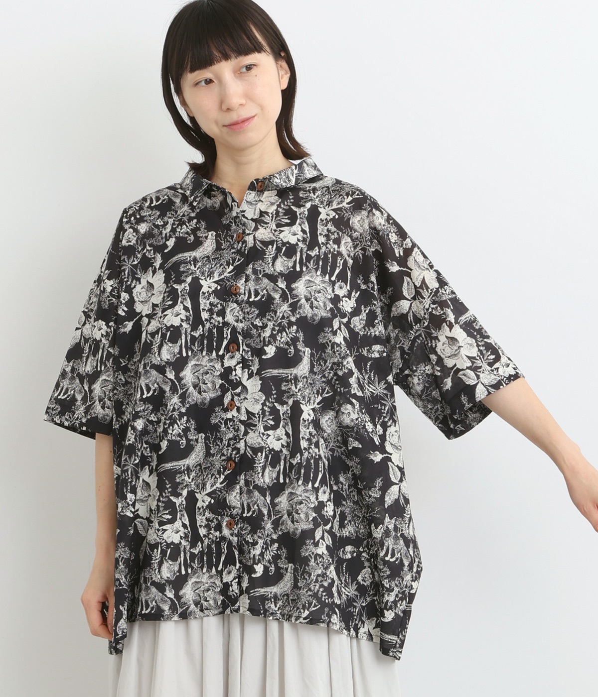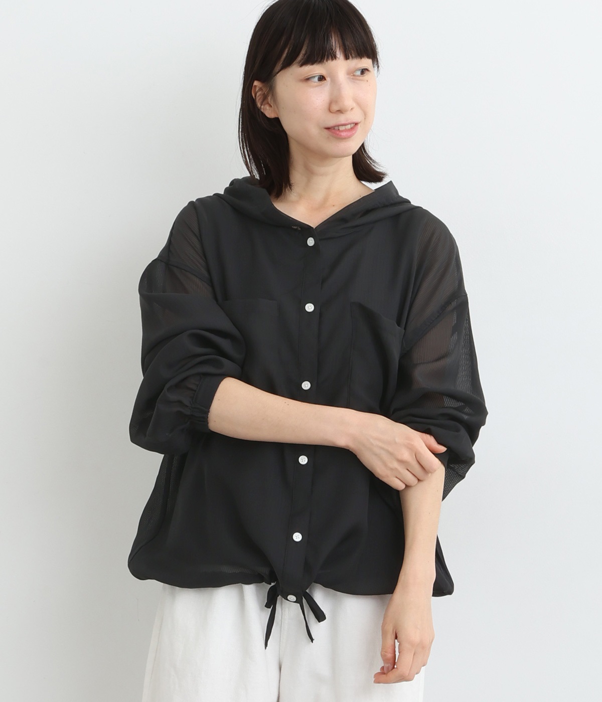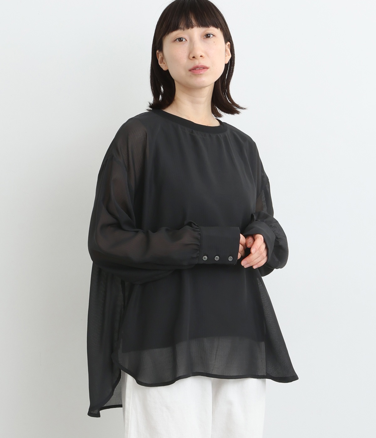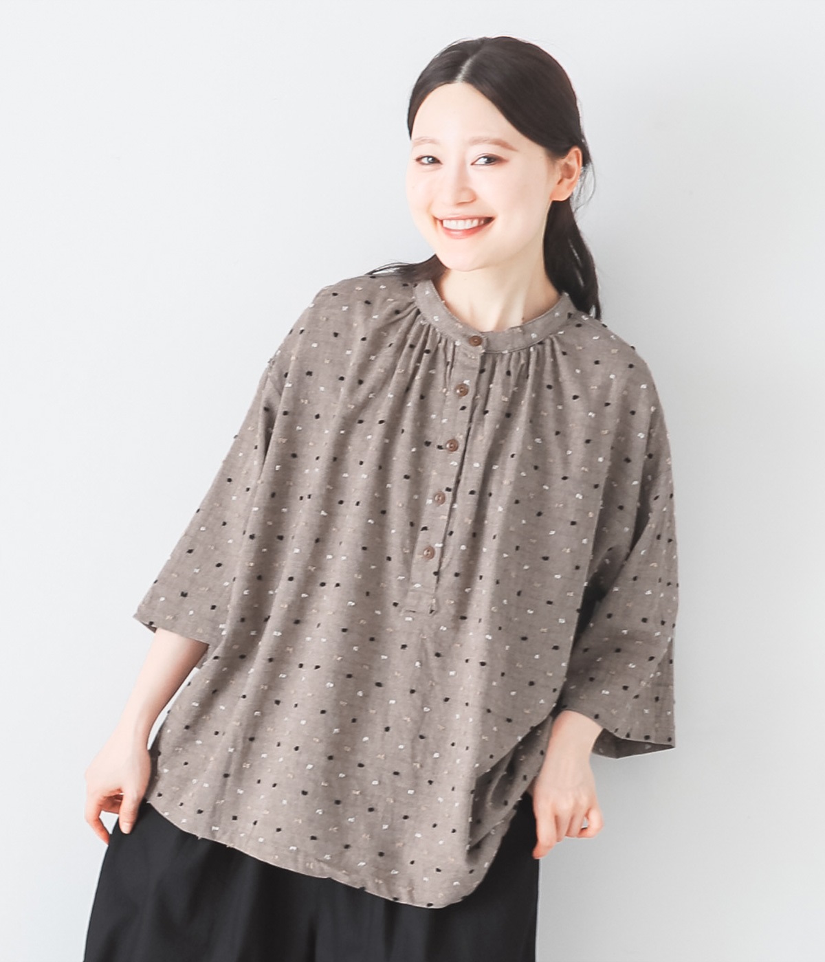 コットン ピンタックシャツブラック
