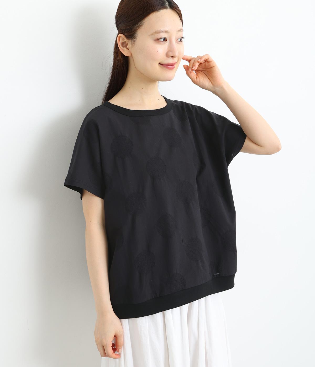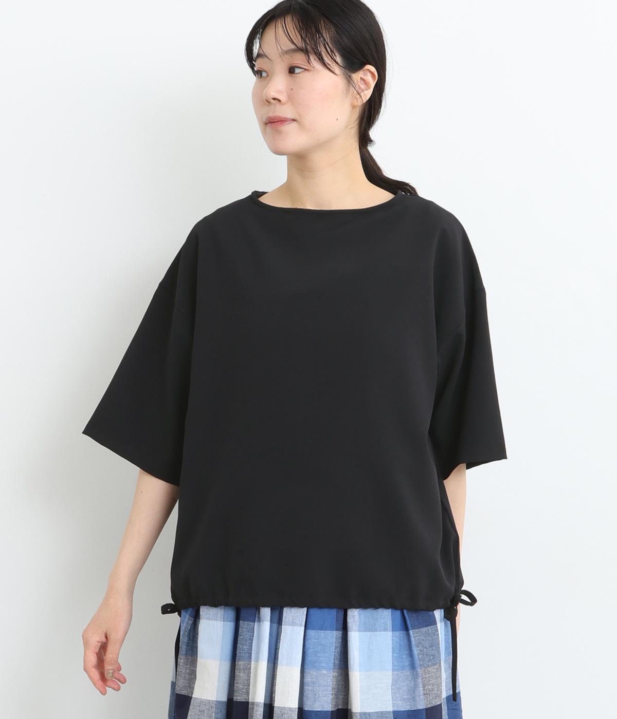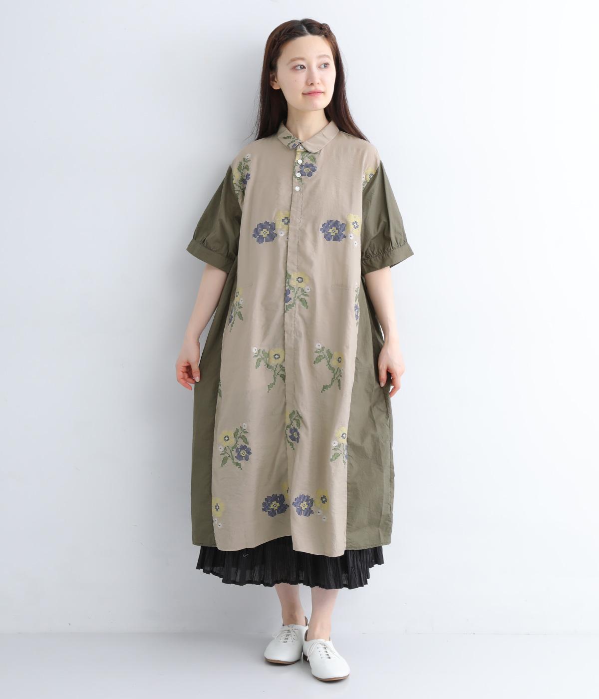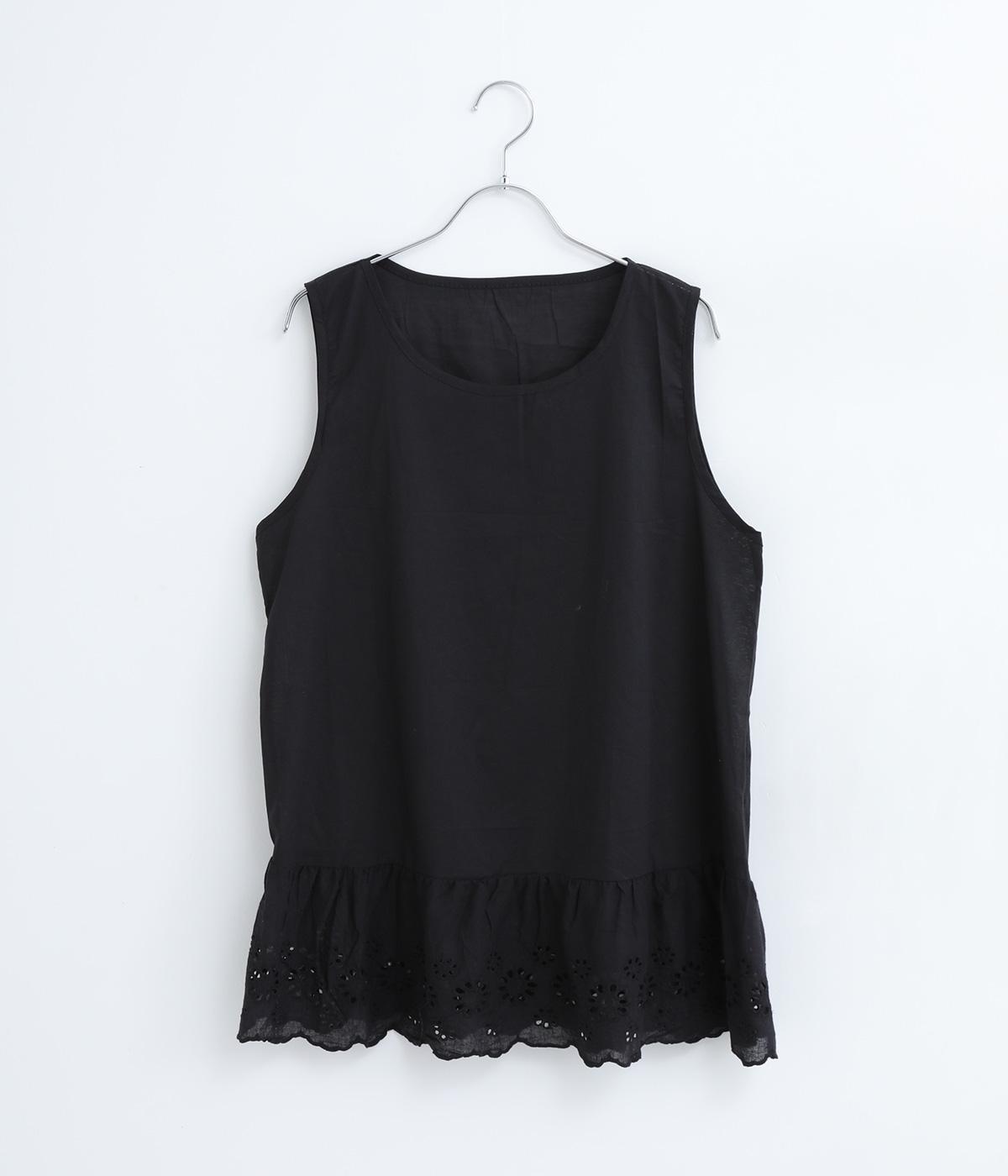 コットン細コール襟フリル切替ギャザーワンピースブラック