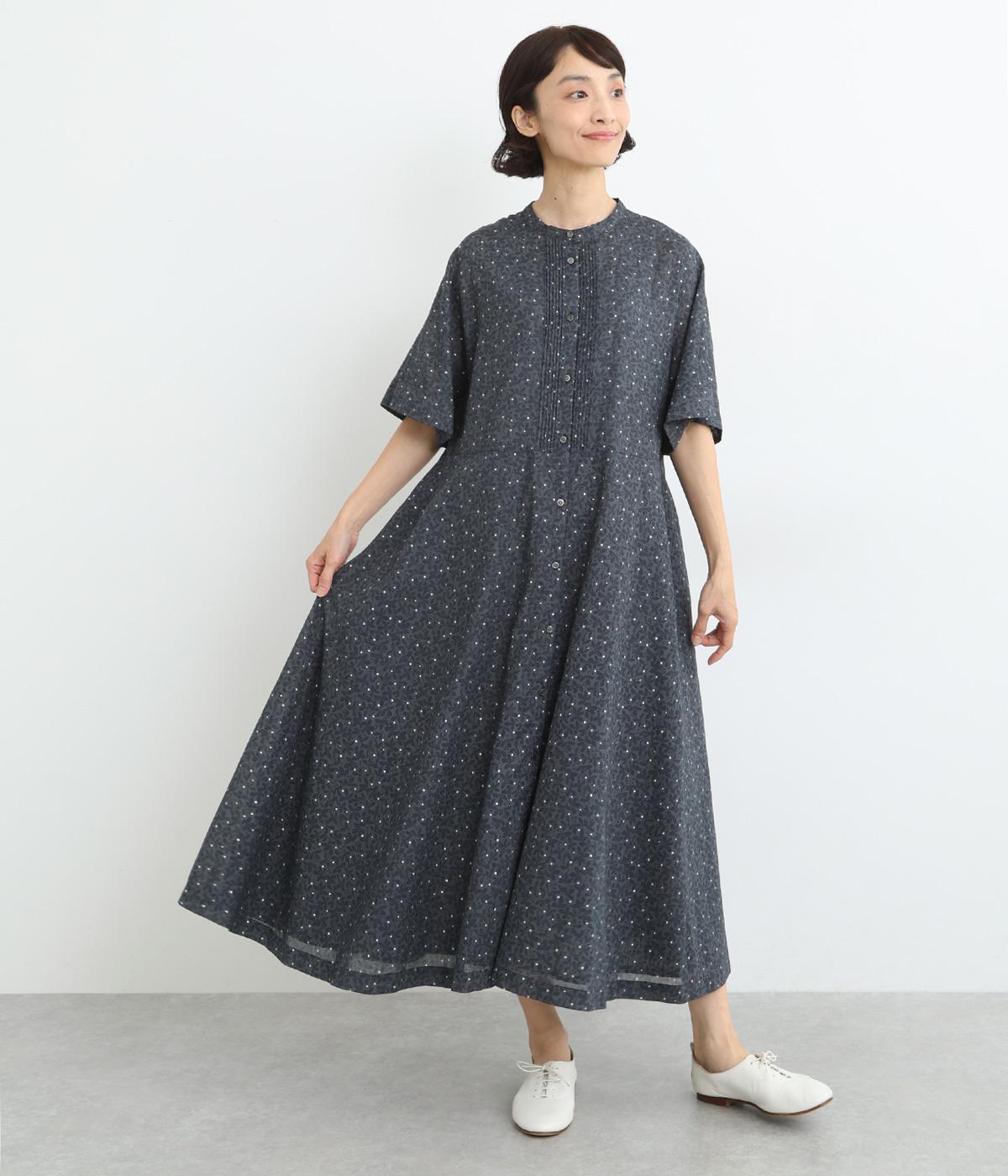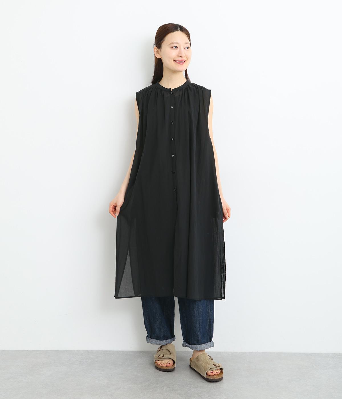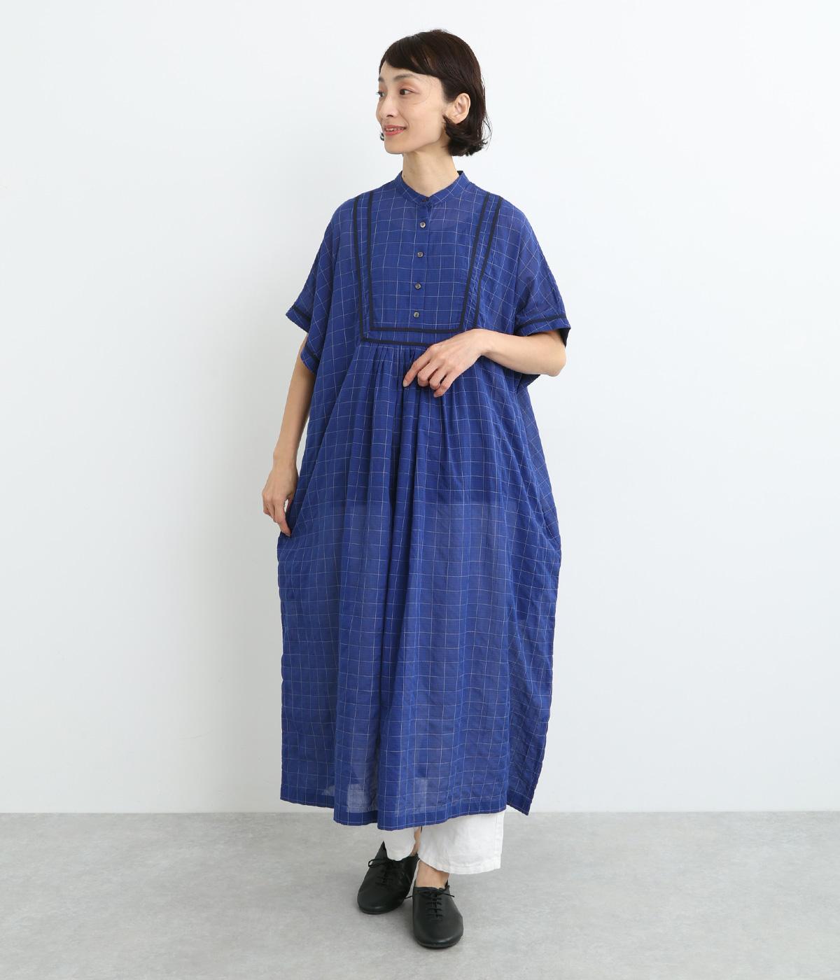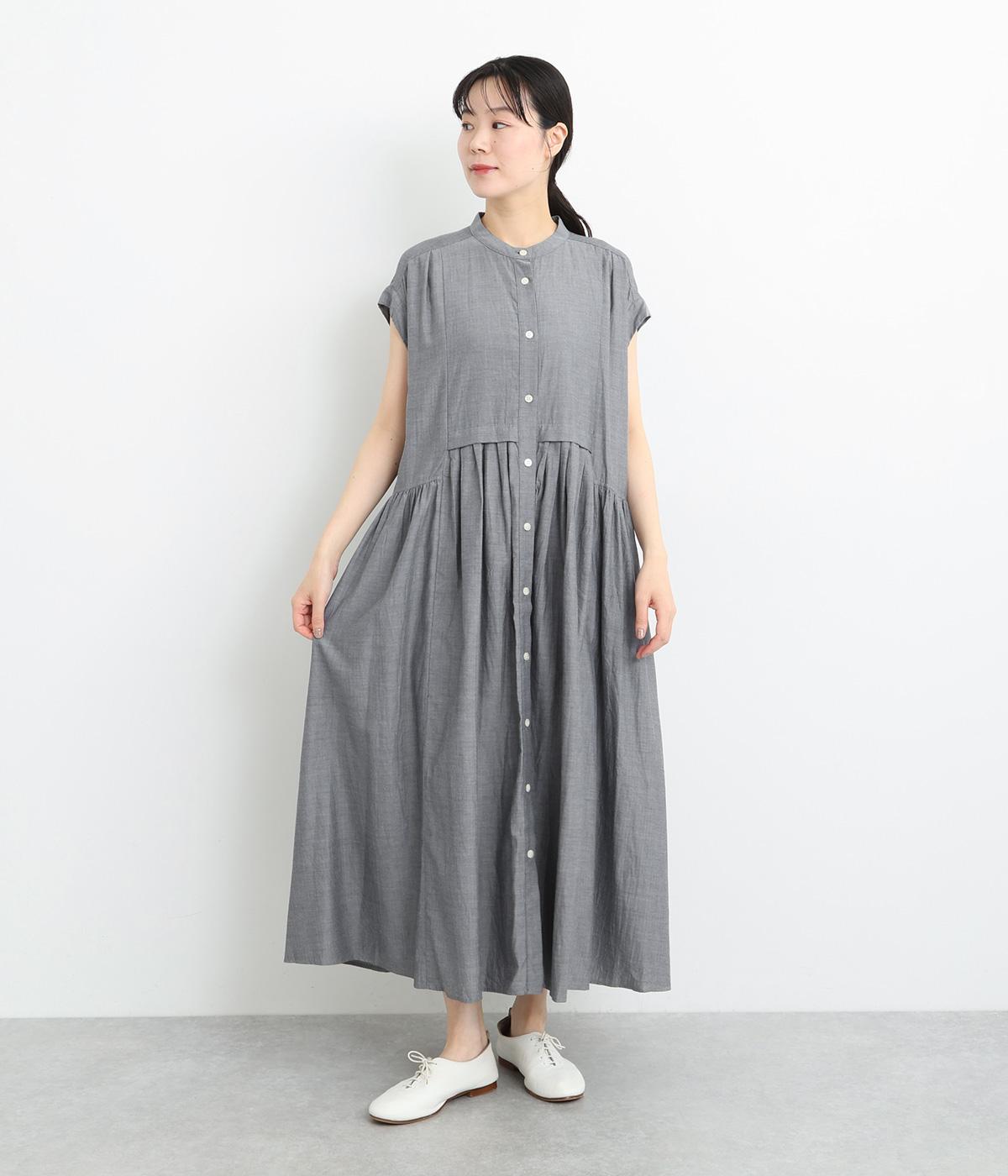 リネンコットンデニム襟付きノースリーブワンピースインディゴ