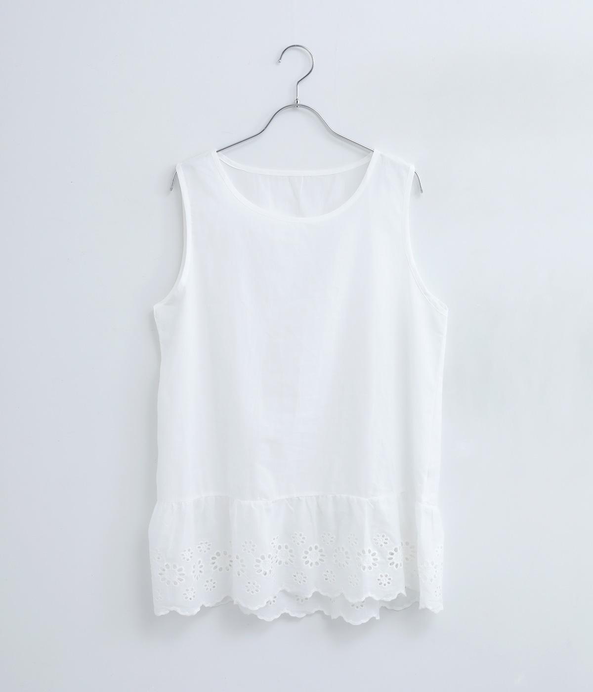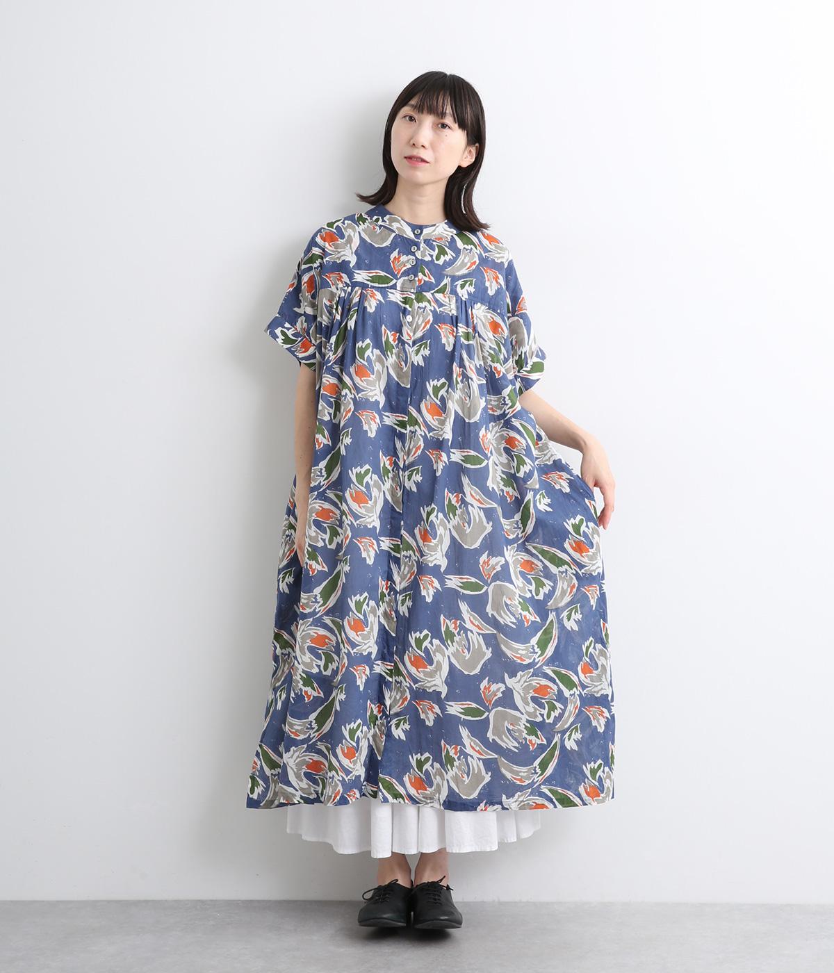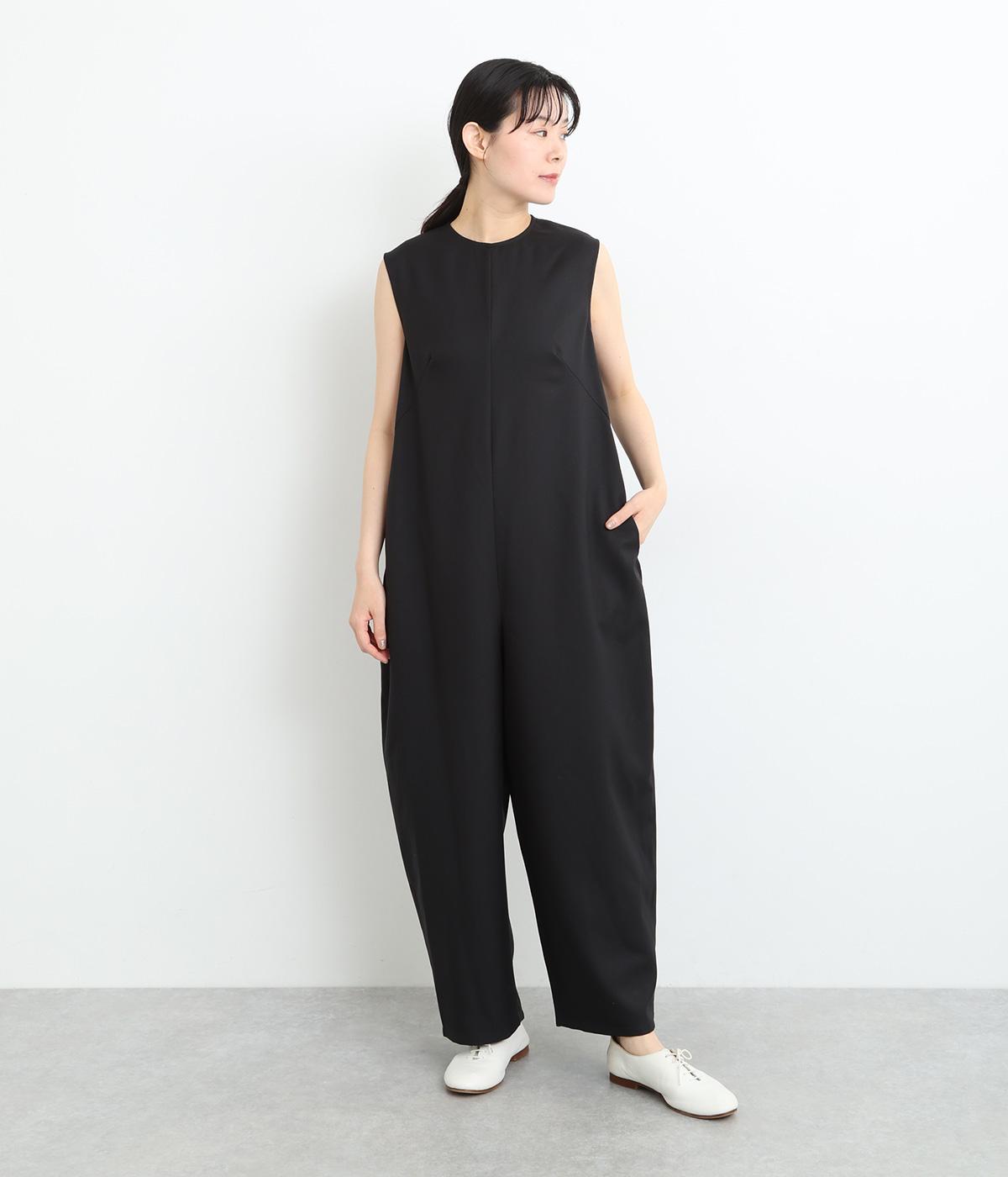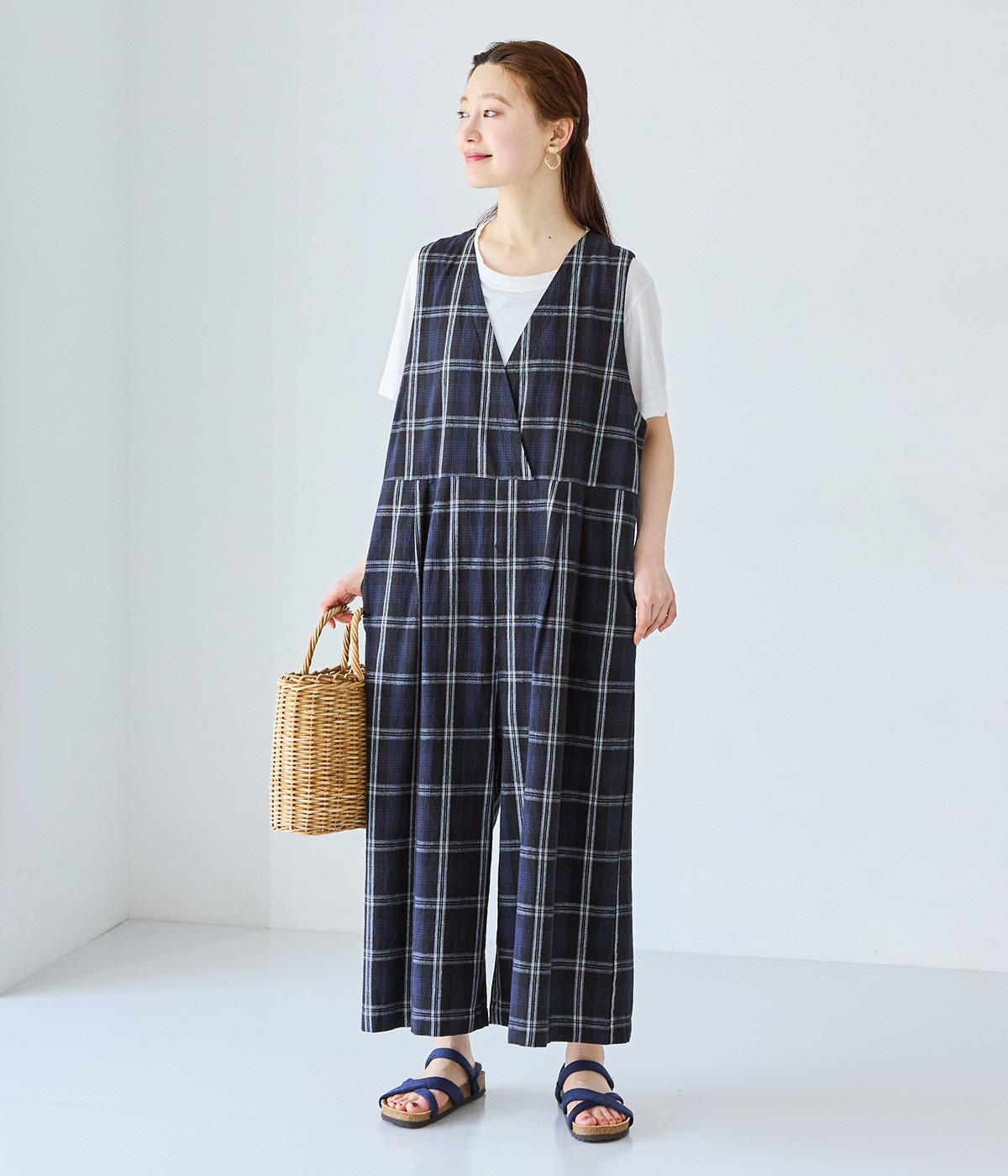 リネンコットンデニム襟付きノースリーブワンピースインディゴ