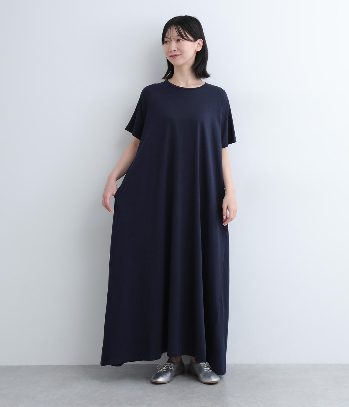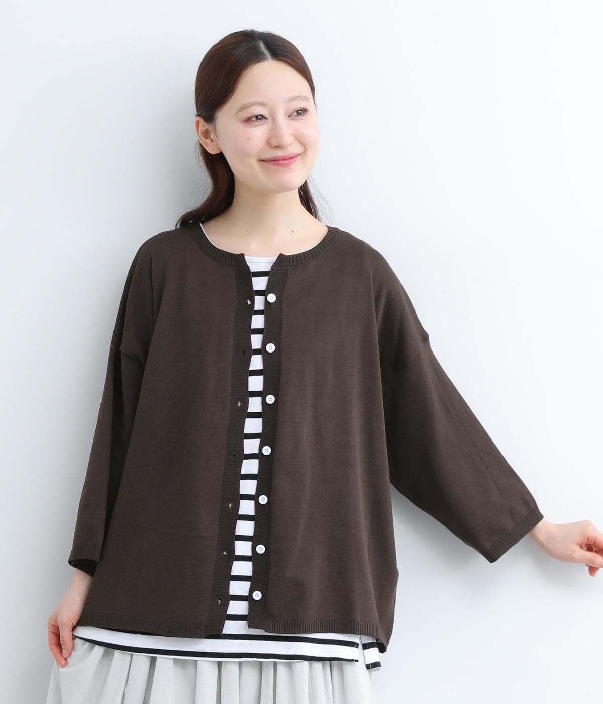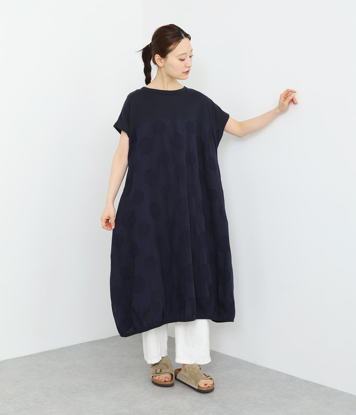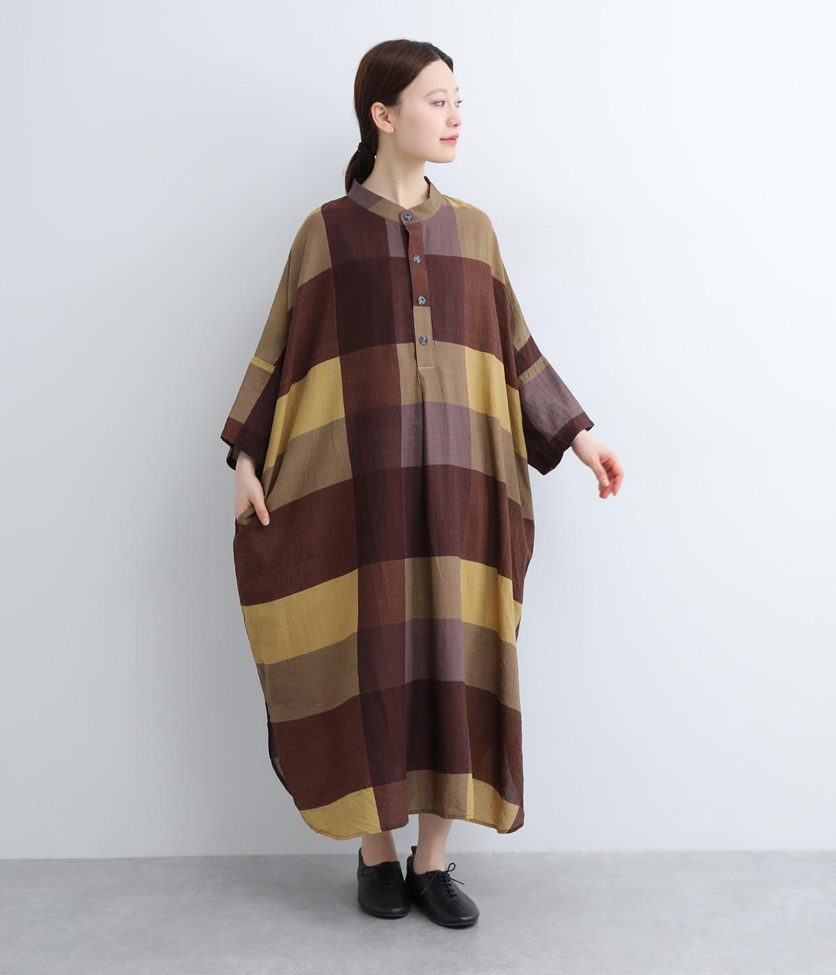 ウールコットンワッシャー袖リブニットチュニックワンピースモカ