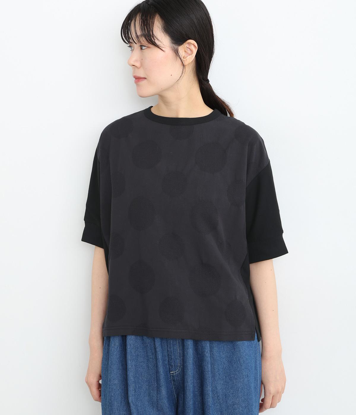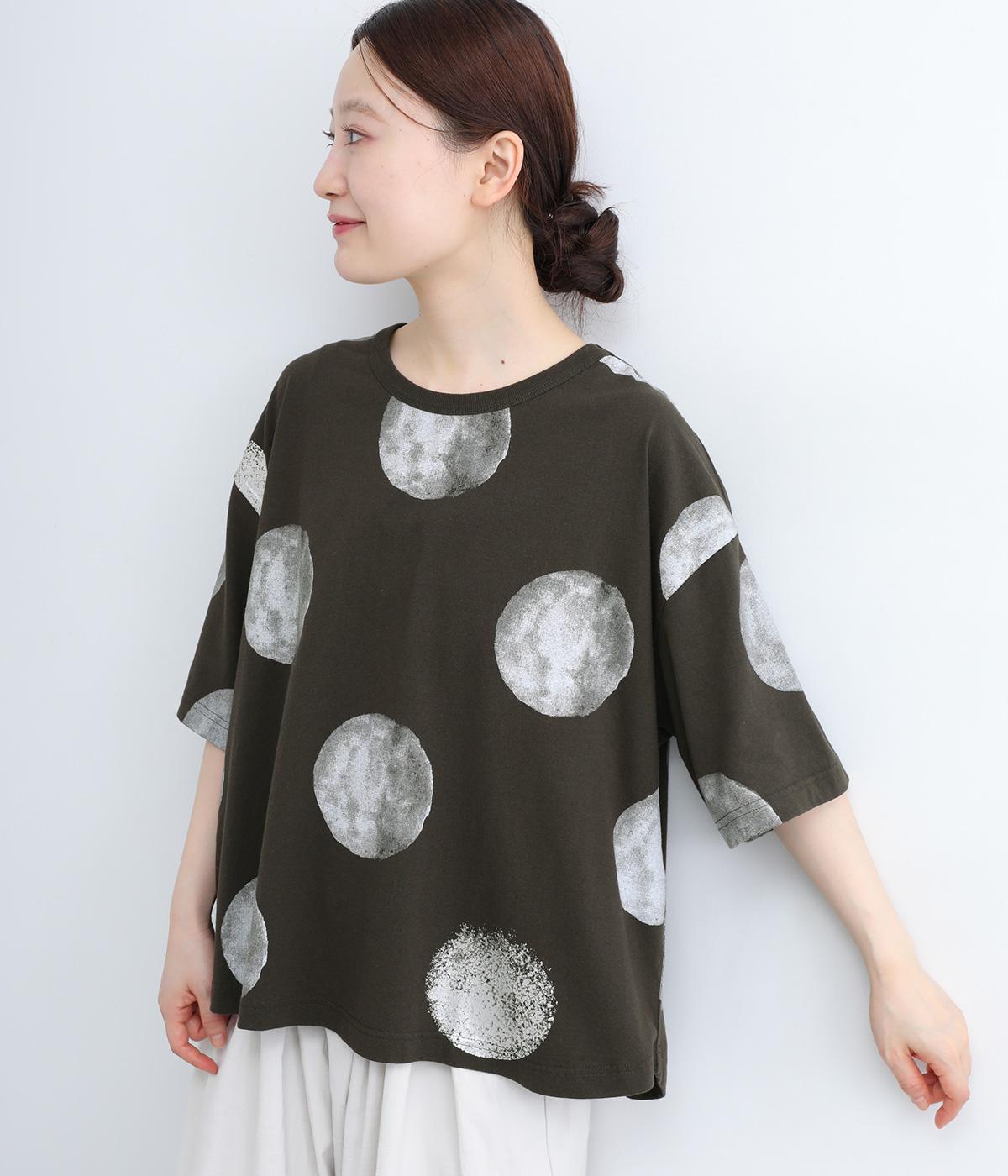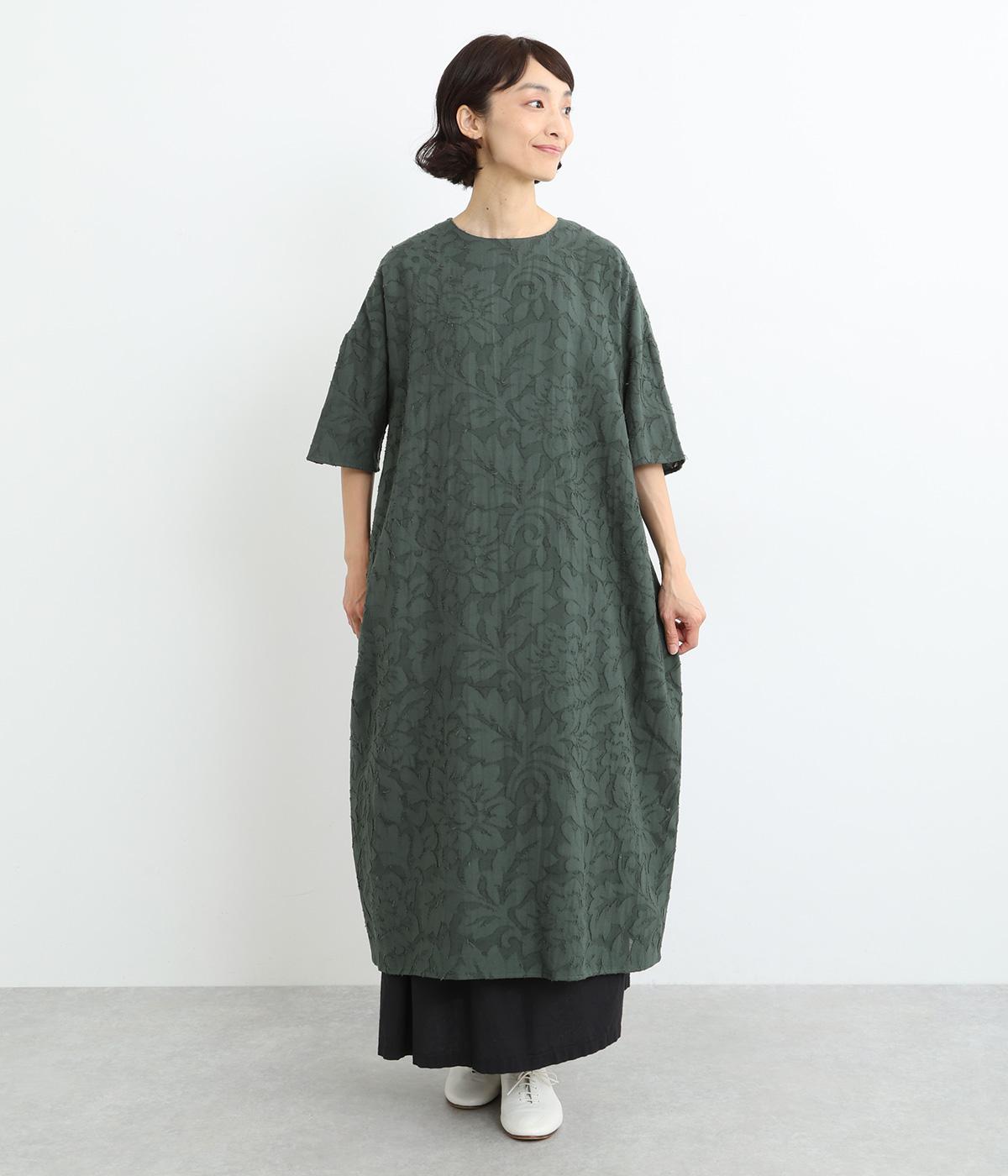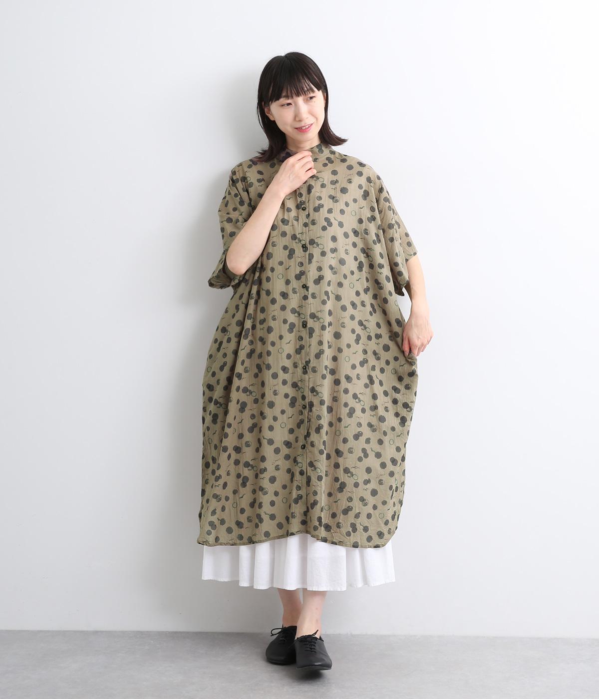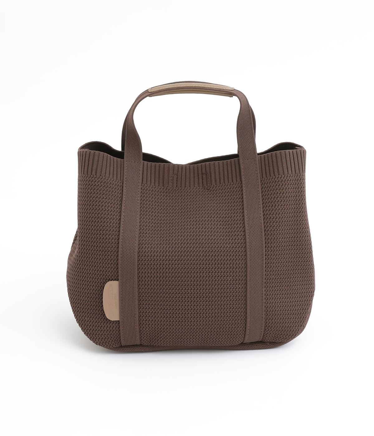 ウールコットンワッシャー袖リブニットチュニックワンピースモカ