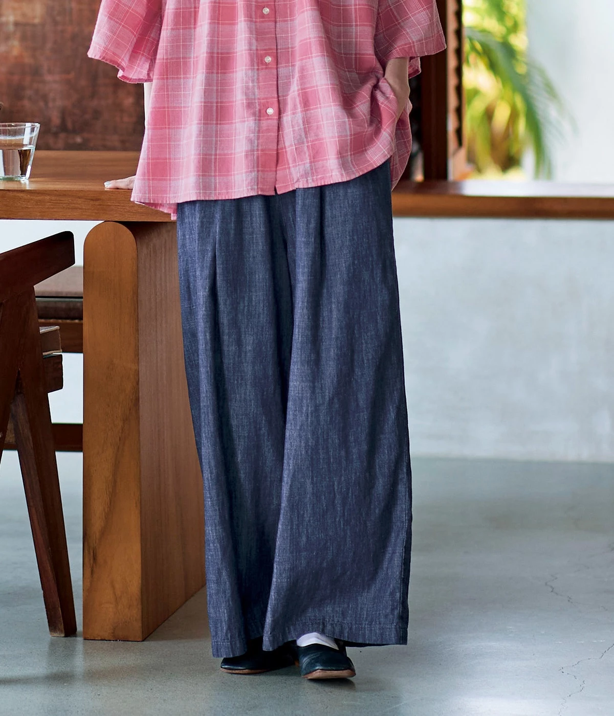 コットンリネンチェックイージーパンツチェック