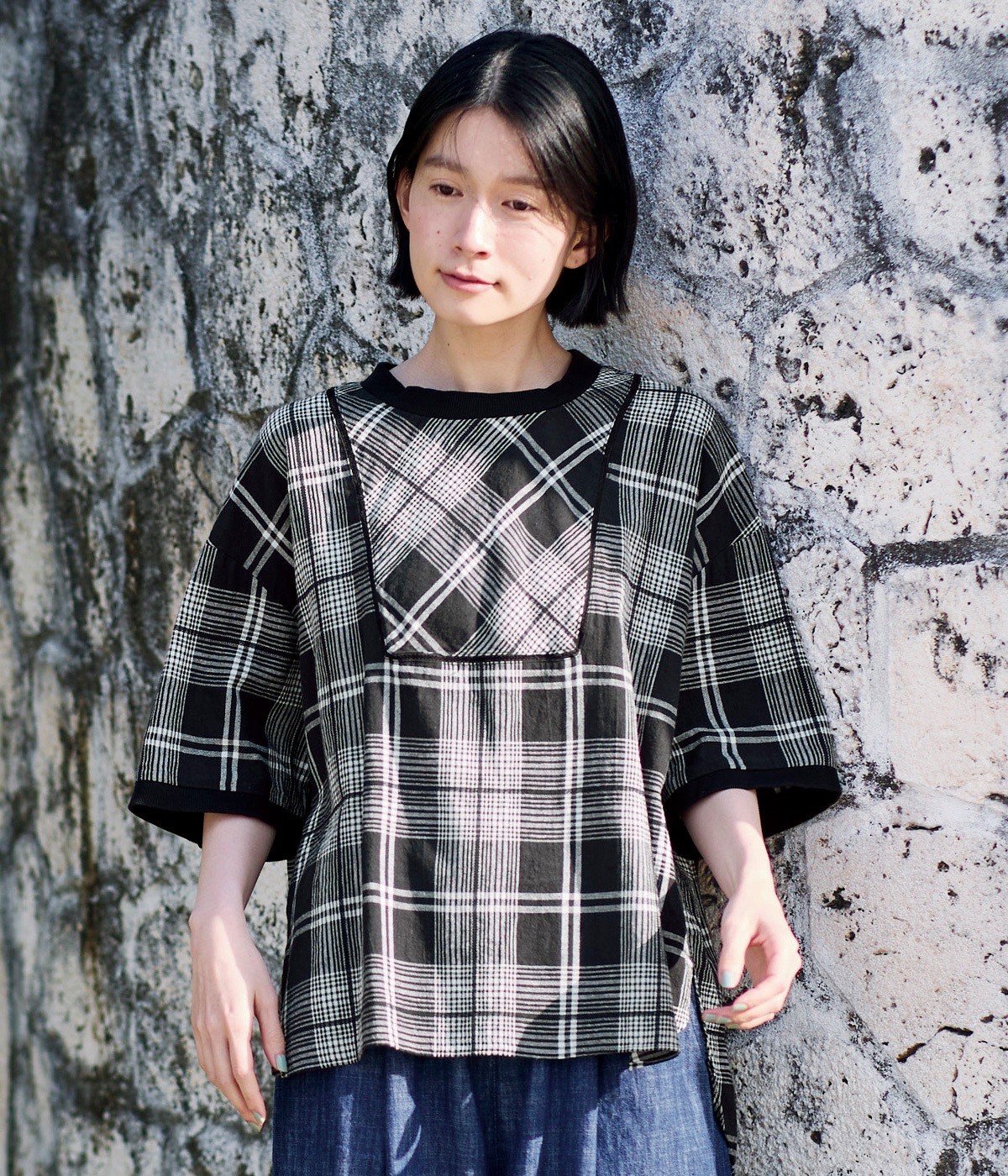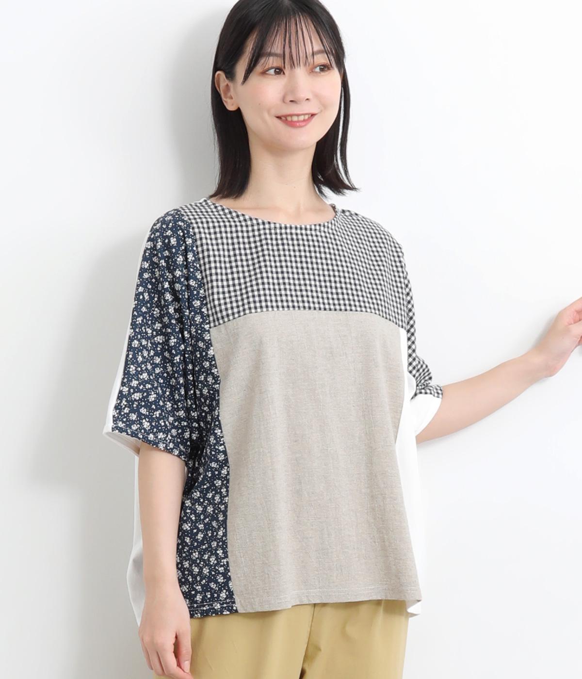 コットンリネンチェックAラインシャツブロックチェック