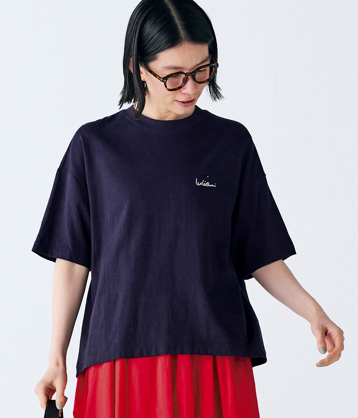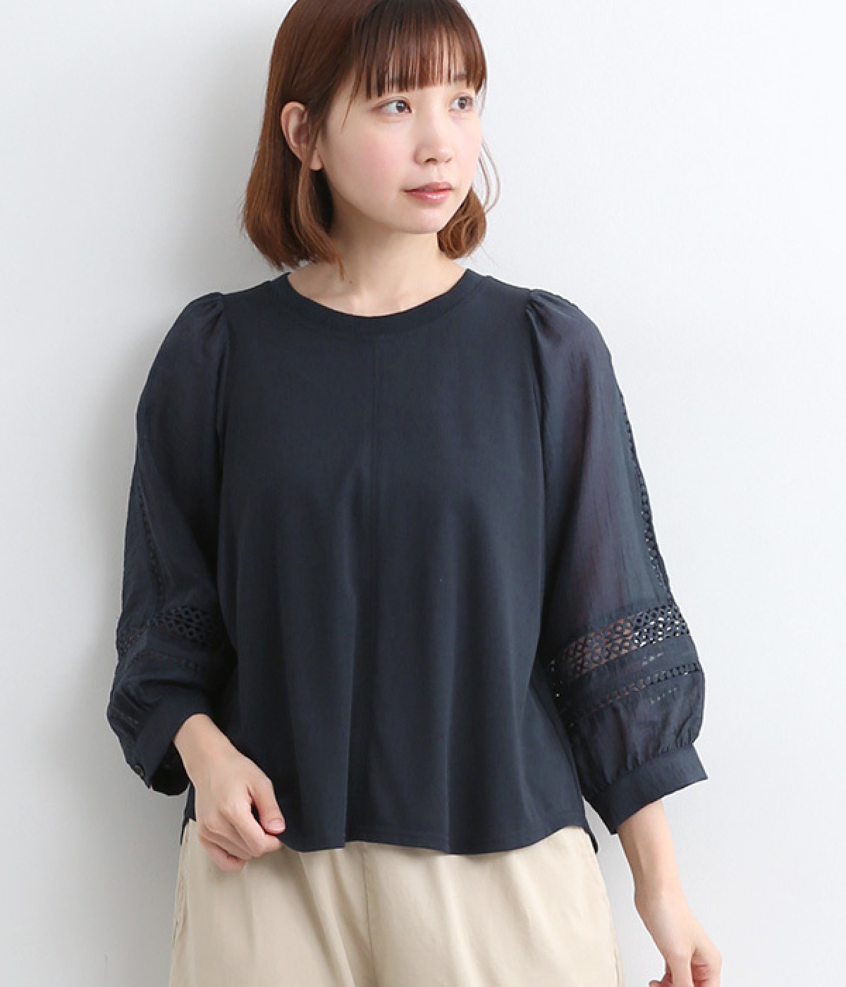 裾スリットTトレーナーネイビー