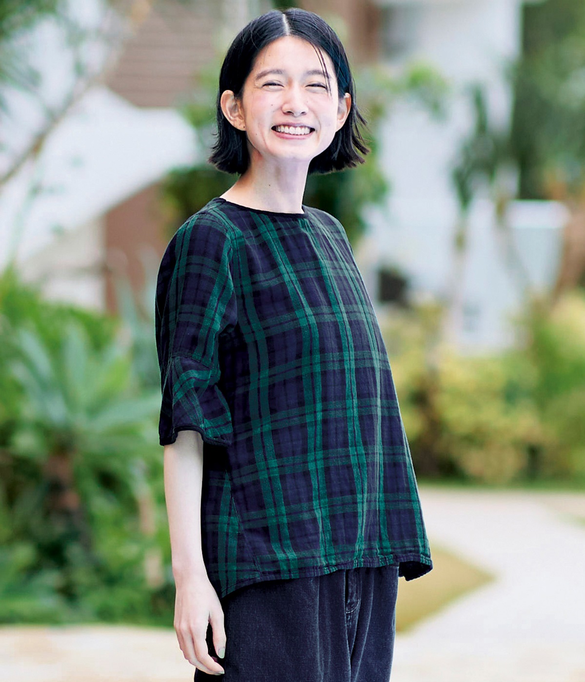 コットンリネンチェックイージーパンツブロックチェック