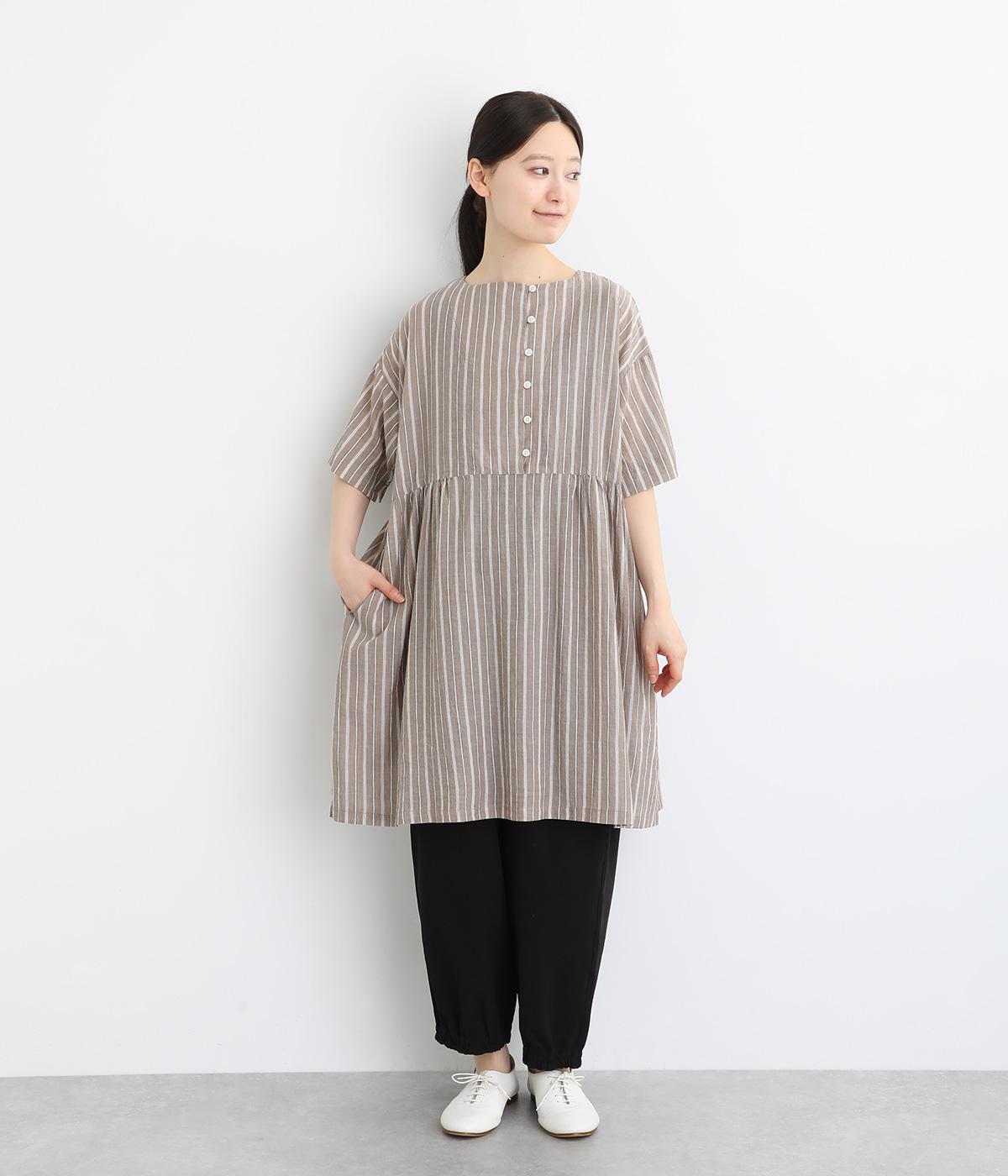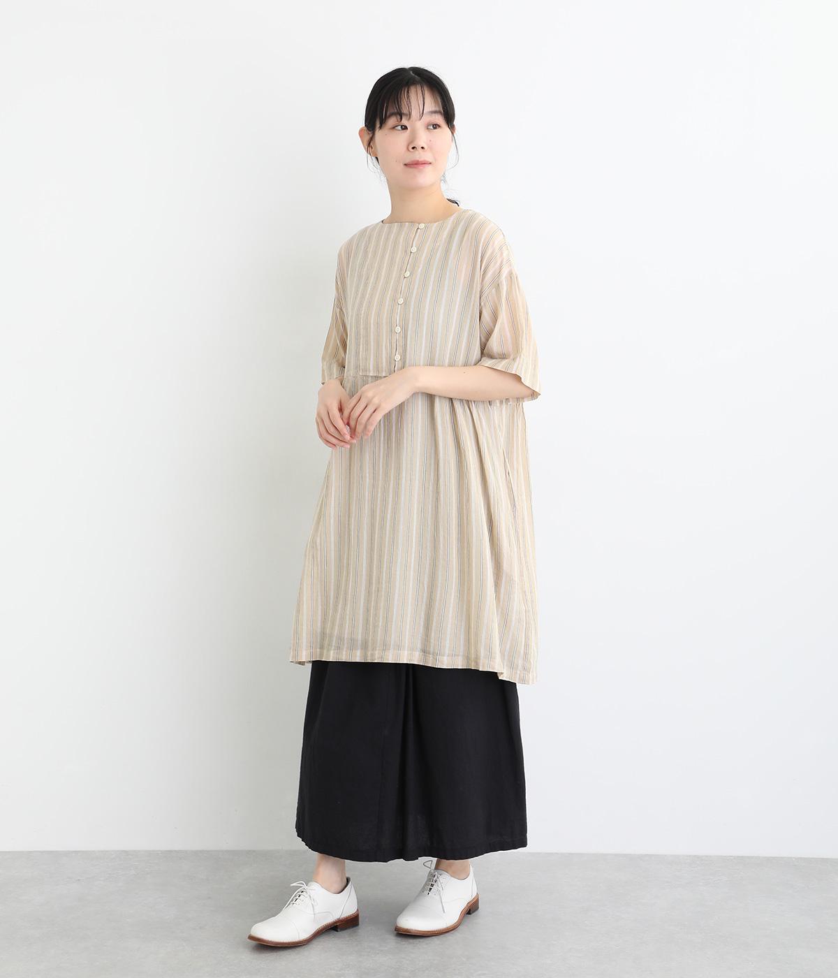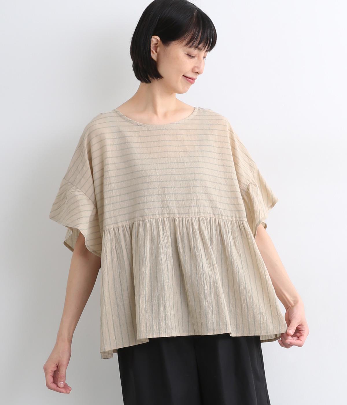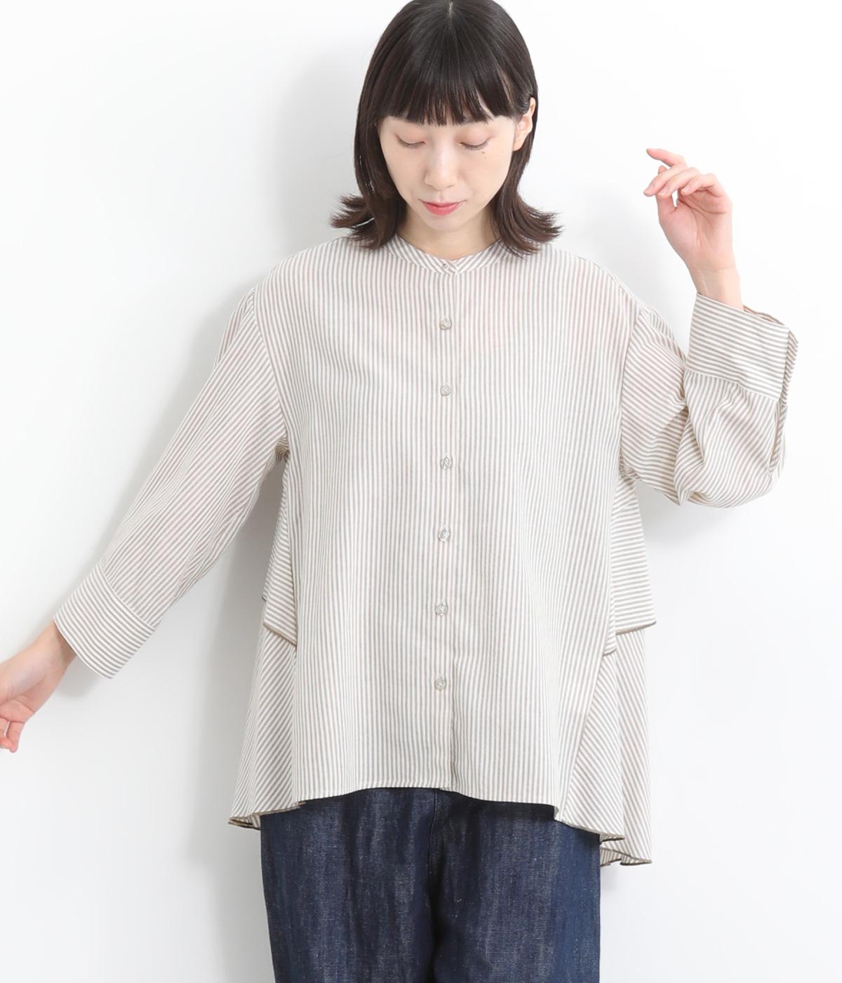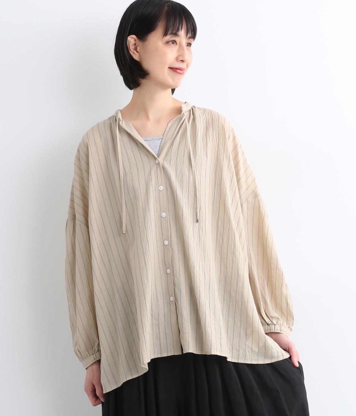 コットンワッシャーストライプクレリックブラウスベージュ